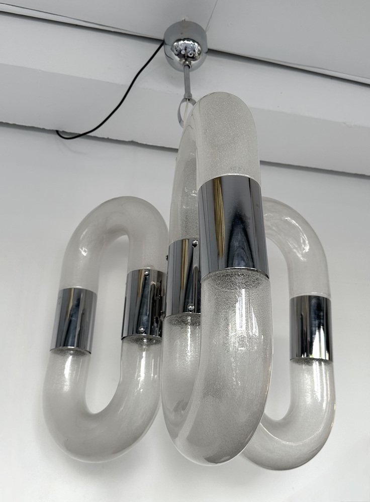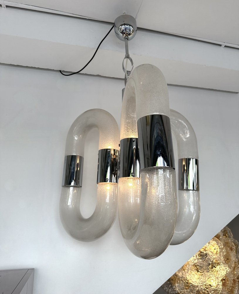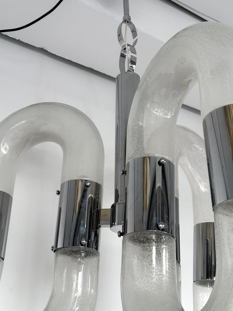 Lámpara de araña italiana de cristal de Murano atribuida a Aldo Nason para Mazzega, años 70