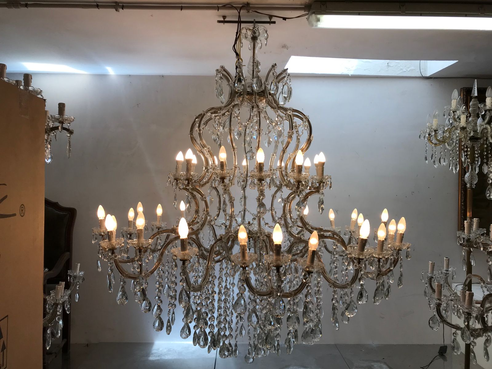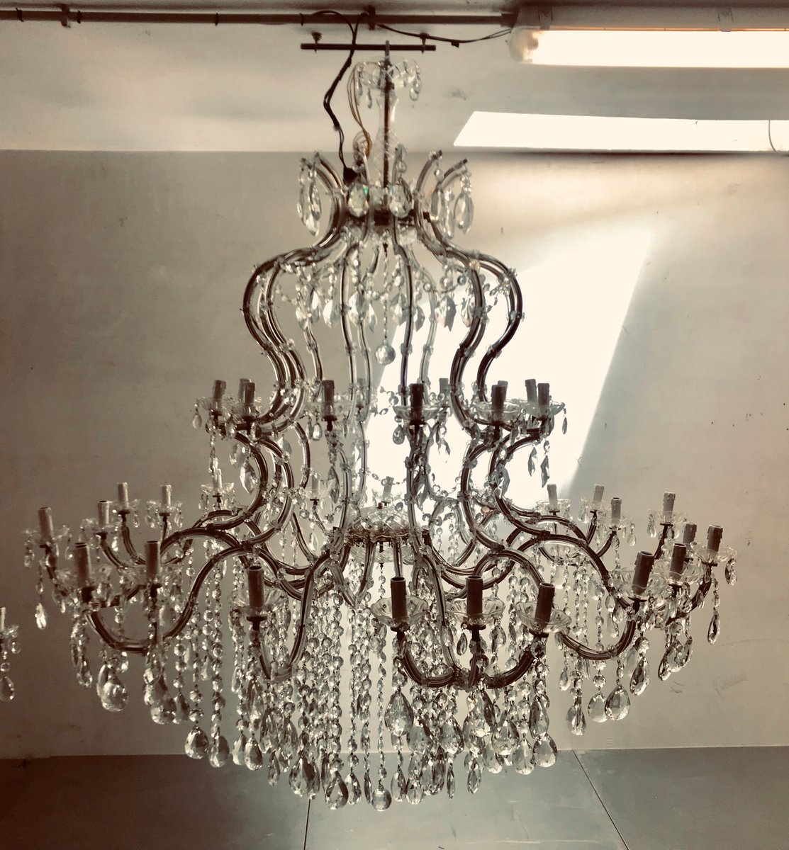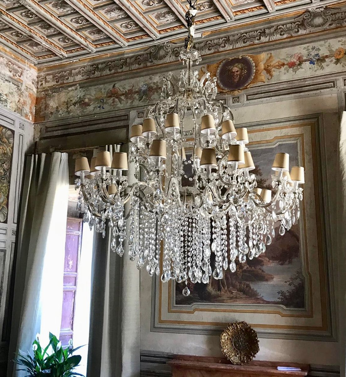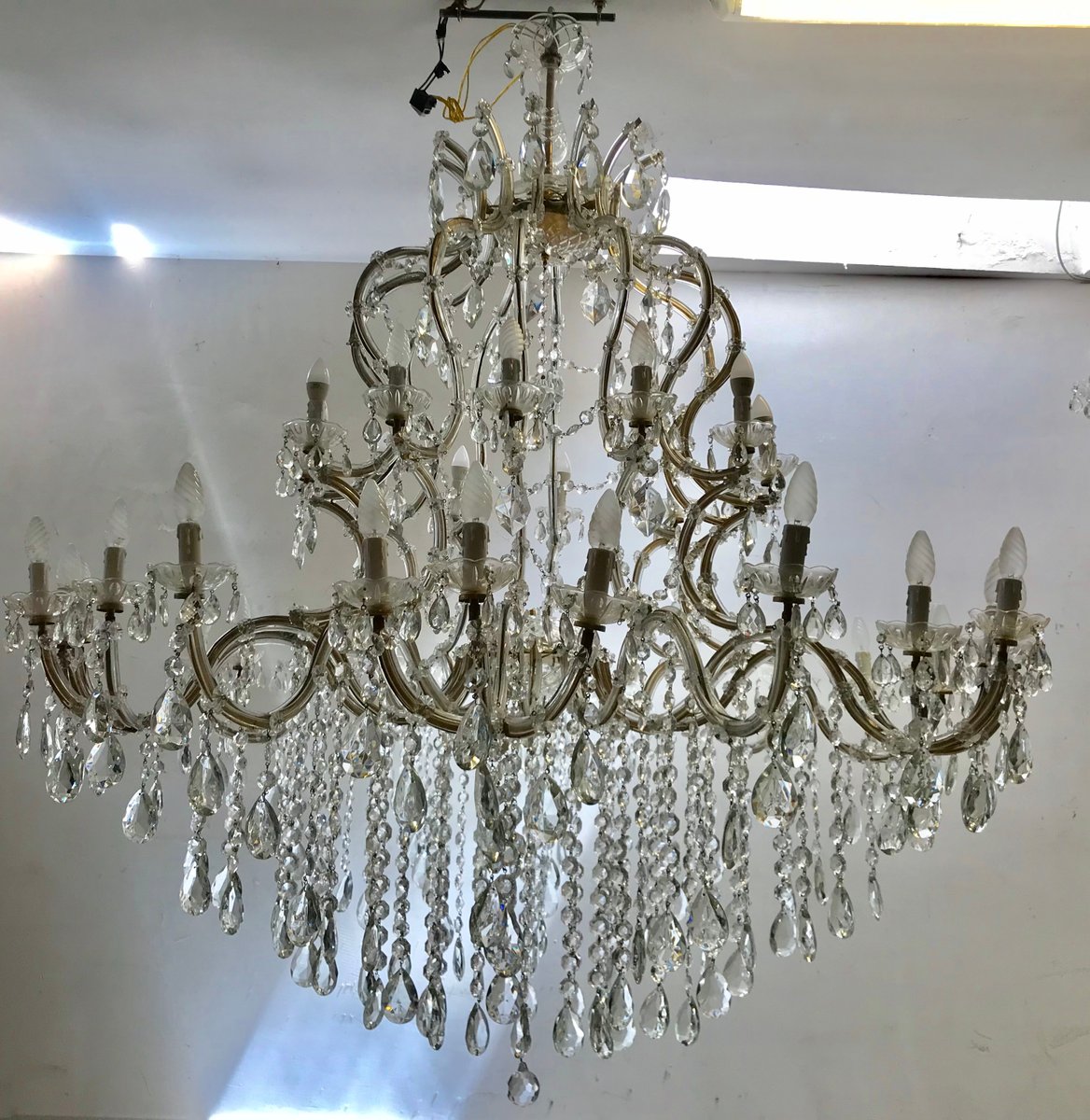 Lámpara de araña italiana Mid-Century de cristal plomado, años 50