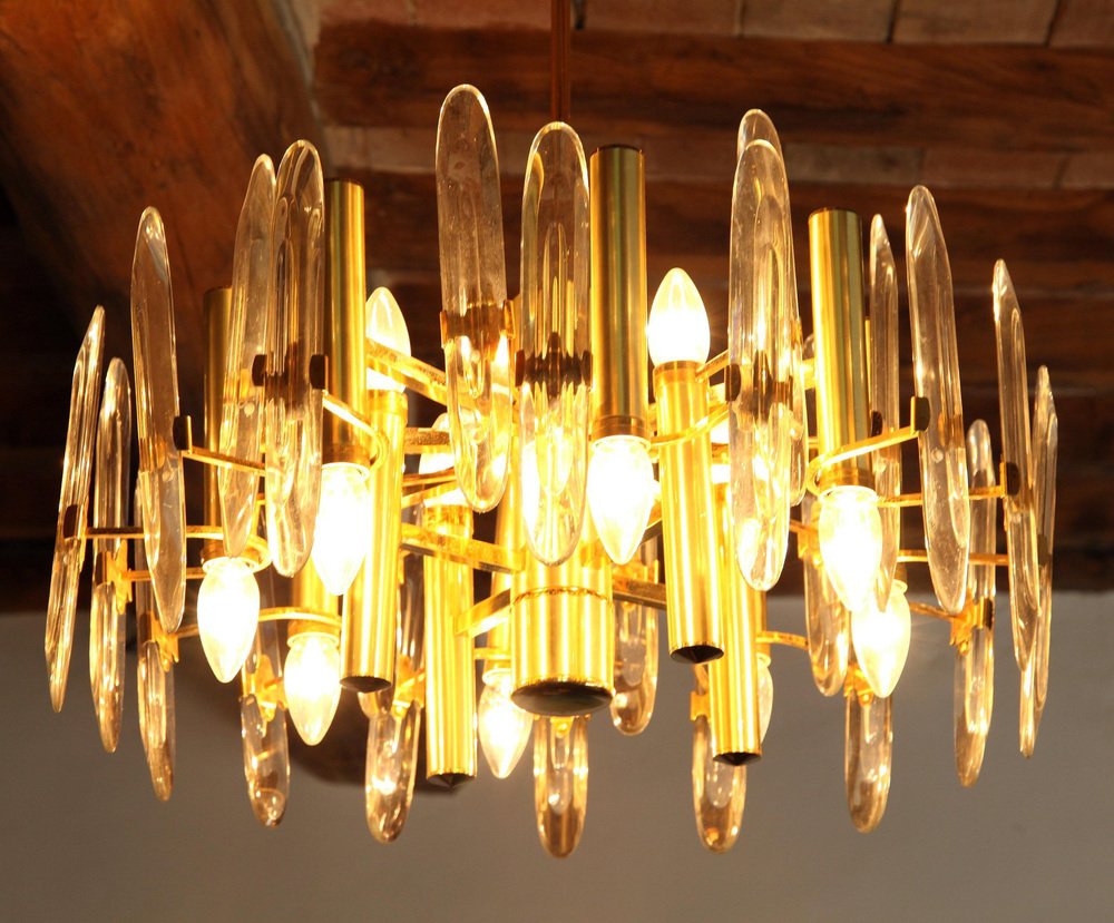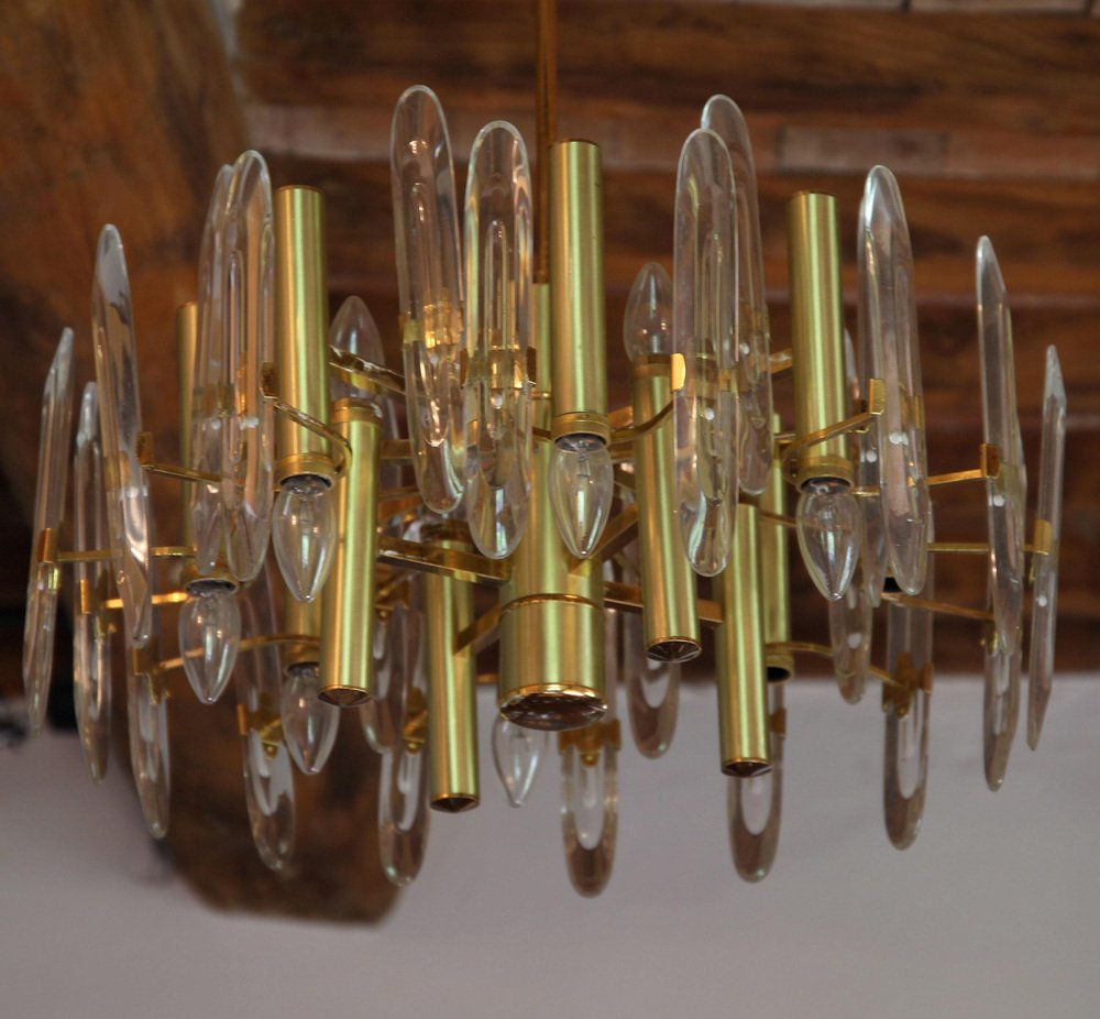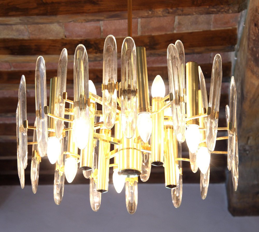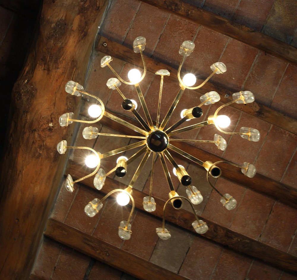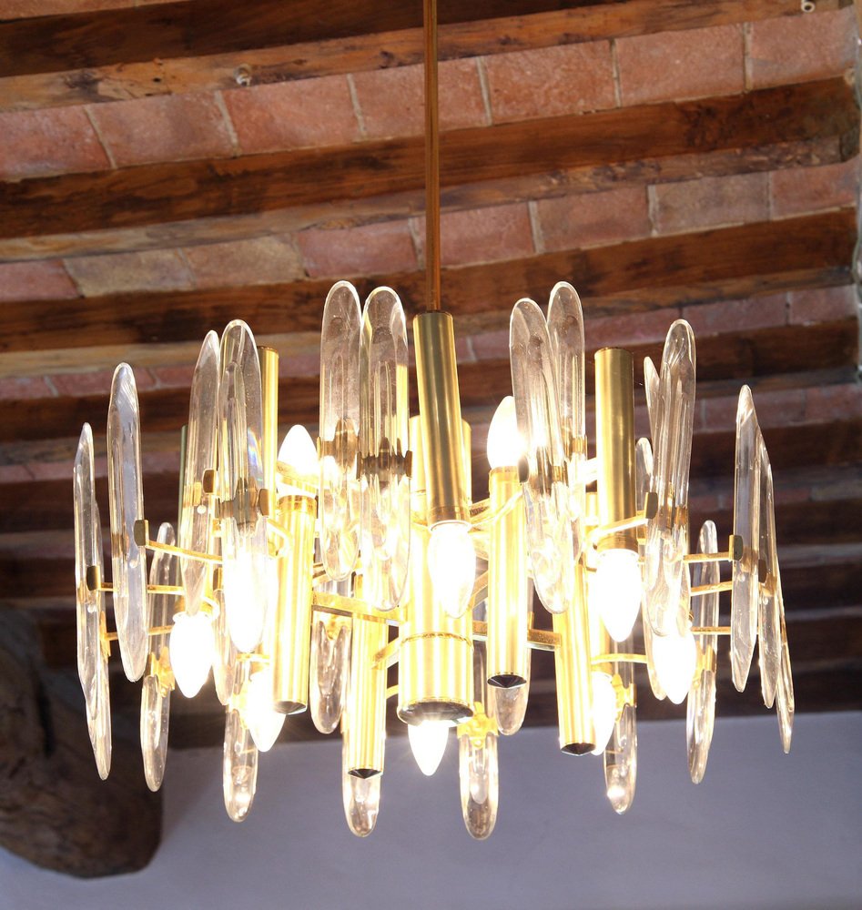Lámpara de araña grande de vidrio, años 60