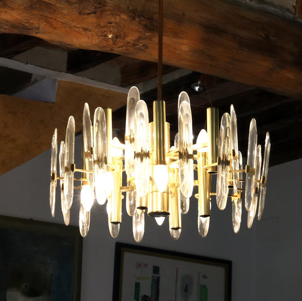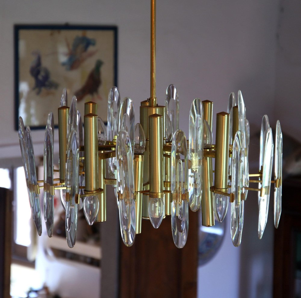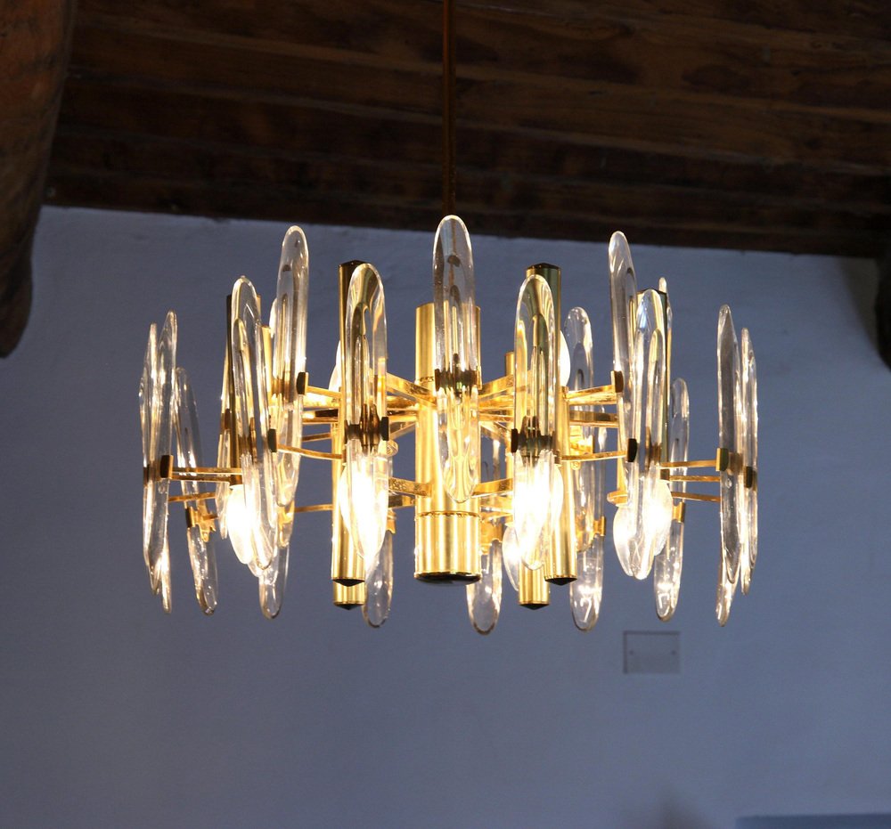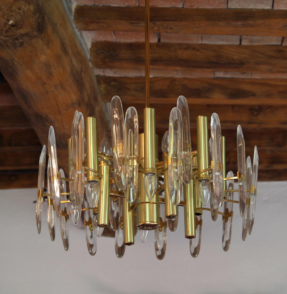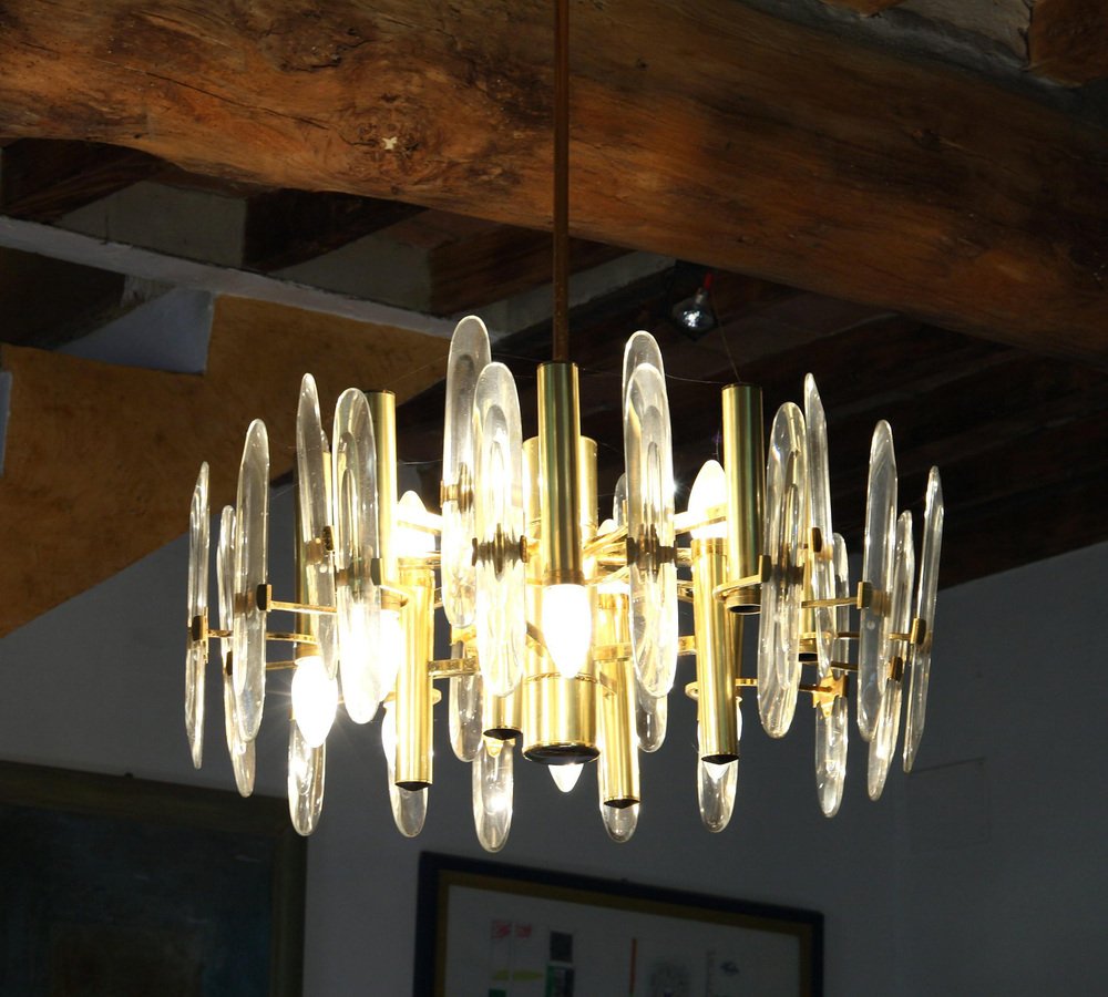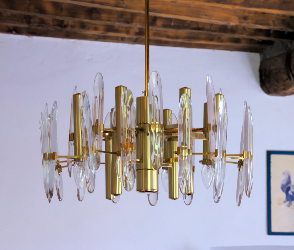 Lámpara de araña grande de vidrio, años 60