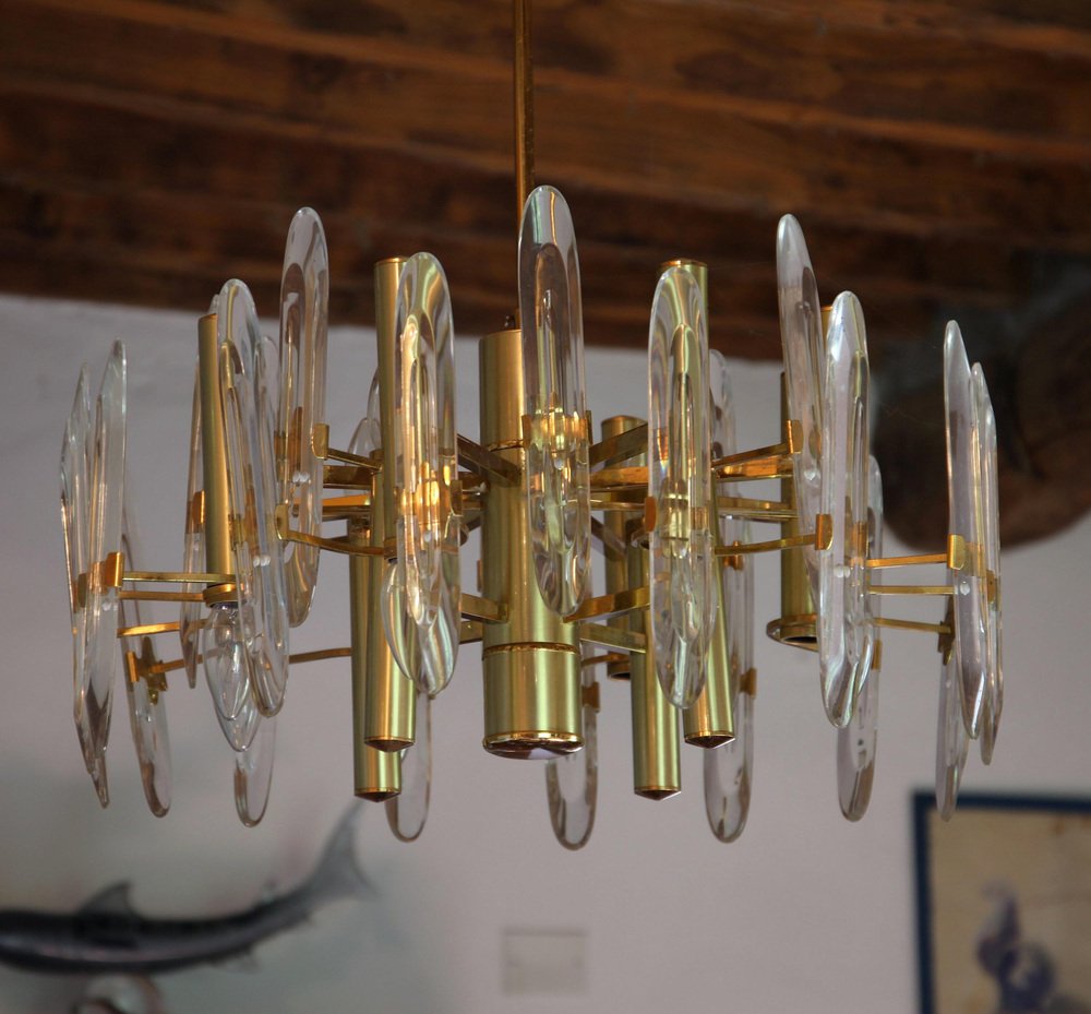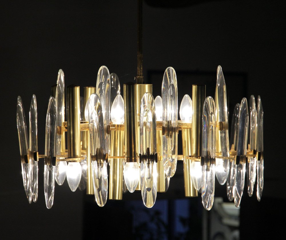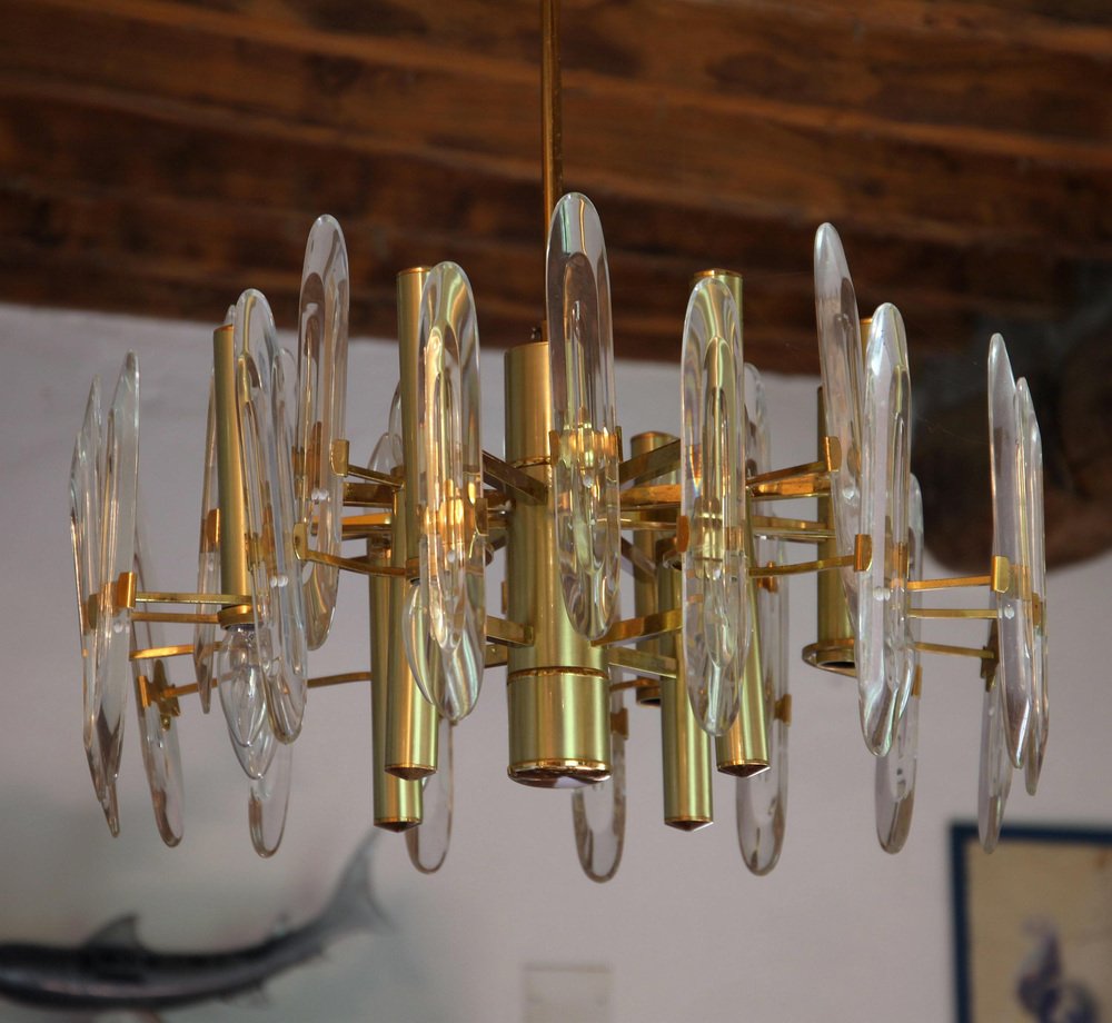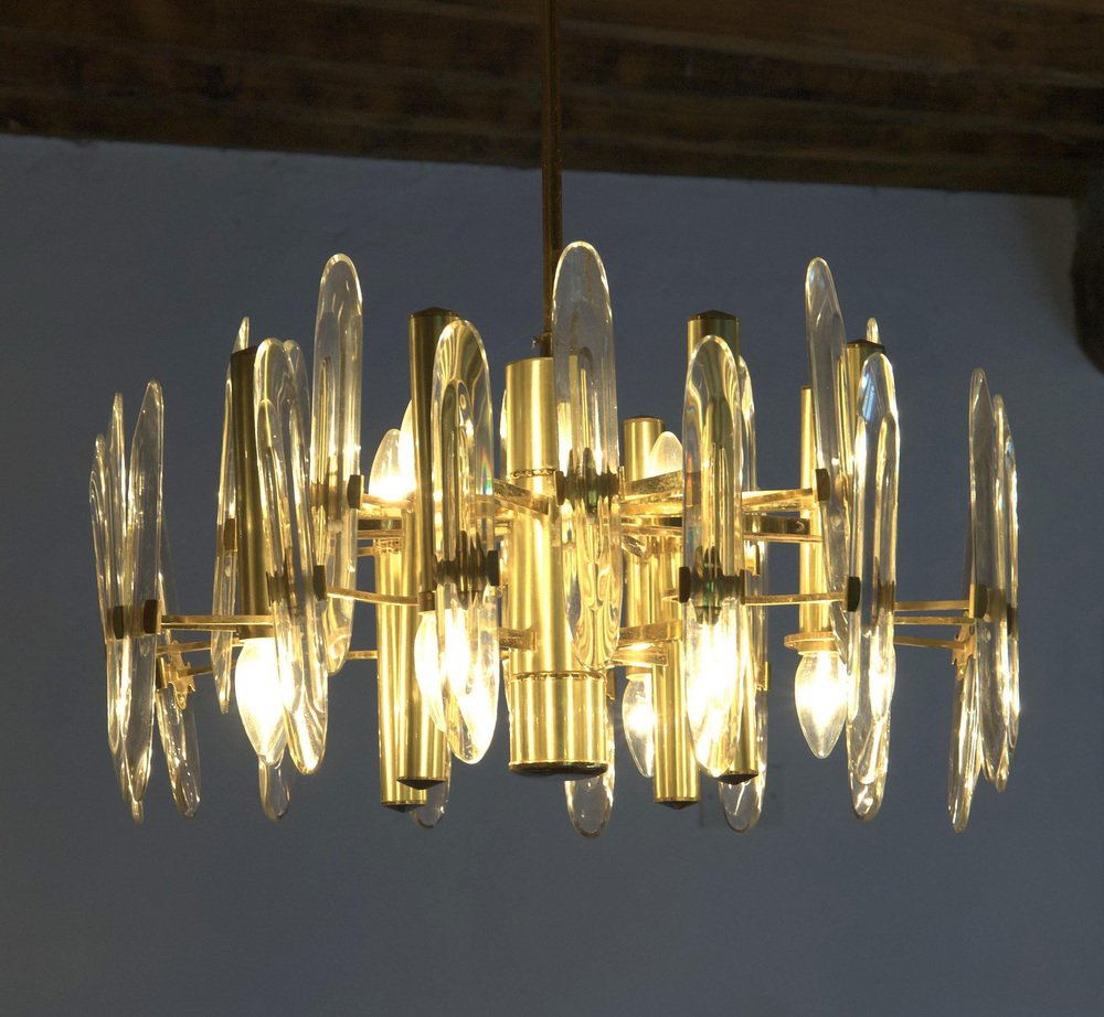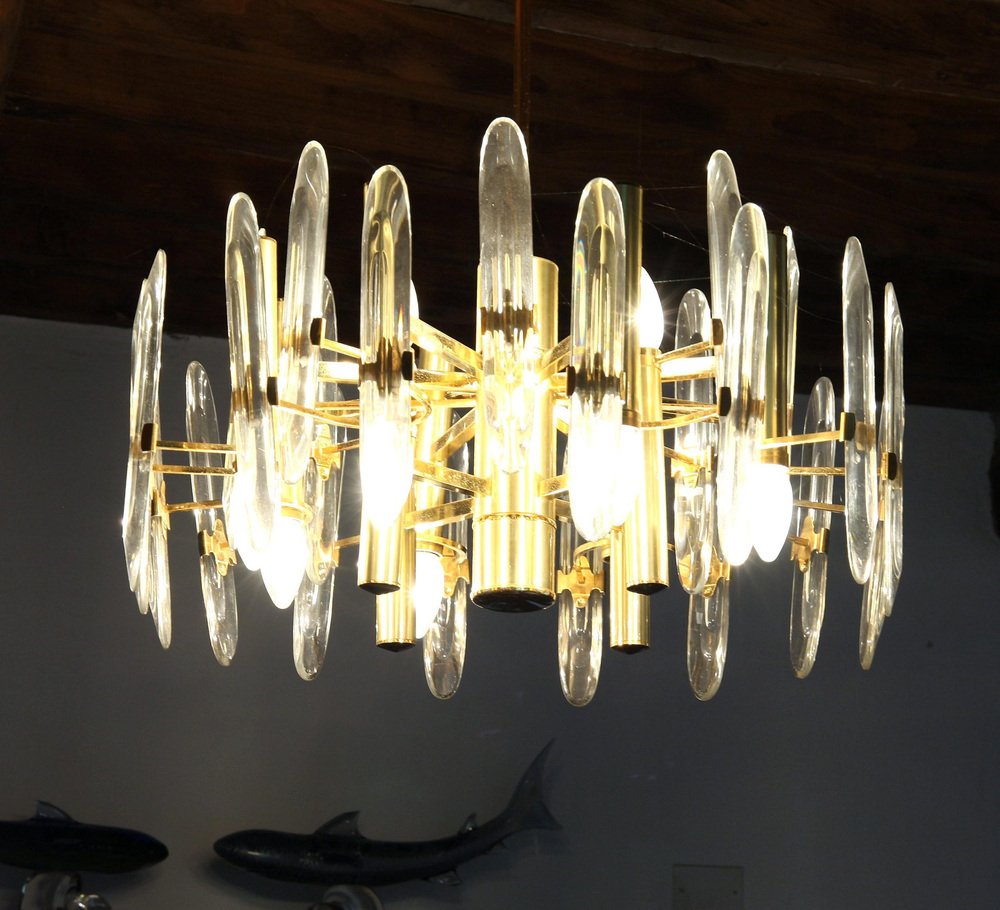 Lámpara de araña grande de vidrio, años 60