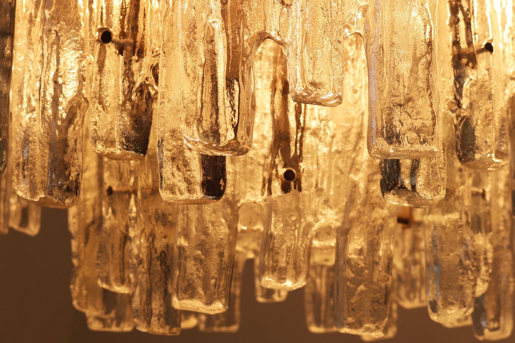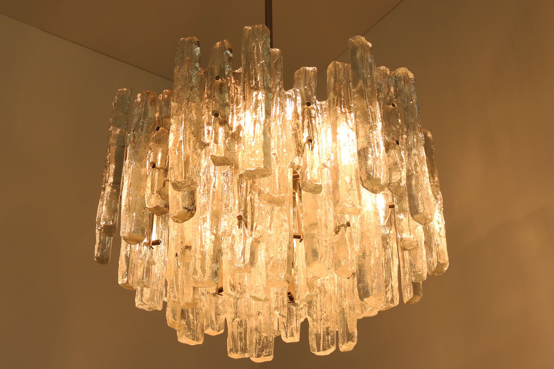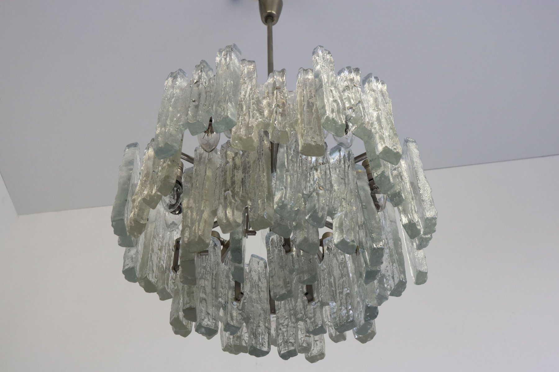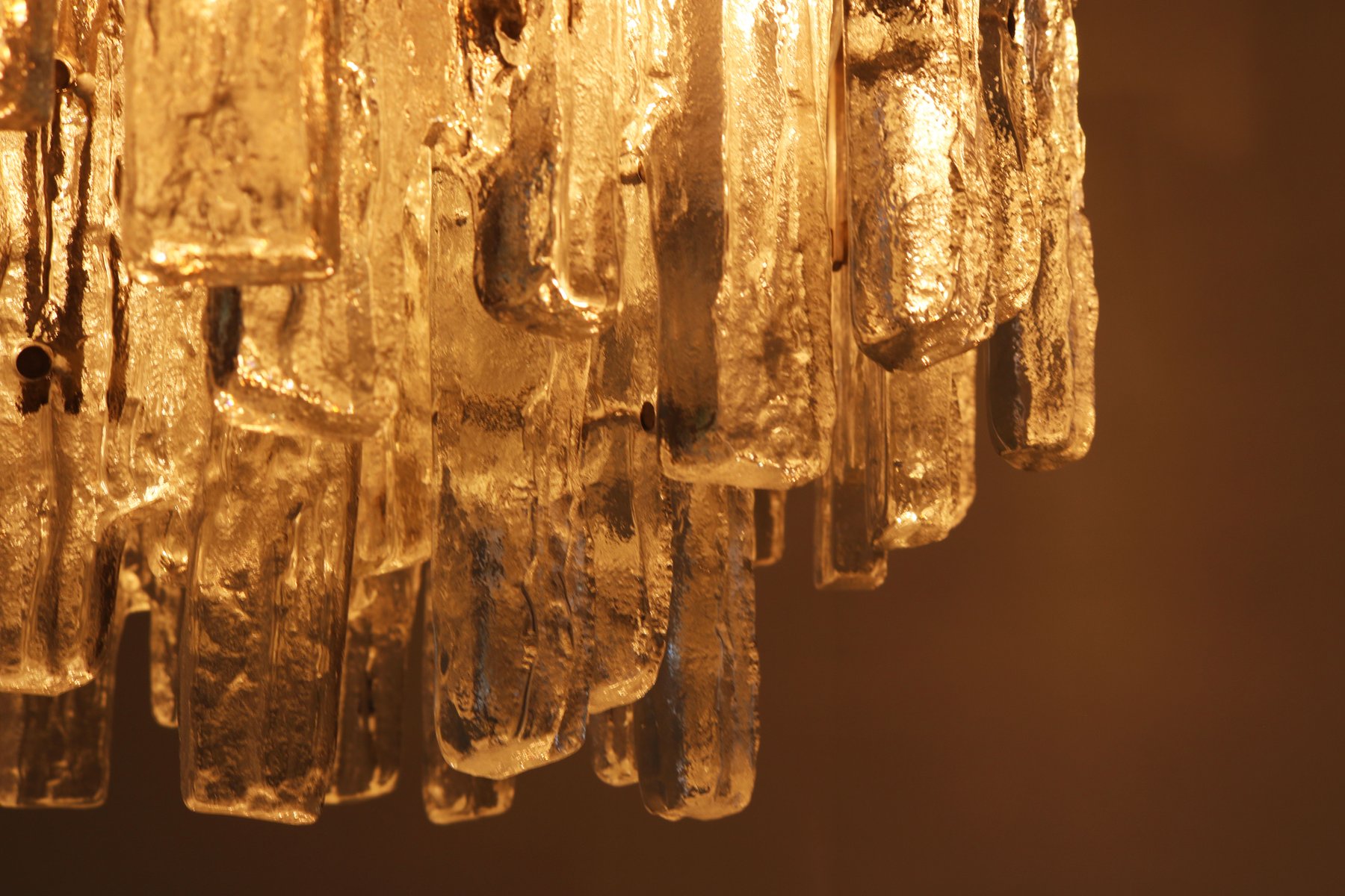 Lámpara de araña italiana en cascada de cristal de Murano, años 70