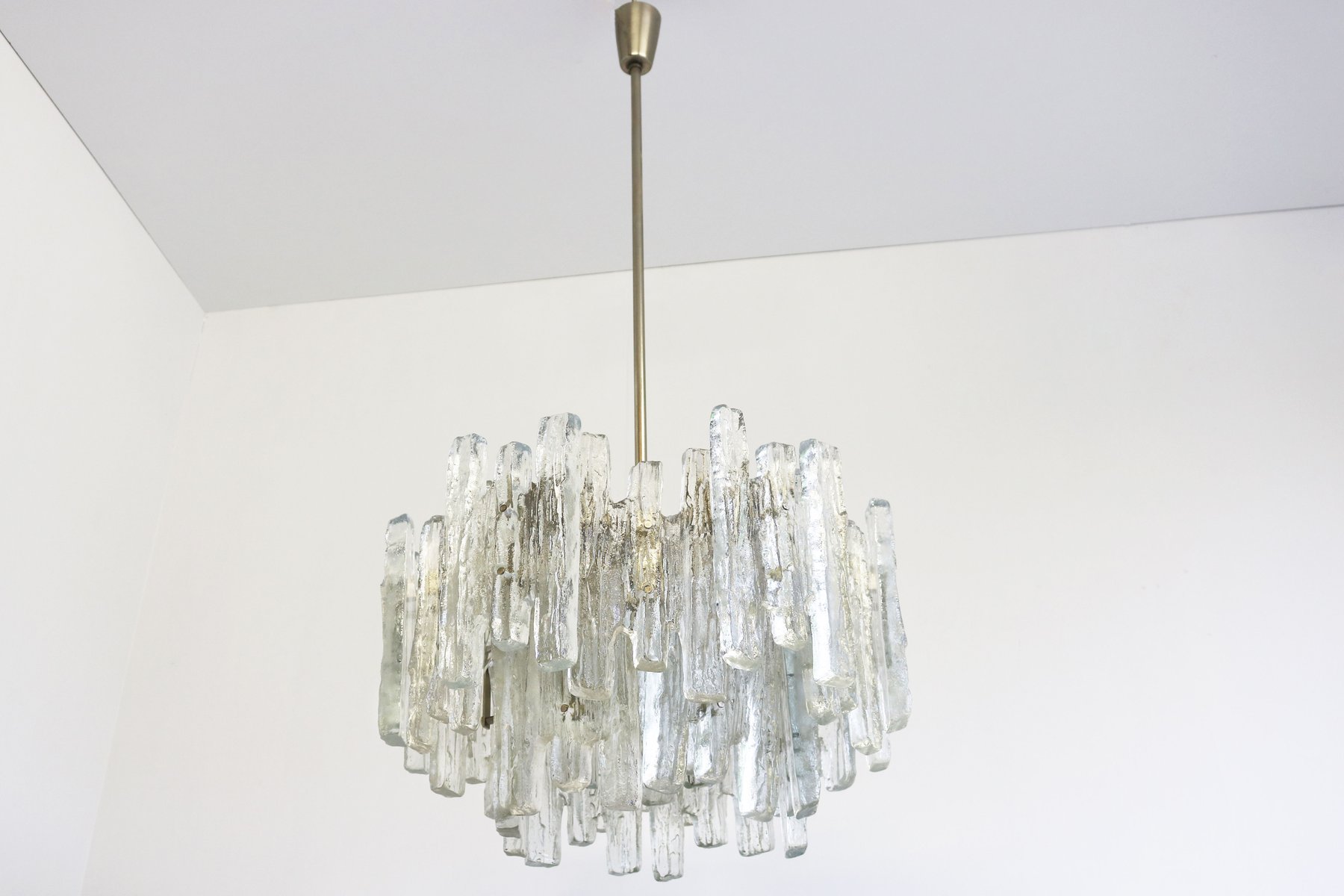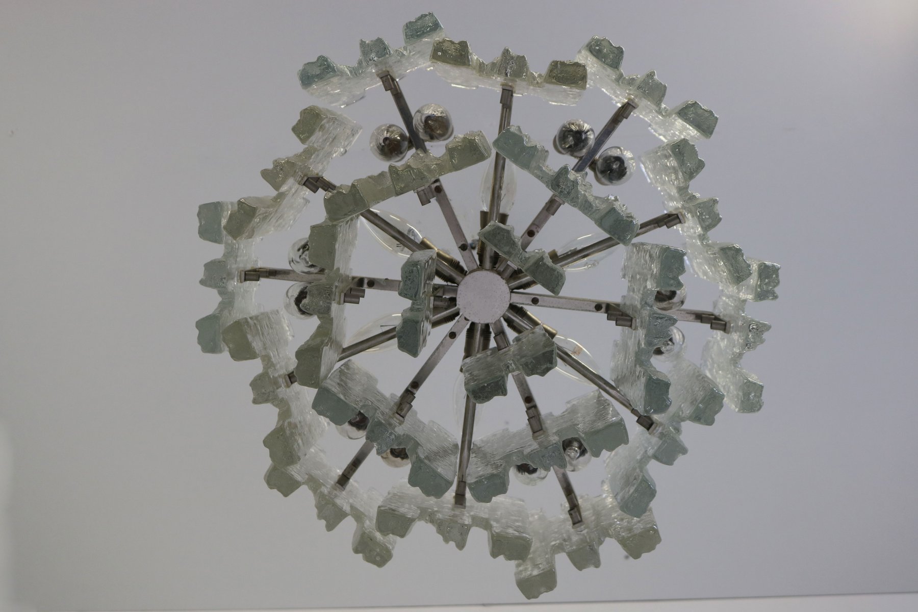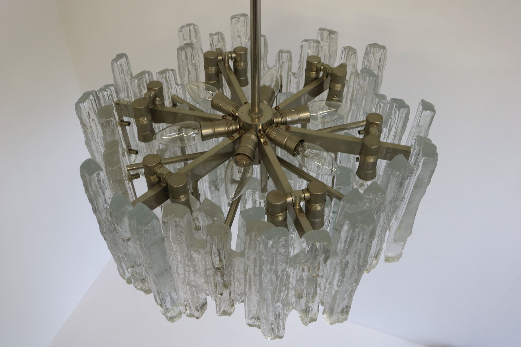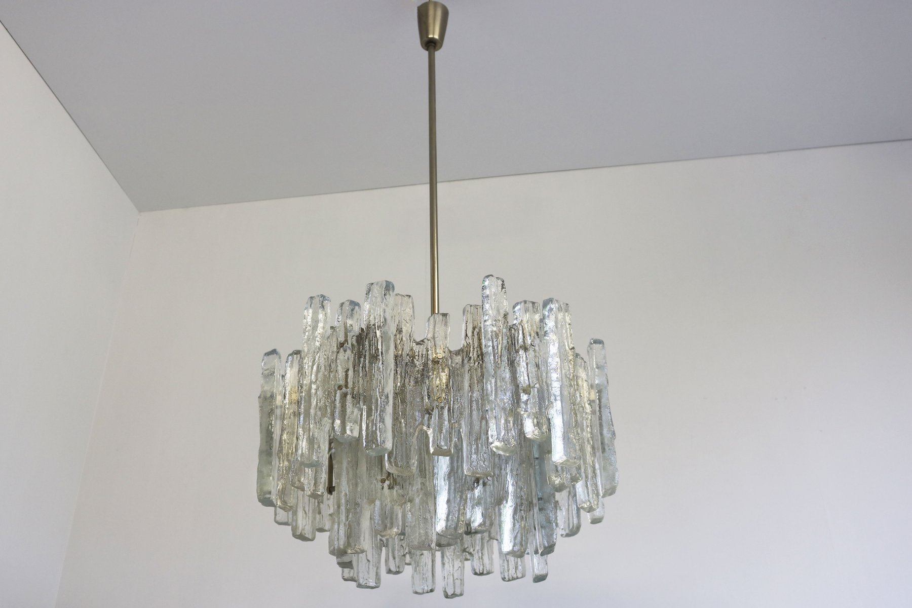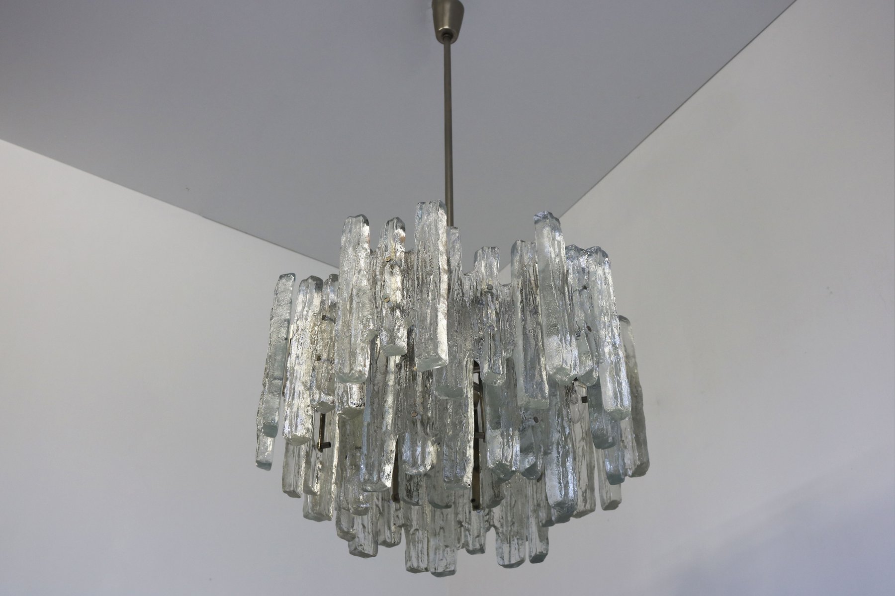 Lámpara de araña italiana en cascada de cristal de Murano, años 70