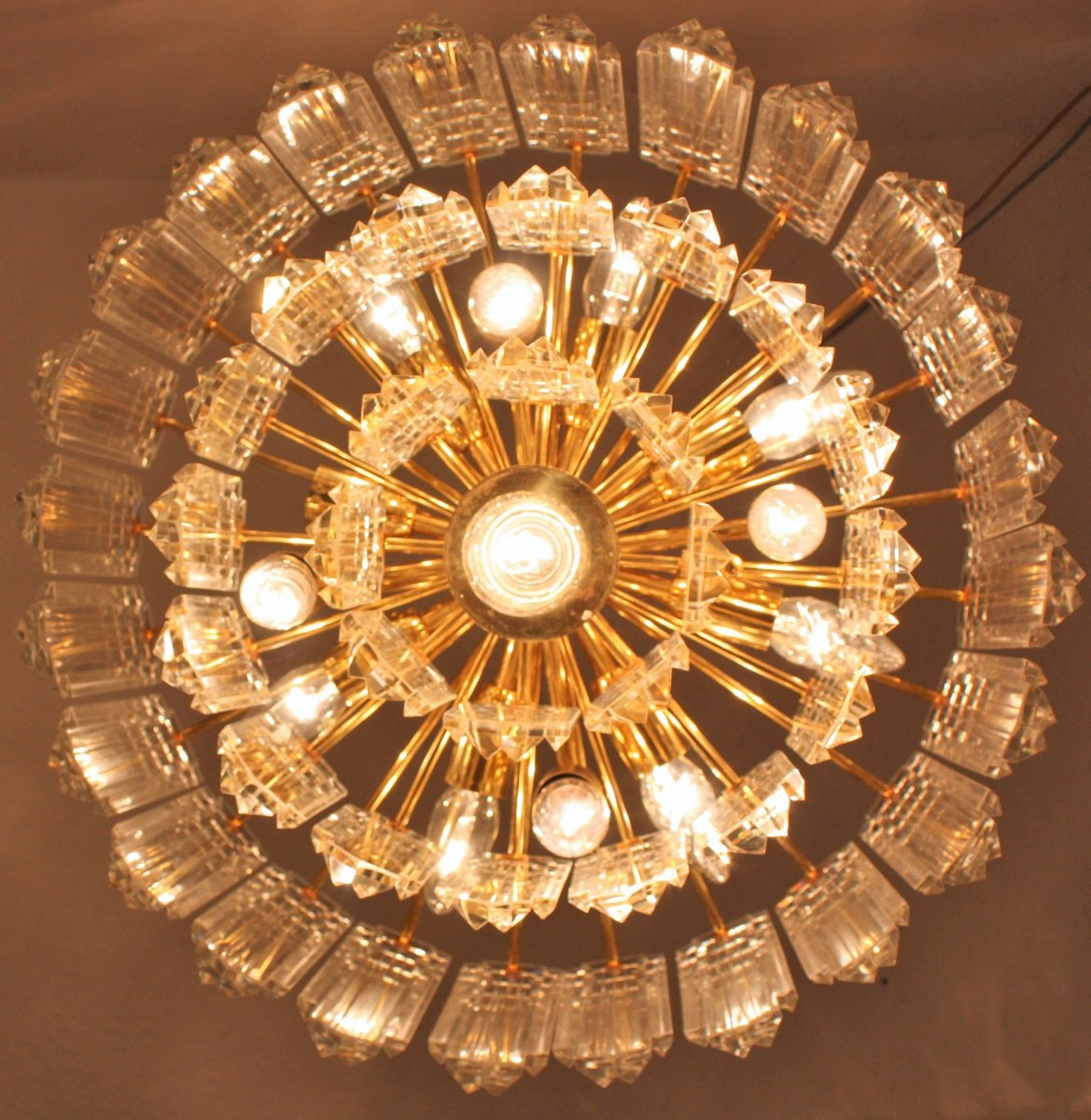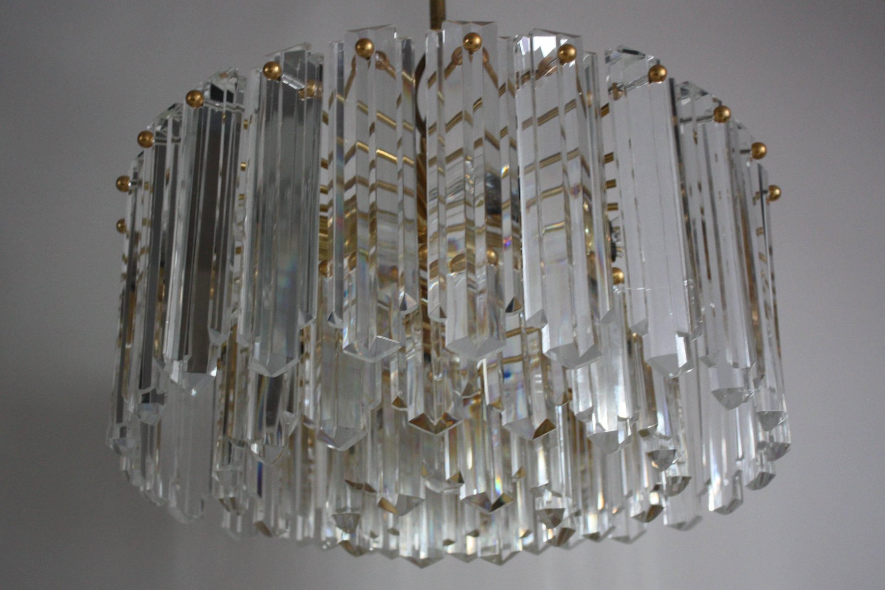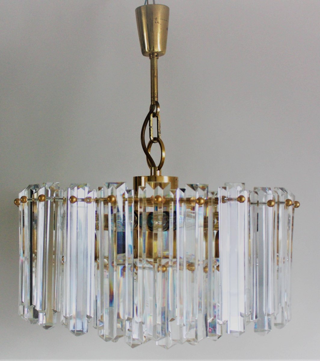 Lámpara de araña de latón dorado y cristal al estilo de Palwa o Lobmeyr, años 60