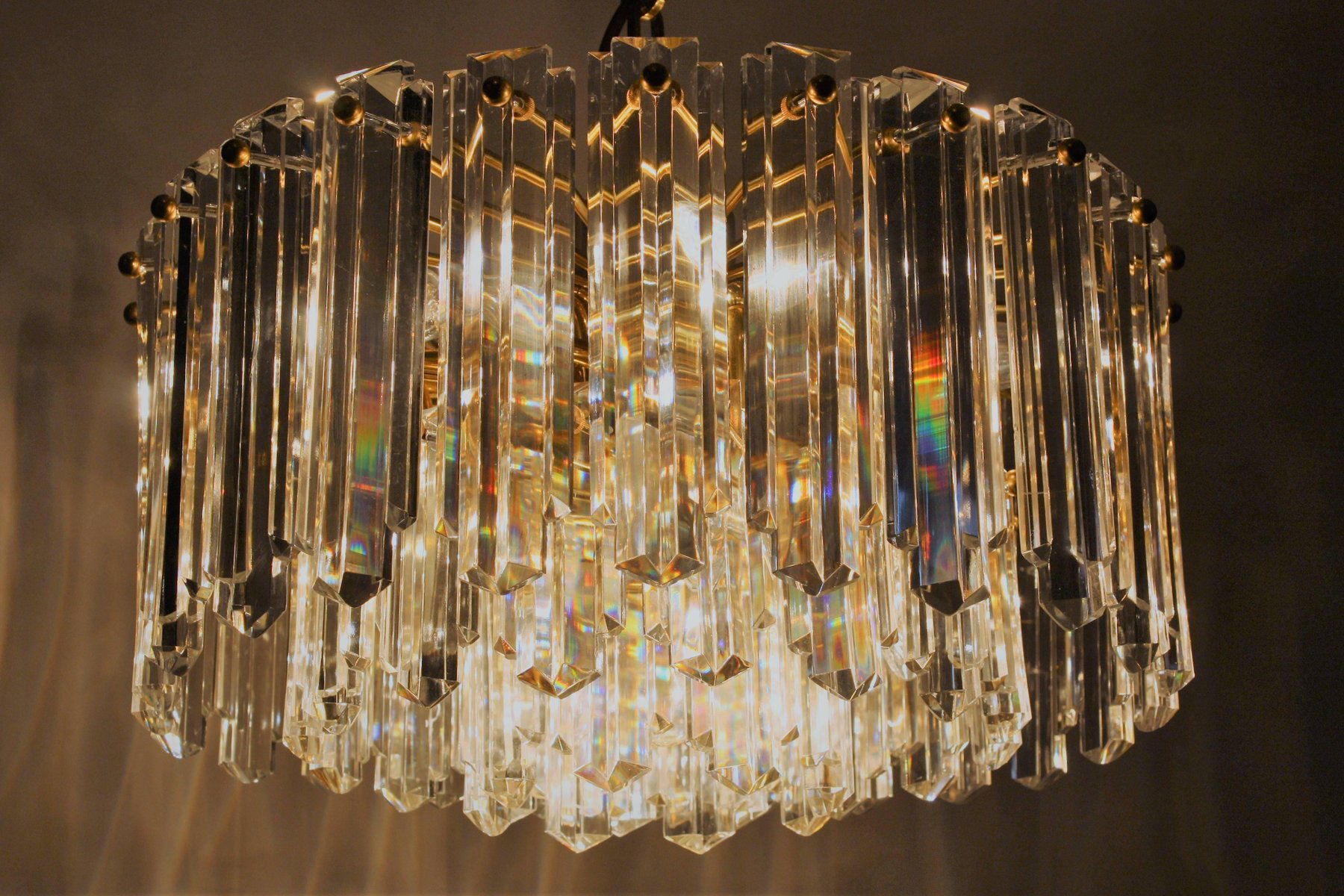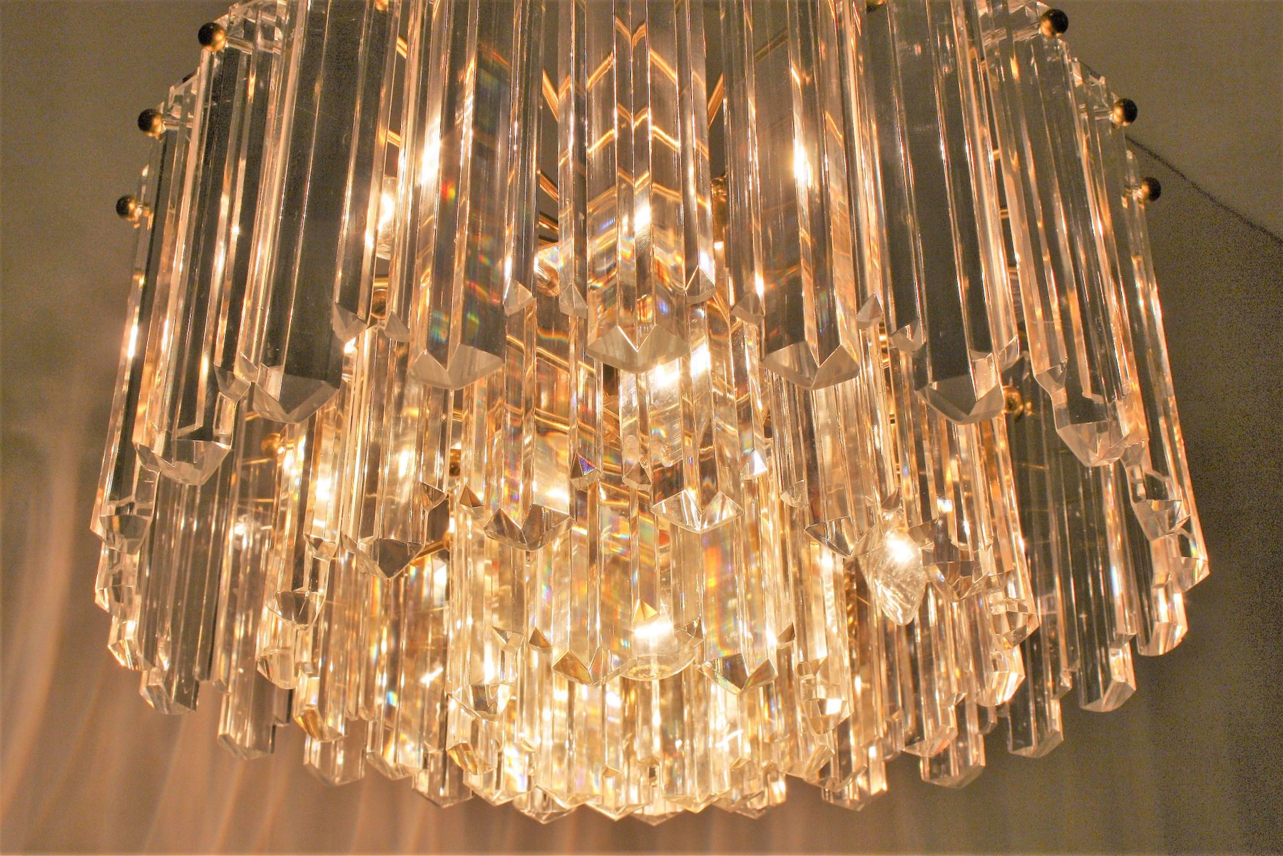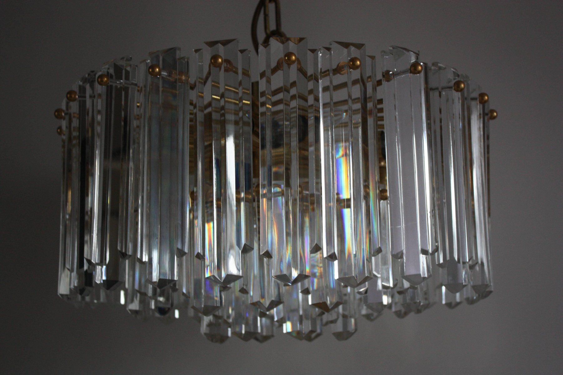 Lámpara de araña de latón dorado y cristal al estilo de Palwa o Lobmeyr, años 60