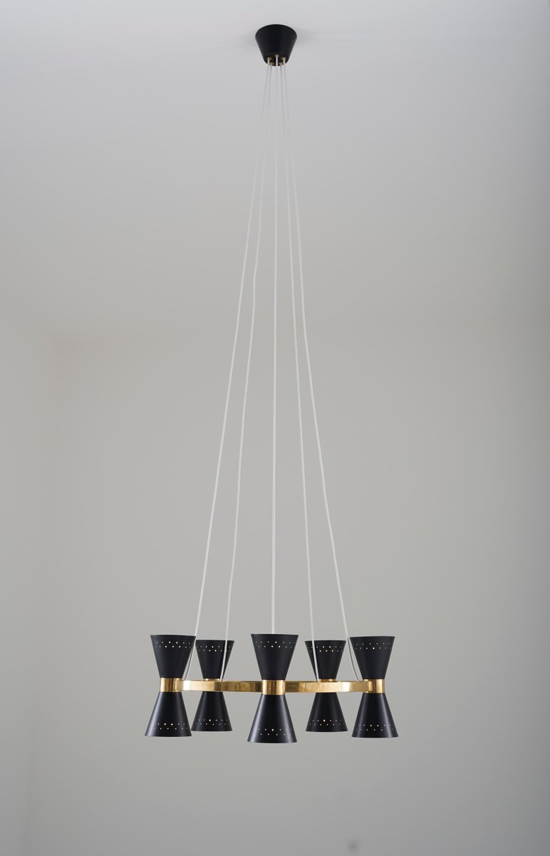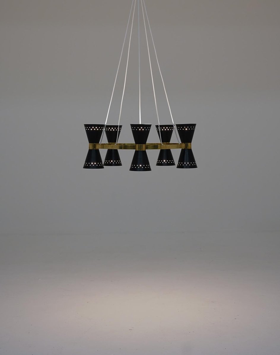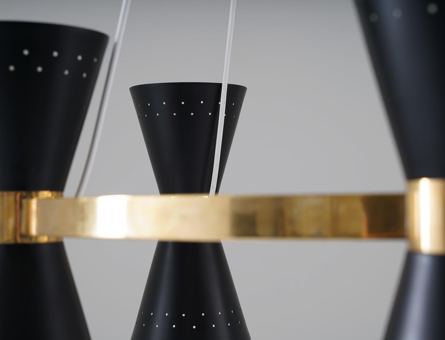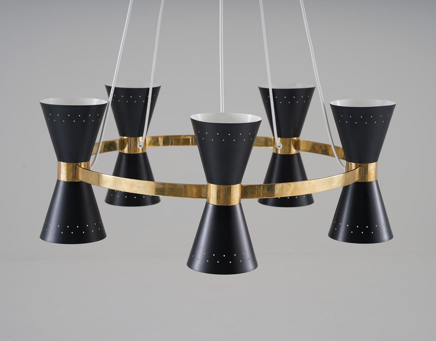 Lámpara de araña sueca Mid-Century de latón y metal de Alf Svensson para Bergboms