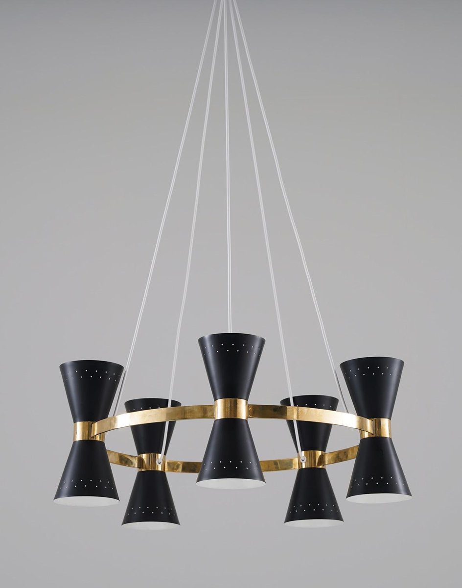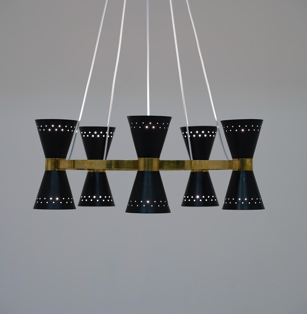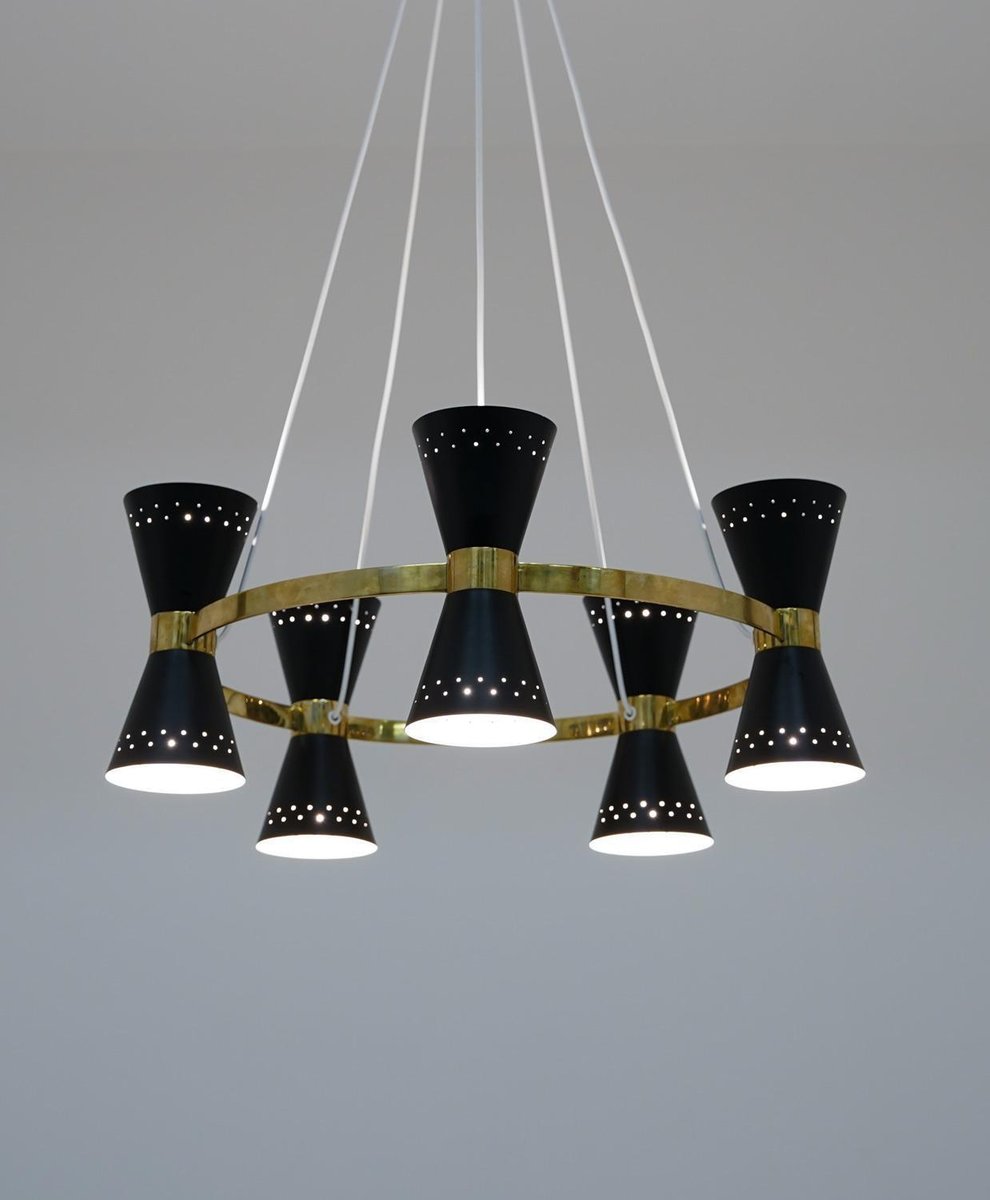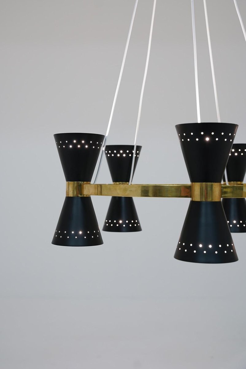 Lámpara de araña sueca Mid-Century de latón y metal de Alf Svensson para Bergboms