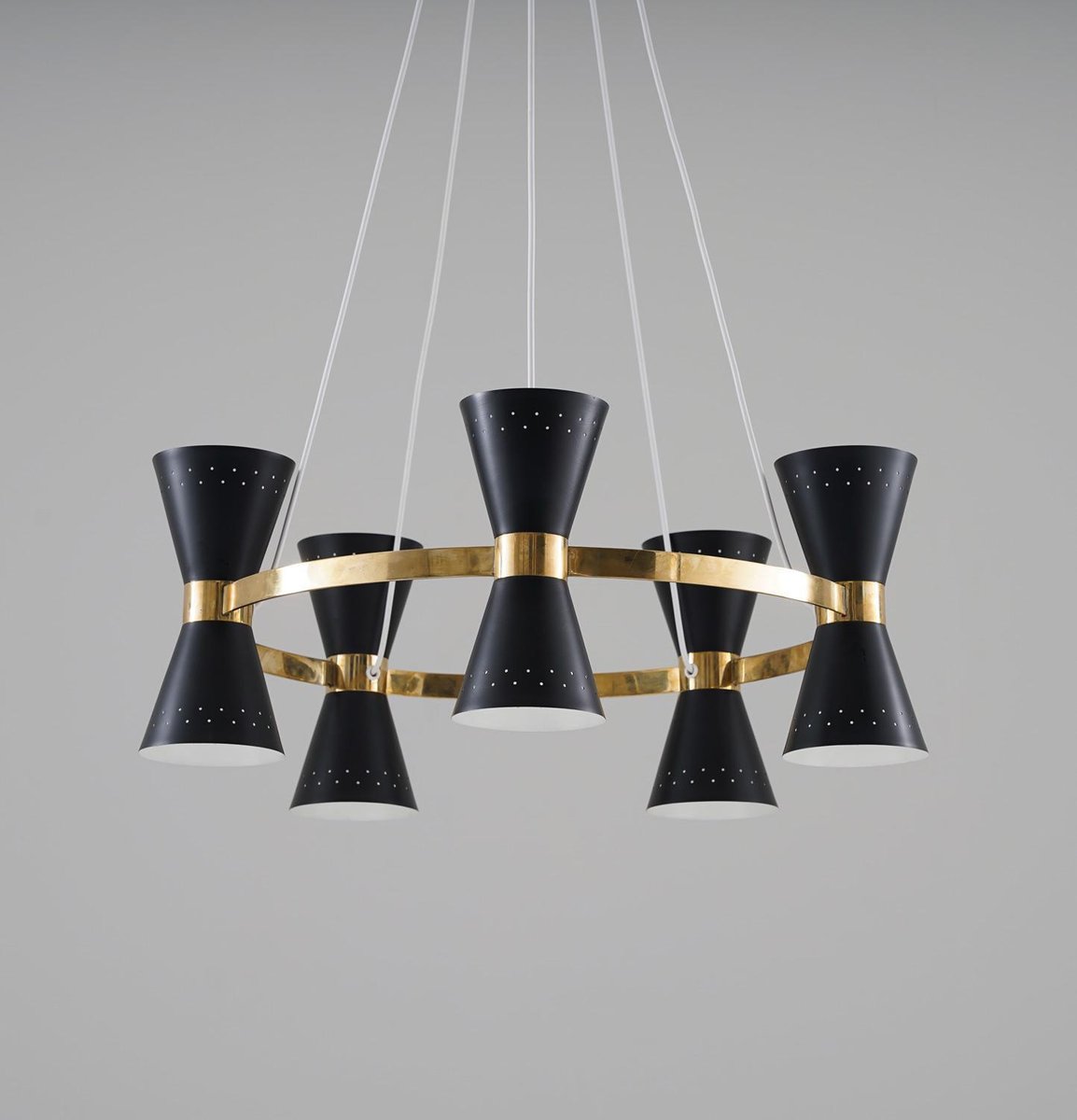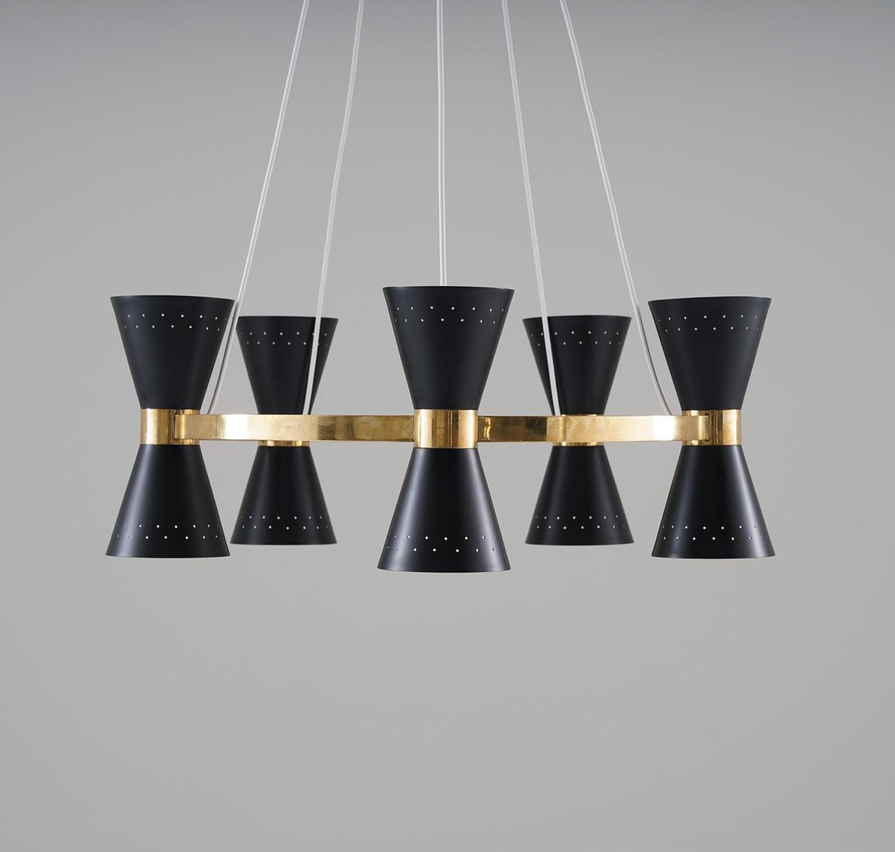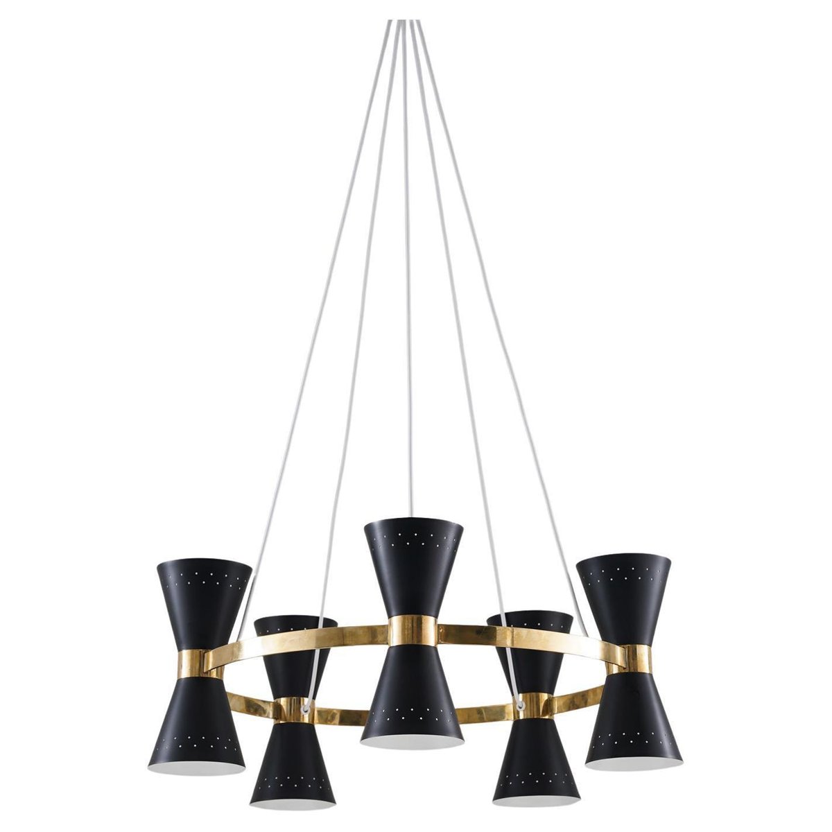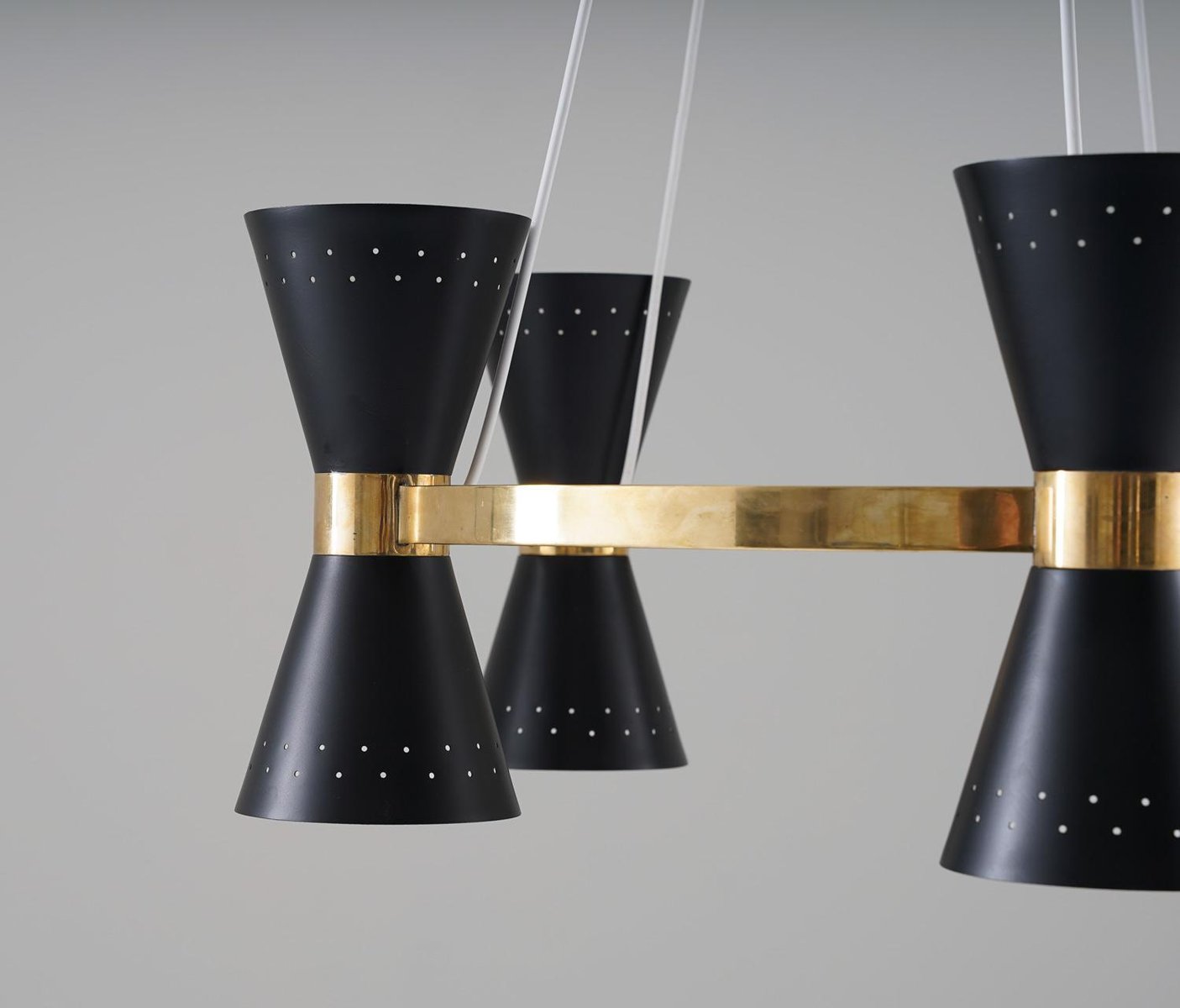 Lámpara de araña sueca Mid-Century de latón y metal de Alf Svensson para Bergboms