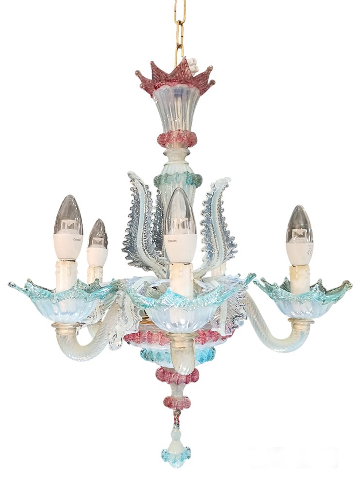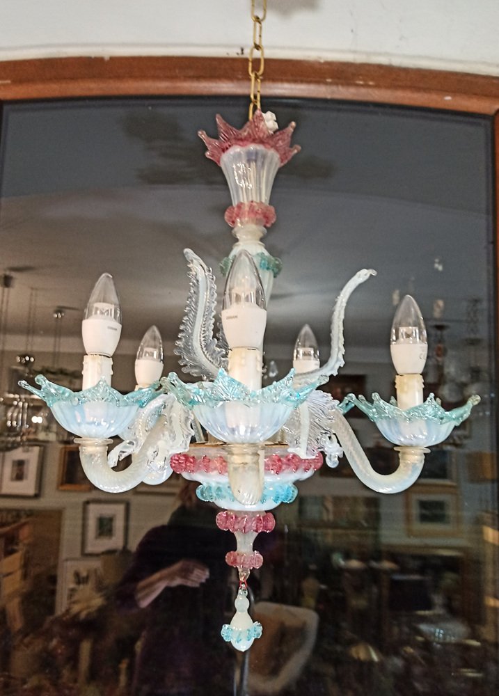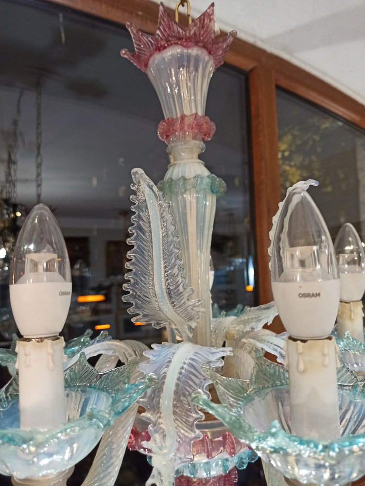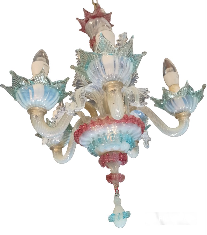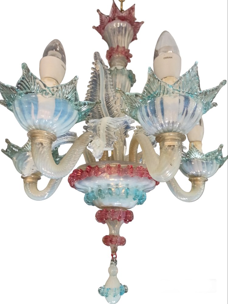 Lámpara de araña veneciana de vidrio opalino, Italia, años 70