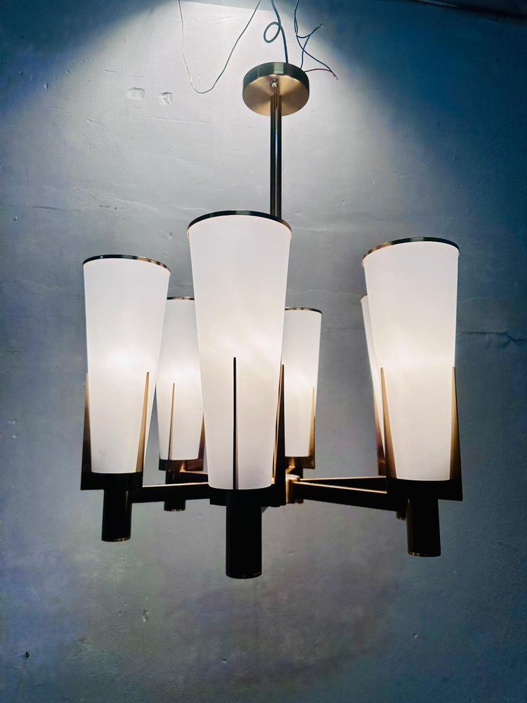 Refined vintage hanging chandelier dating from the 1940s, in perfect modernist style.