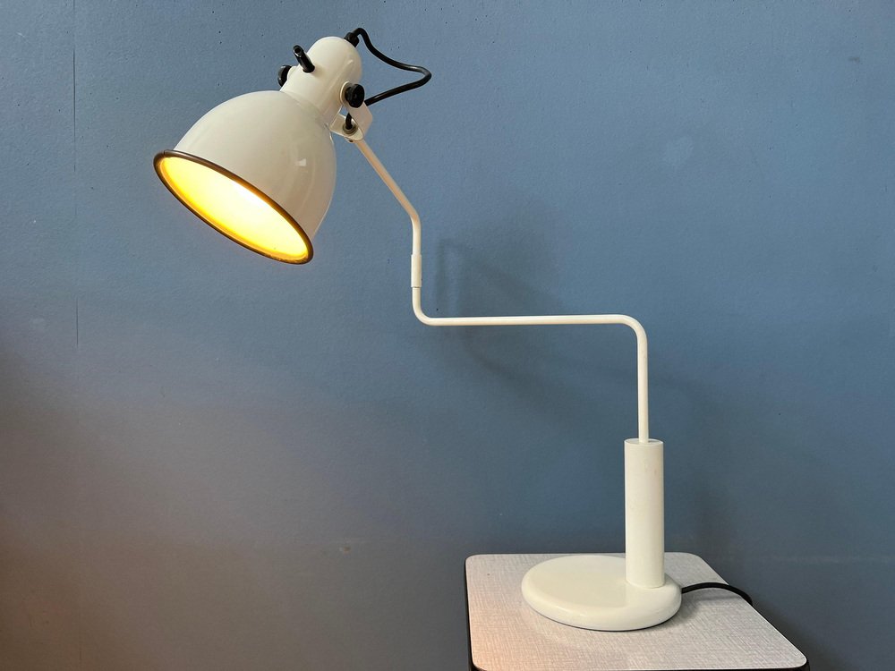 Lámpara de mesa Anvia con brazo articulado en blanco de Hoogervorst, años 70