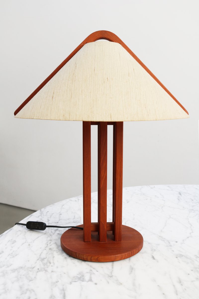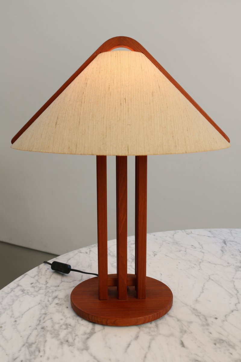 Lámpara de mesa danesa moderna de teca de Domus, años 70