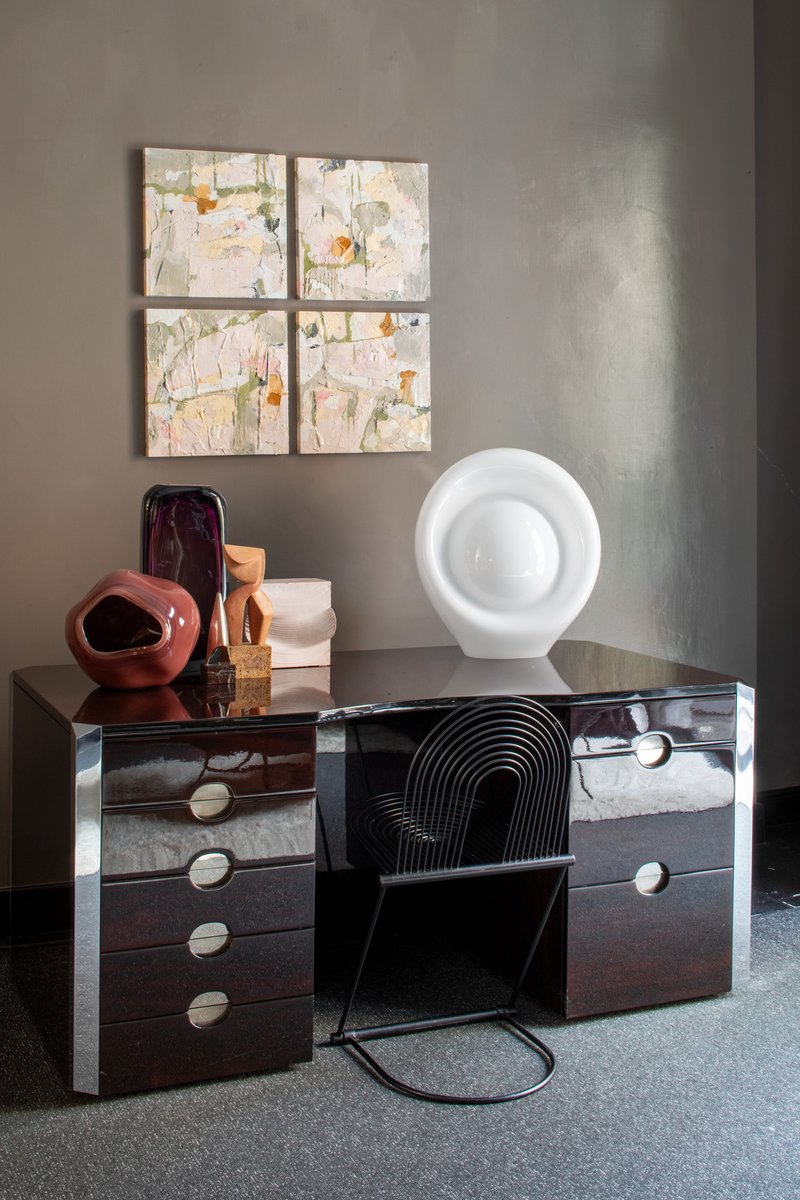 The history of Vistosi is one of the longest in the panorama of Murano glassmaking; its origins date back to the mid-16th century. Starting in 1945, a new phase in the company's history began: on the one hand, the concentration on the production of lighting items, with the collaboration with great names in Italian design, such as Gae Aulenti, Angelo Mangiarotti, or Ettore Sottsass, on the other hand, the acquisition of a furnace in Murano, which allowed Gino and Luciano Vistosi control of the entire production chain. The family ceded control of the company in 1989, with the foundation of Vetreria Vistosi, which still exists and produces, but on an industrial and no longer manufacturing scale.