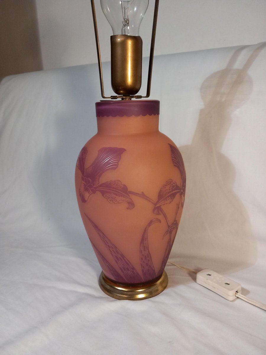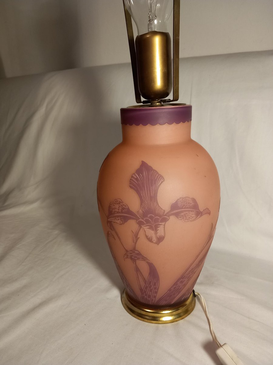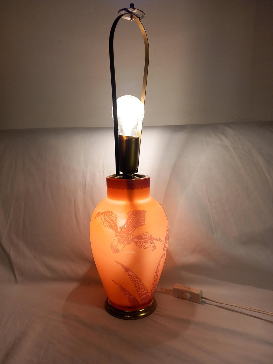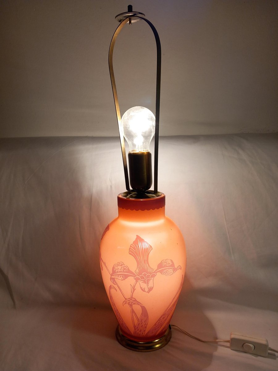 Lámpara de mesa francesa con vidrio grabado