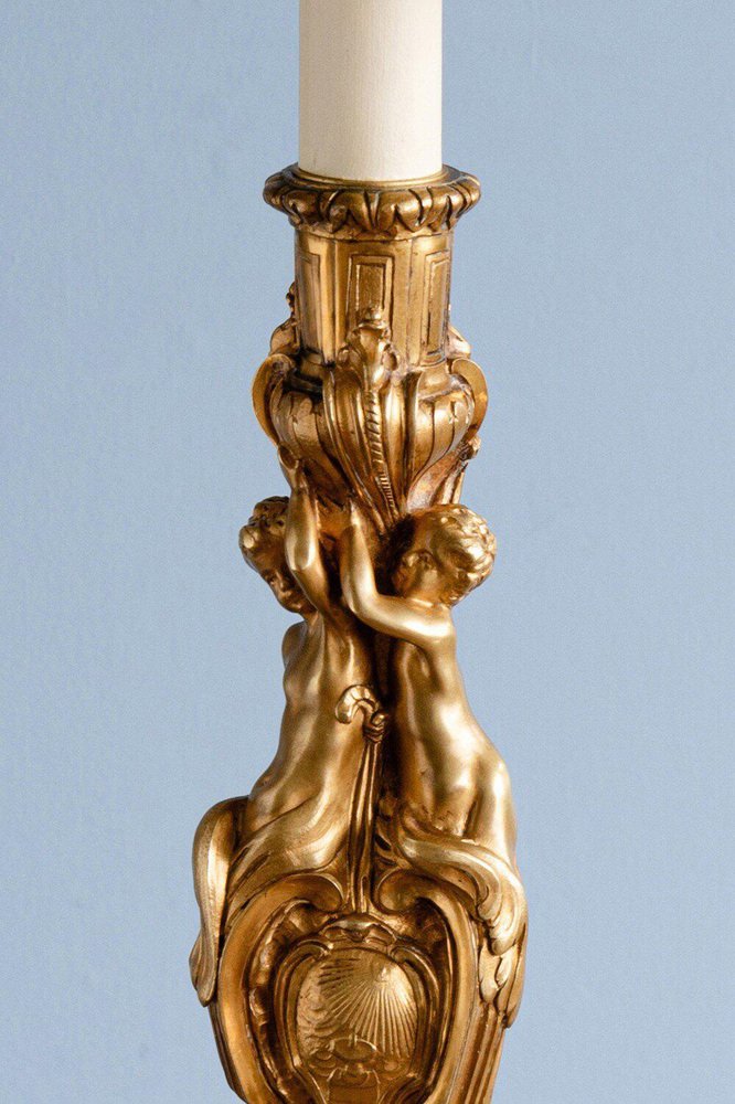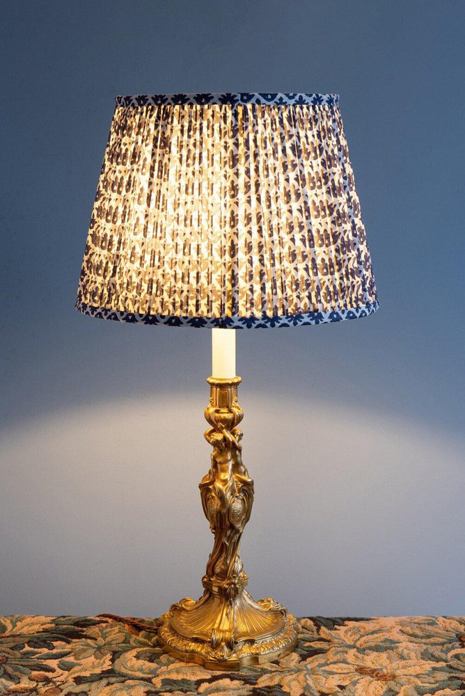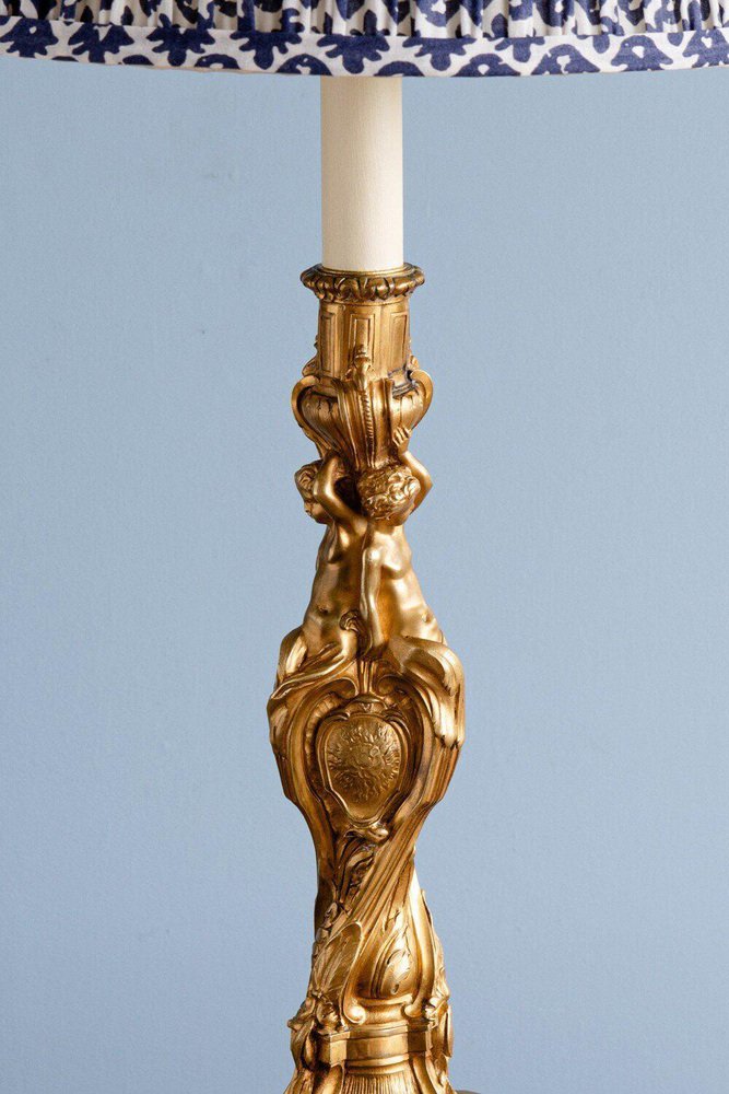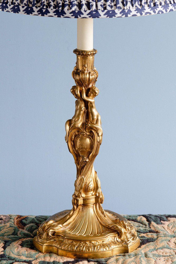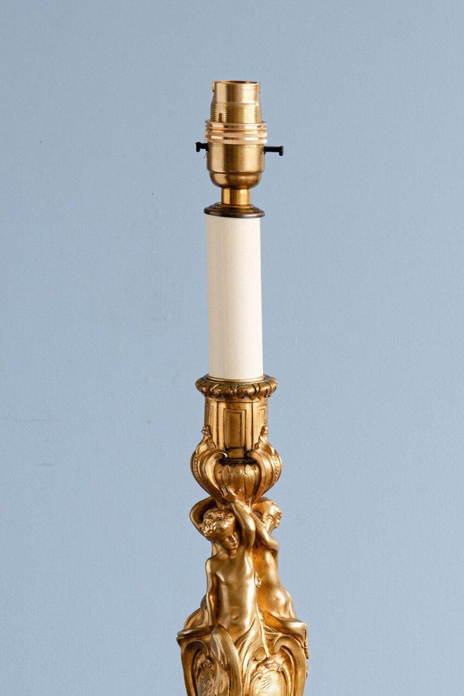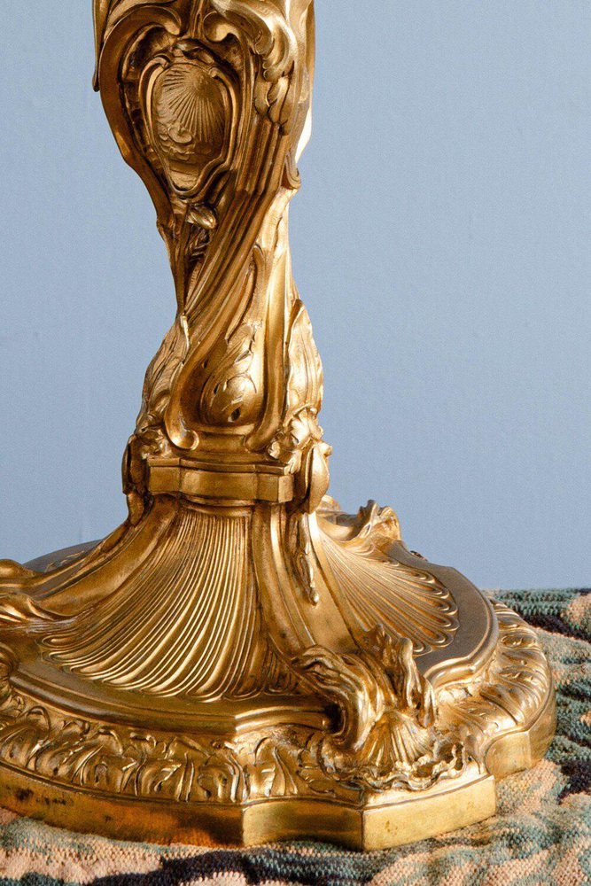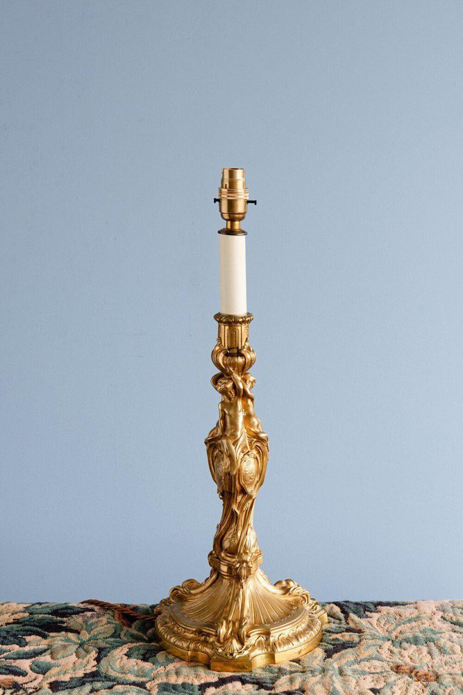 Lámpara de mesa francesa Luis XV de bronce dorado, década de 1800