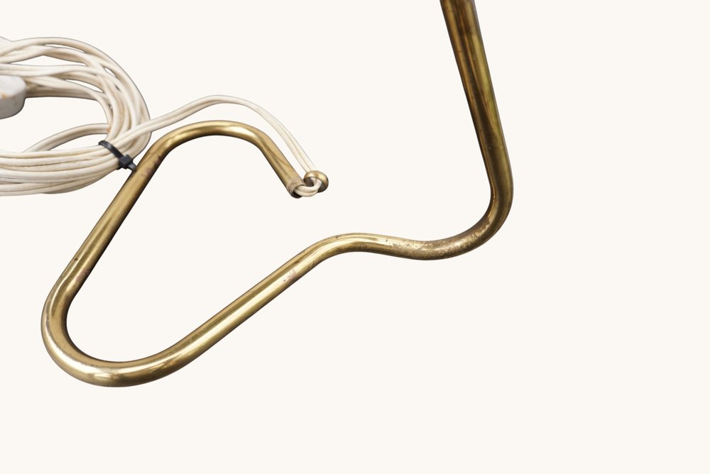 Lámpara de mesa turquesa, modelo GK14, diseñada por Erik Wärnå para Gnosjö Konstsmide, Suecia, década de 1950. Esta elegante lámpara de mediados de siglo cuenta con una pantalla de metal perforado en un característico color turquesa, combinada con detalles de latón y un esbelto pie angular. El cableado original es visualmente coherente con su época; sin embargo, se recomienda una inspección profesional para su uso diario. Su tamaño compacto y su luz concentrada la hacen ideal como lámpara de escritorio, de lectura o de acento, aportando el auténtico encanto escandinavo de mediados de siglo a cualquier estancia.