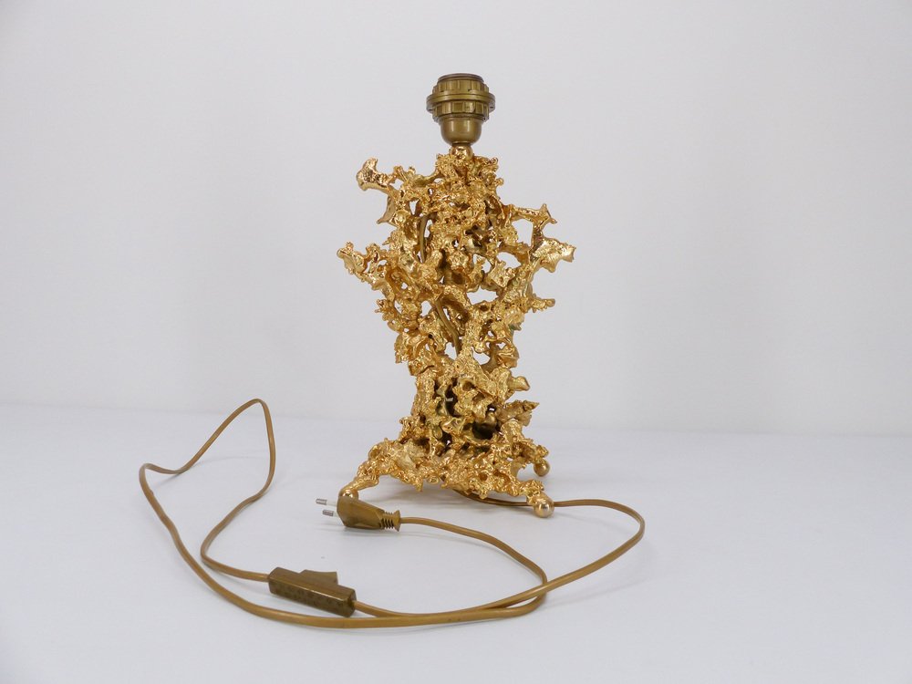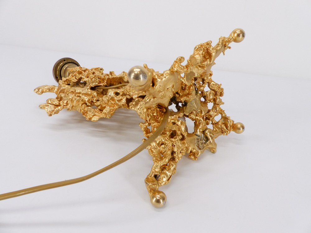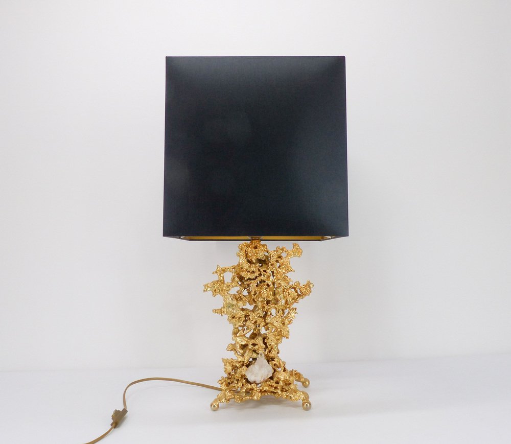 Pied de lamp escultórico en bronce dorado y cuarzo evocando rocas marinas atribuido a Claude Victor Boeltz (nacido en 1937)