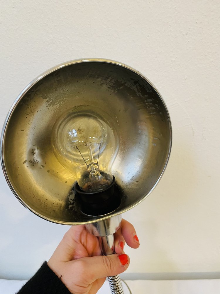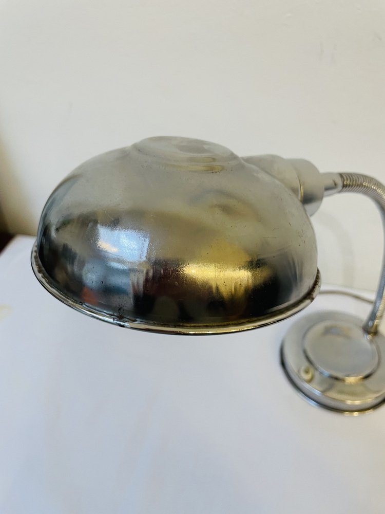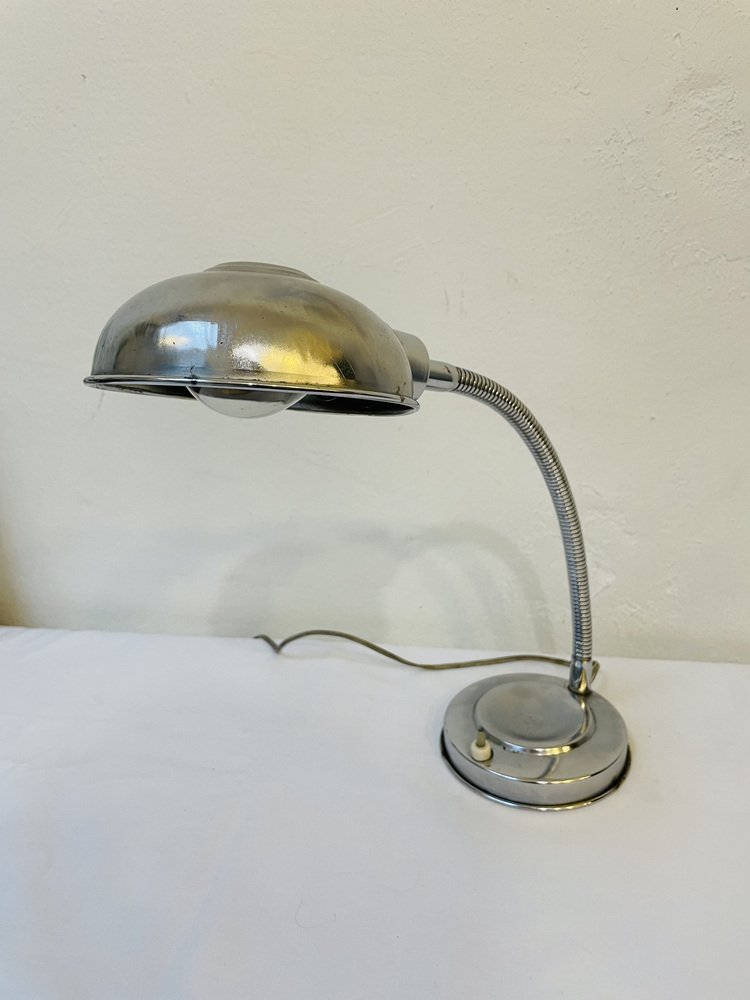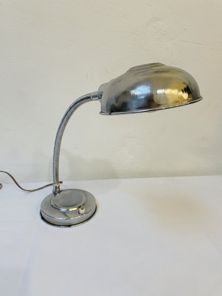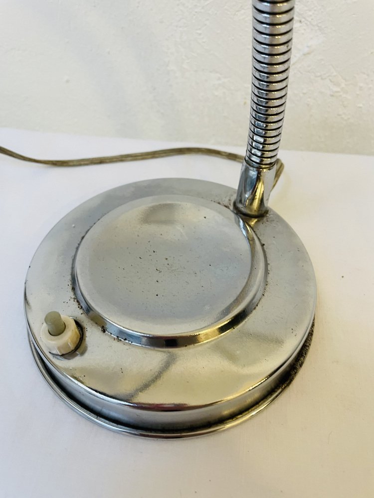 Lámpara de mesa industrial cromada, años 50