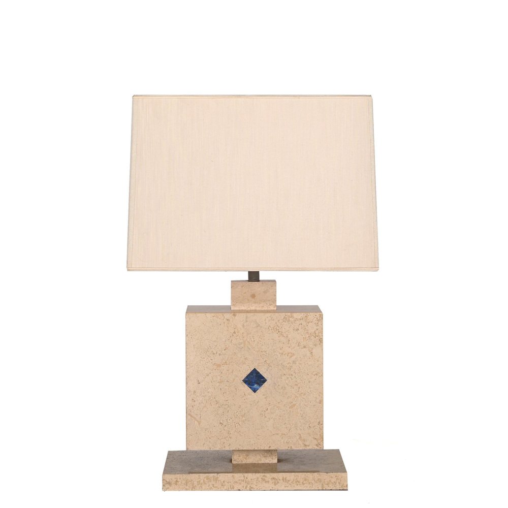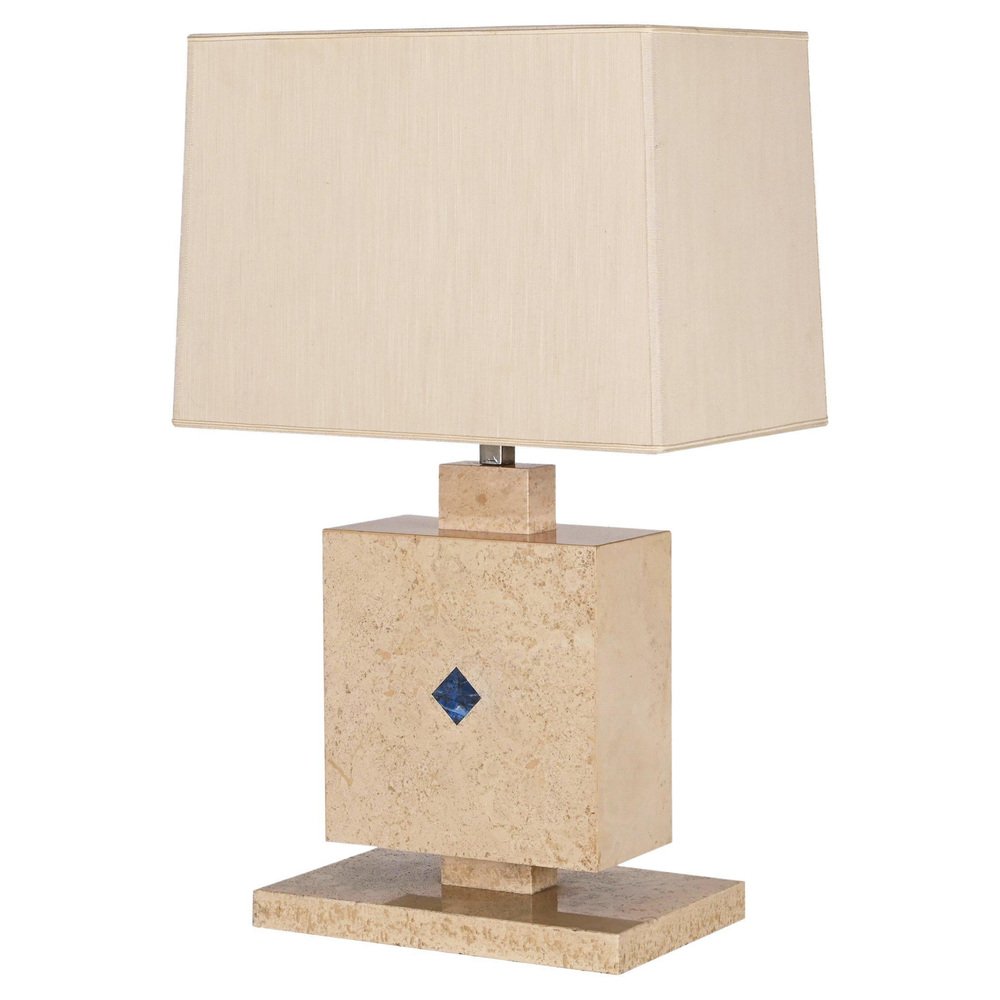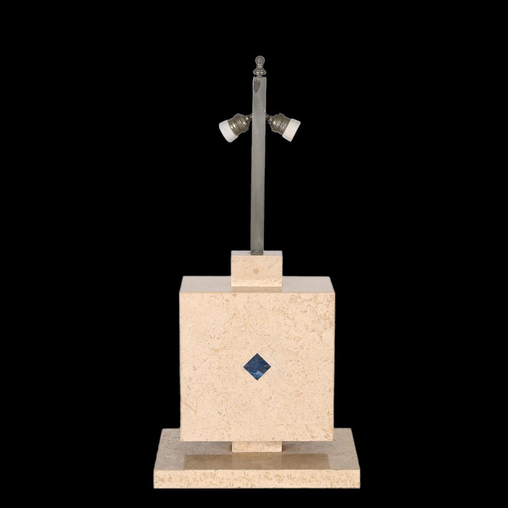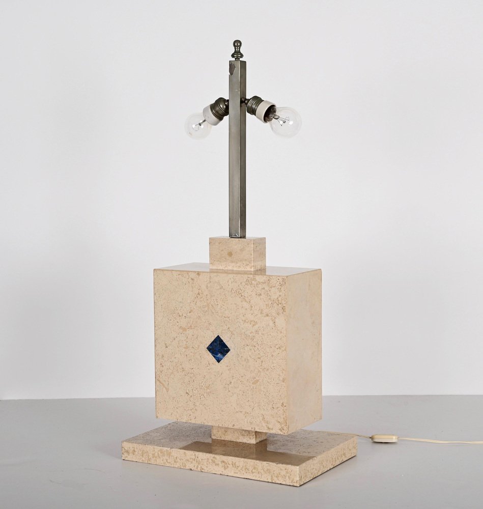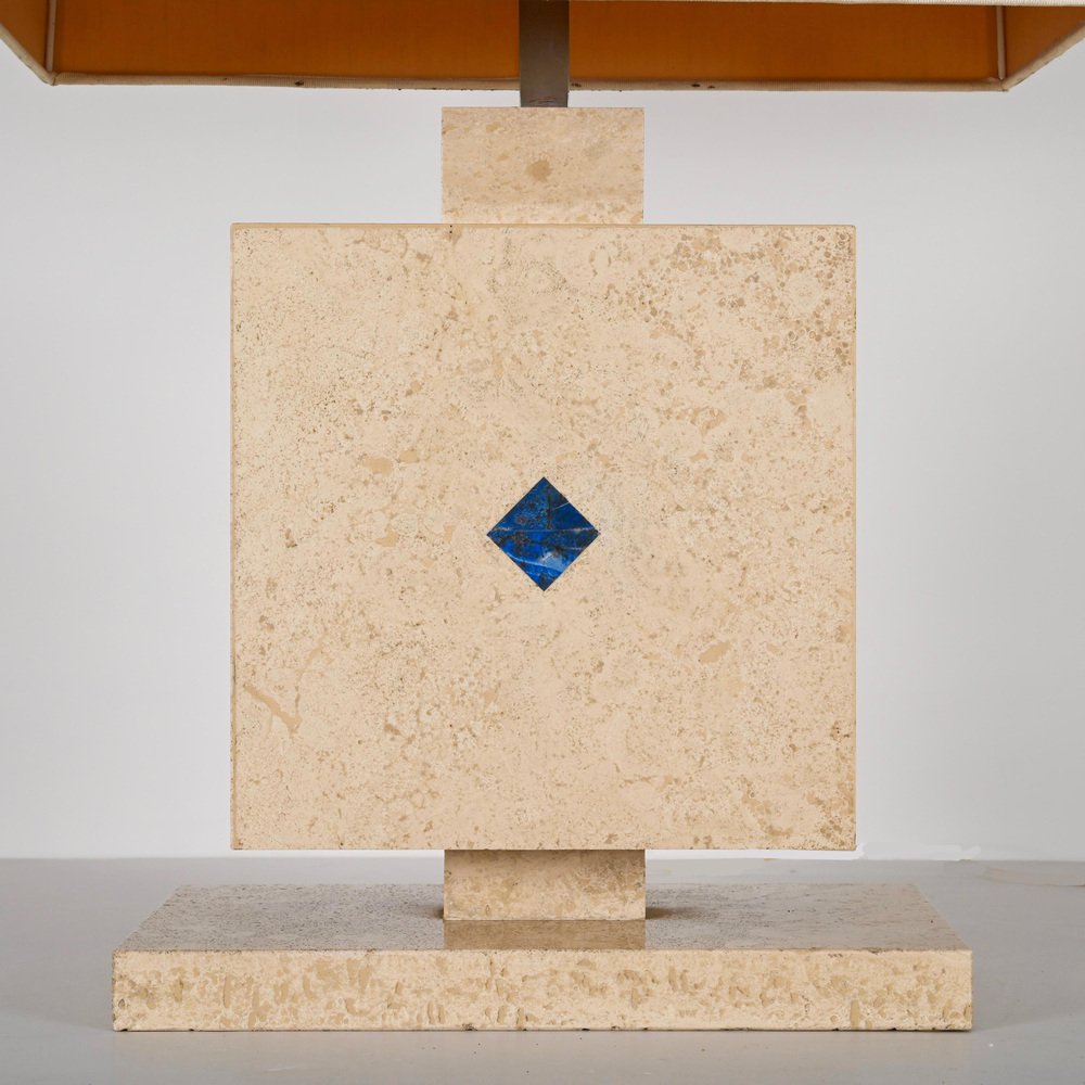 Lámpara de mesa italiana de mármol travertino y lapislázuli, años 70