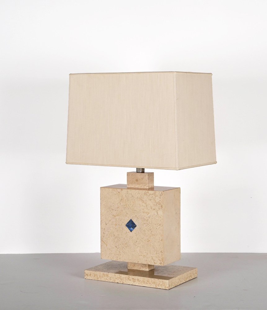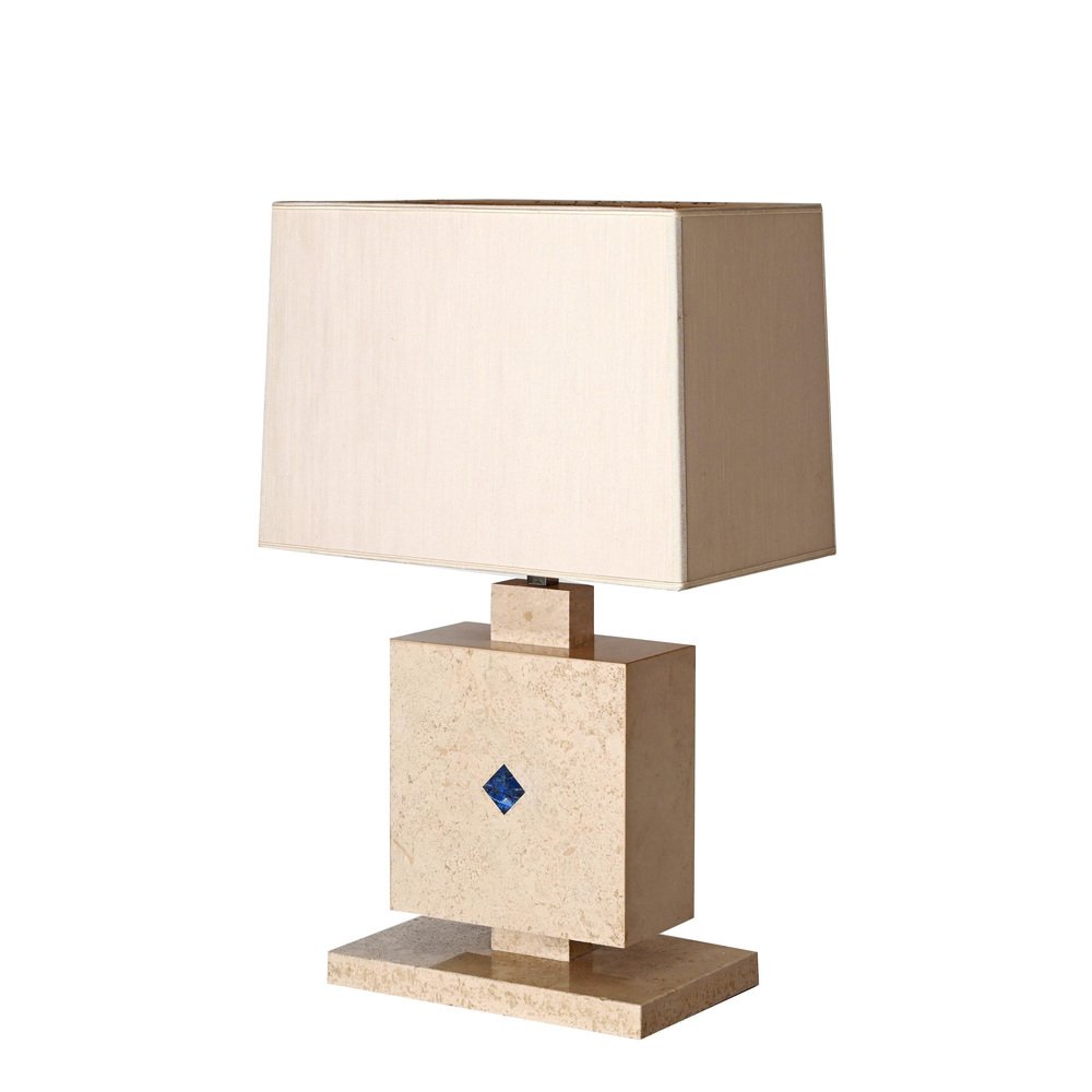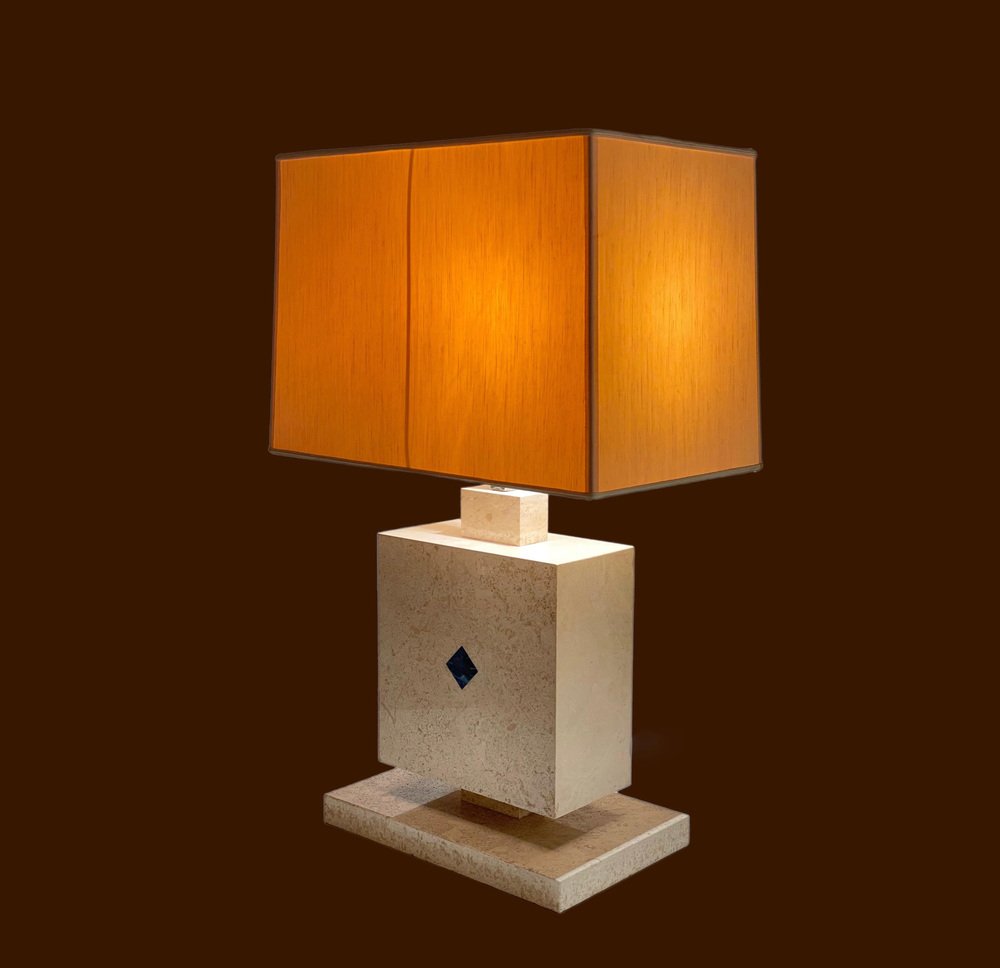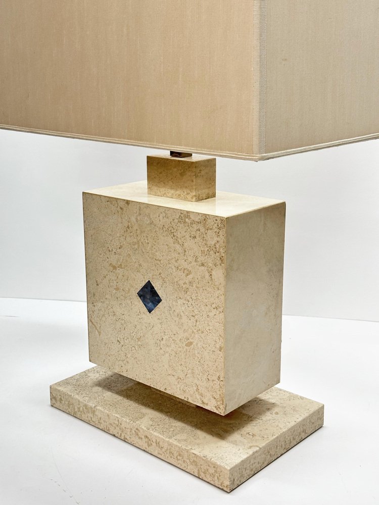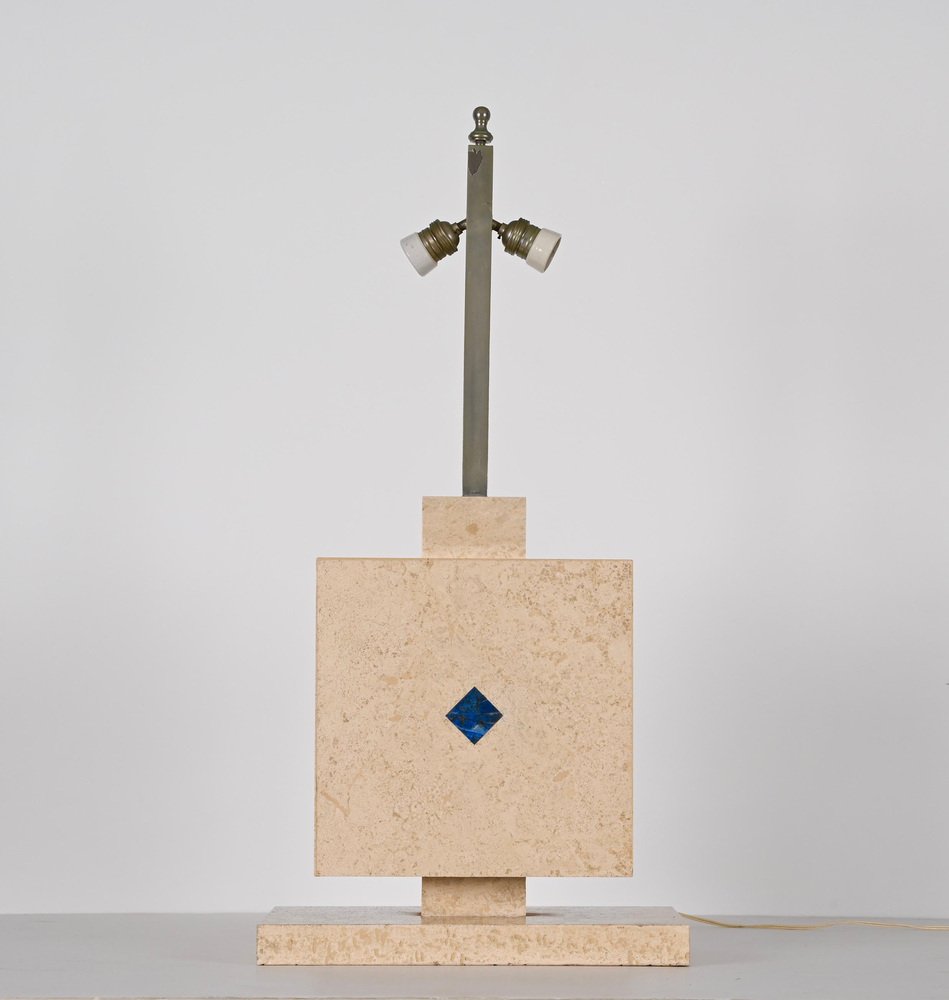 Lámpara de mesa italiana de mármol travertino y lapislázuli, años 70