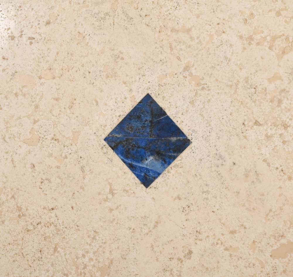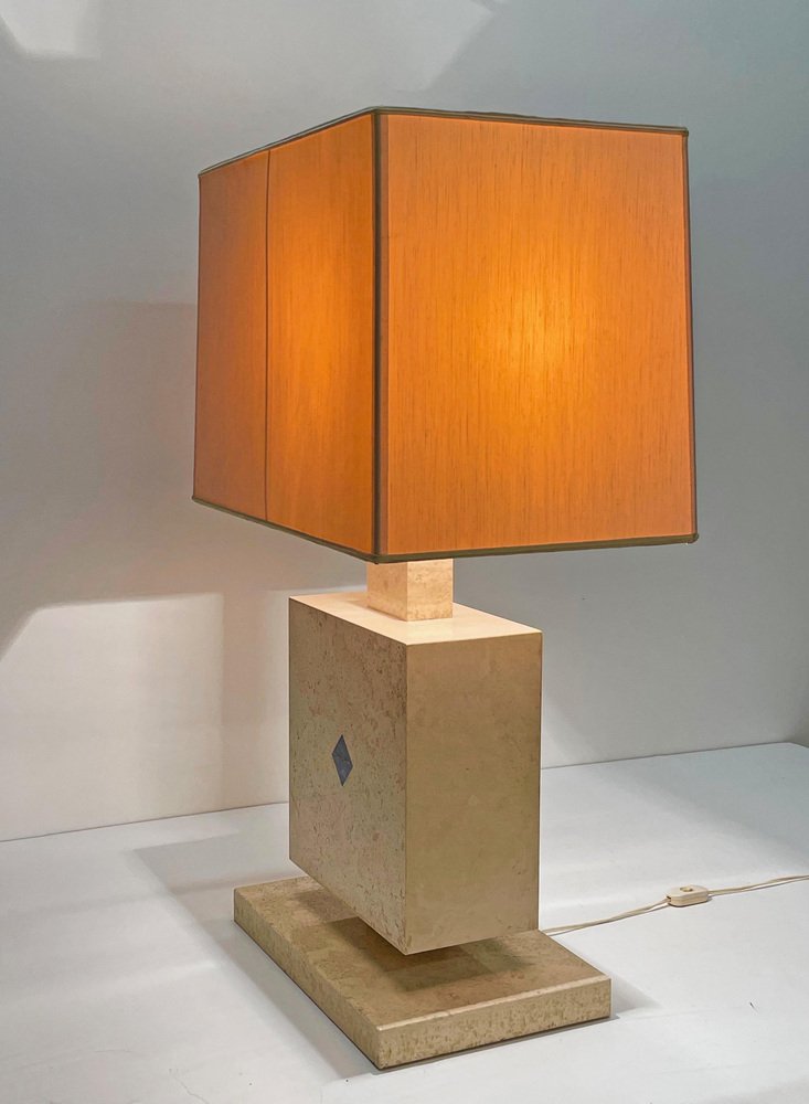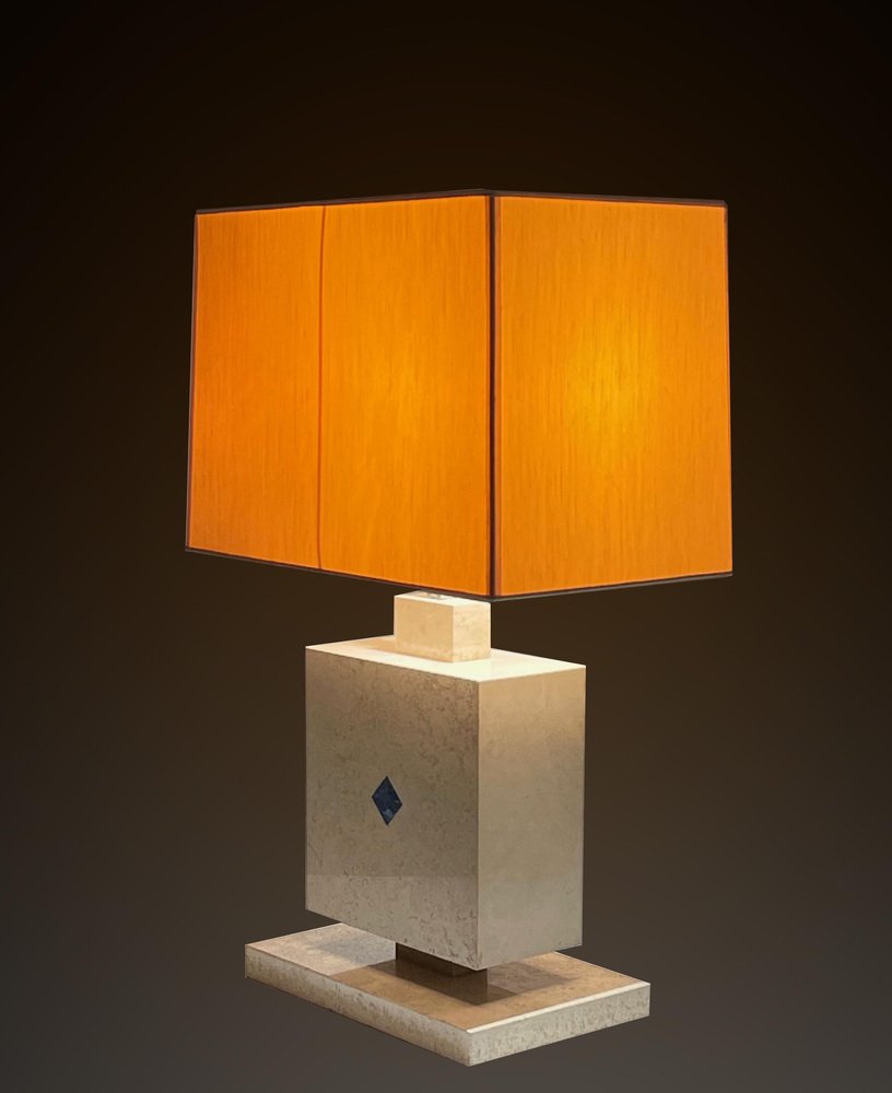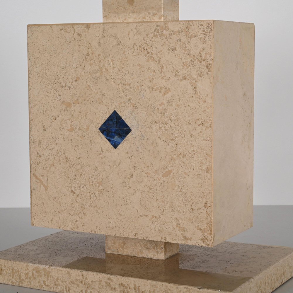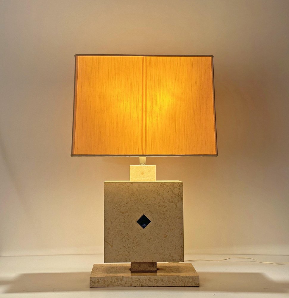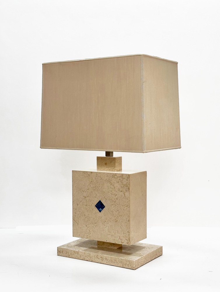 Lámpara de mesa italiana de mármol travertino y lapislázuli, años 70