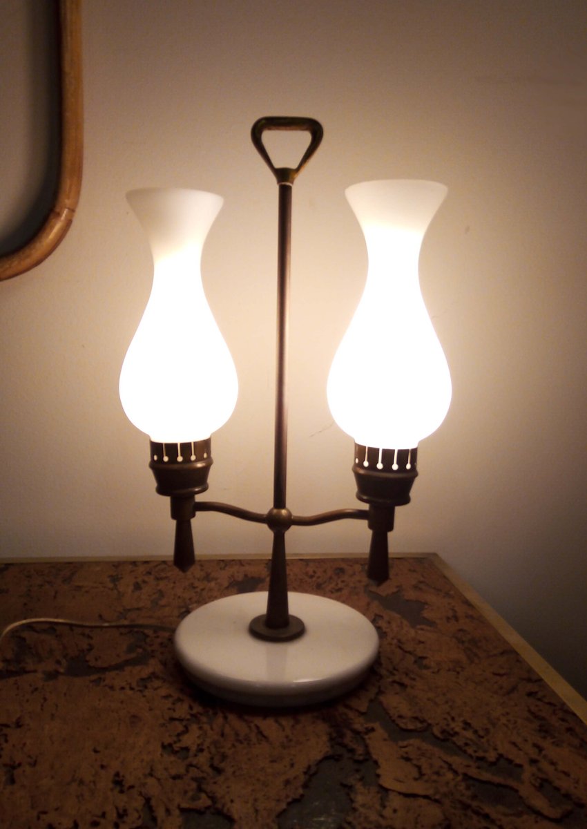 Italian lighting manufacturer Arredoluce was an important proponent of postwar Italian lighting design and was founded by designer-entrepreneur Angelo Lelli (sometimes written Lelii). Lelli is thought to have established Arredoluce in 1947, the year after his lamp designs were included in the well-regarded Domus magazine.