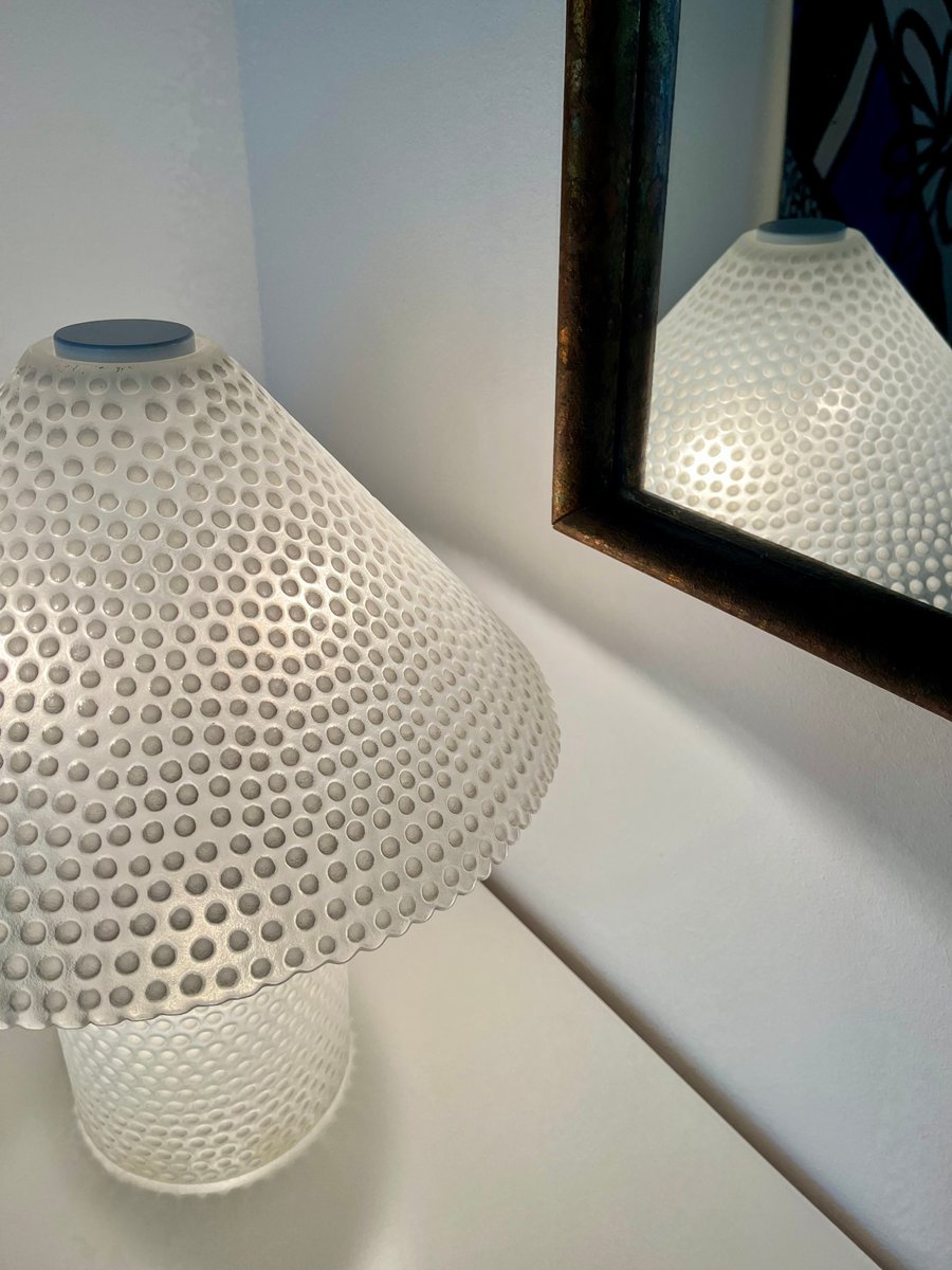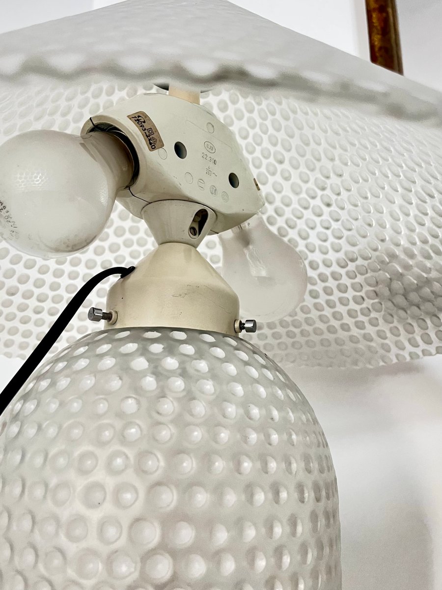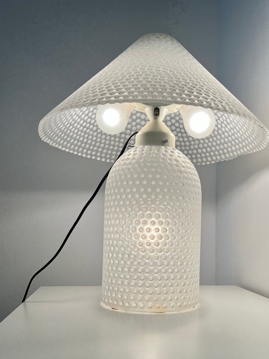 Lámpara de mesa Mid-Century de vidrio texturizado blanco de Peill & Putzler, Alemania, años 70