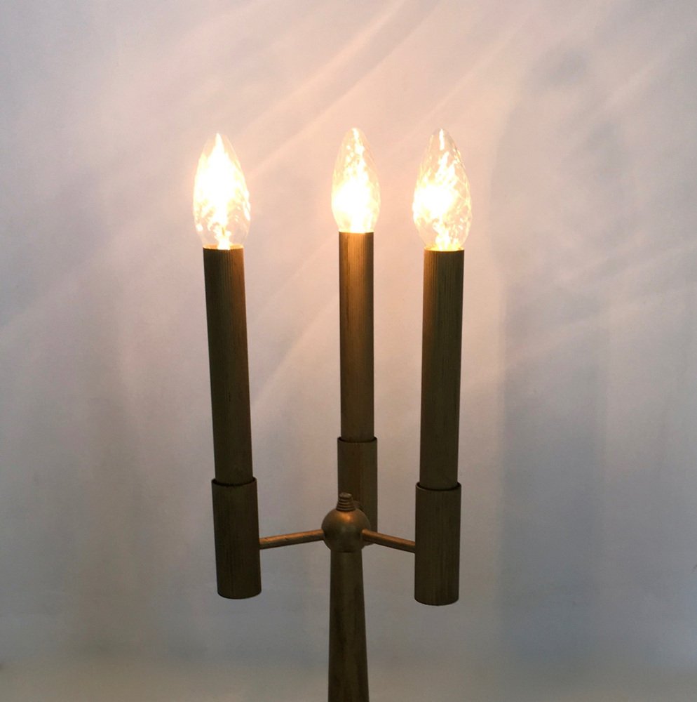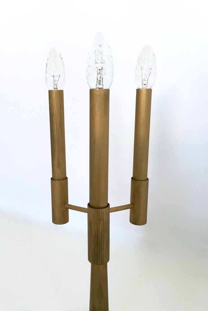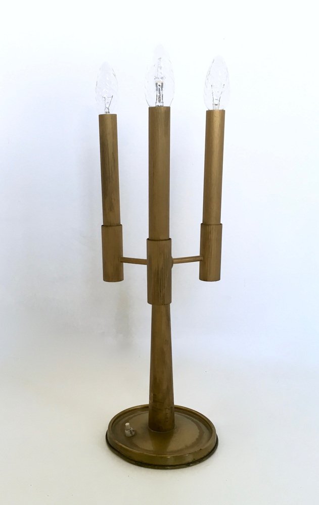 Lámpara de mesa vintage de latón con tres brazos con diseño de candelabro, Italia, años 50