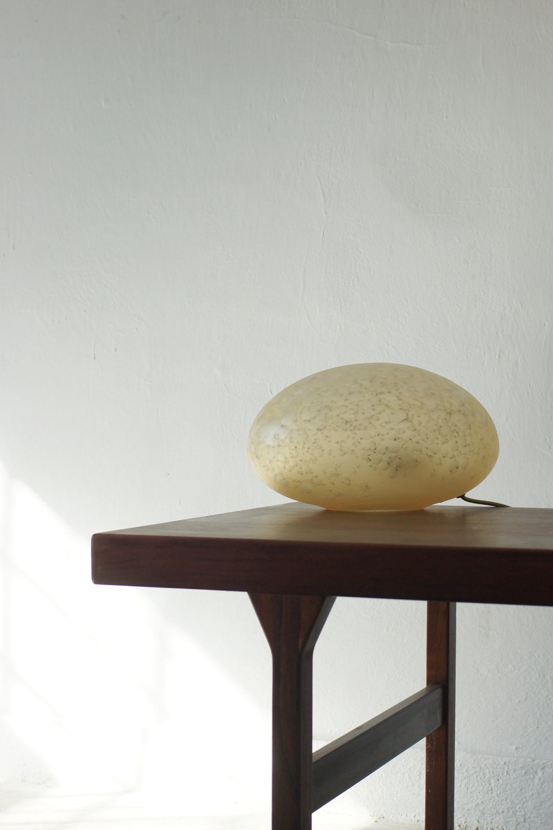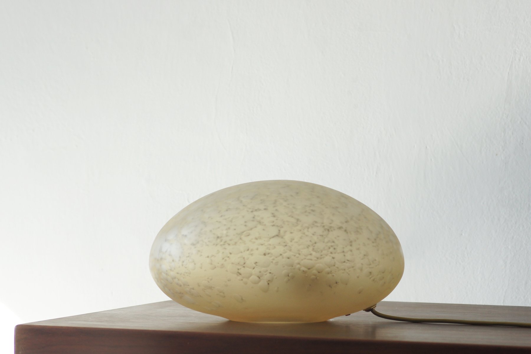 Its shape resembles a stone smoothed by water or a delicately blown glass bubble – full of subtlety, light, and elegance. When illuminated, the glass comes to life, creating an impressive light pattern that diffuses into the surroundings in soft, golden tones.