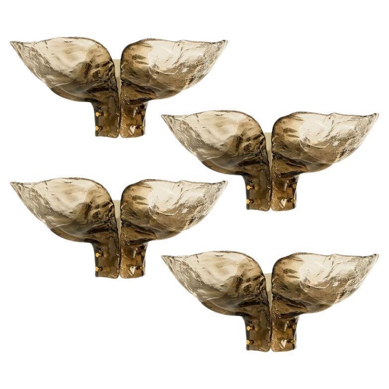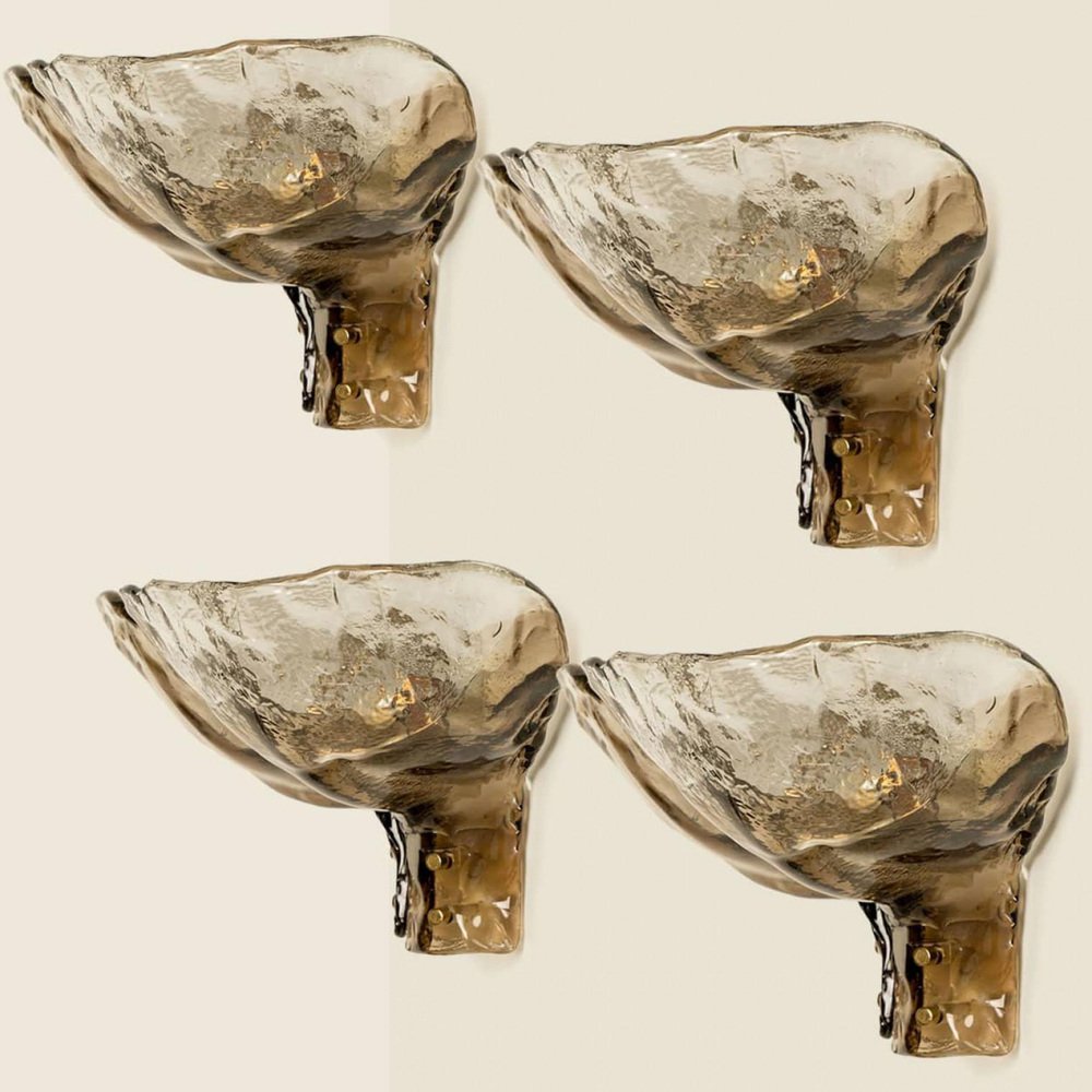 Lámparas colgantes Citrus grande de vidrio ahumado de Kalmar, 1969. Juego de 4