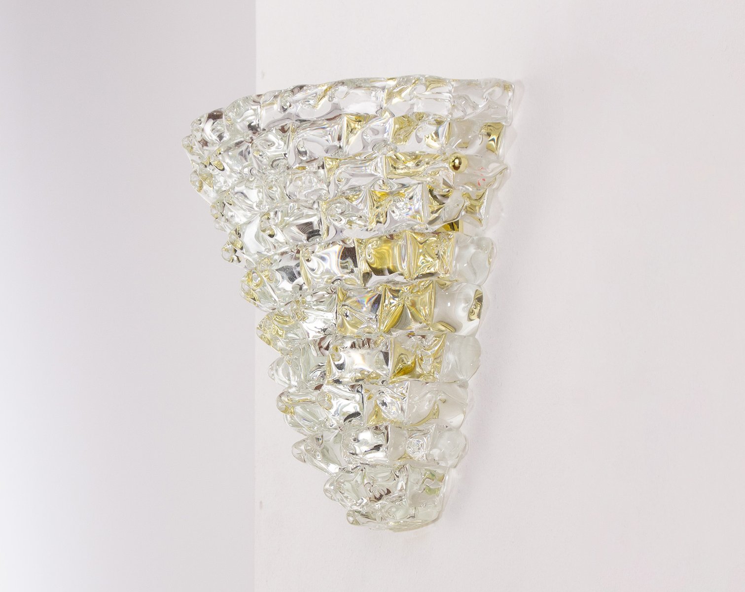 Lámpara de pared italiana de cristal de Murano rostrado, años 70