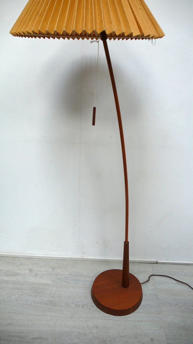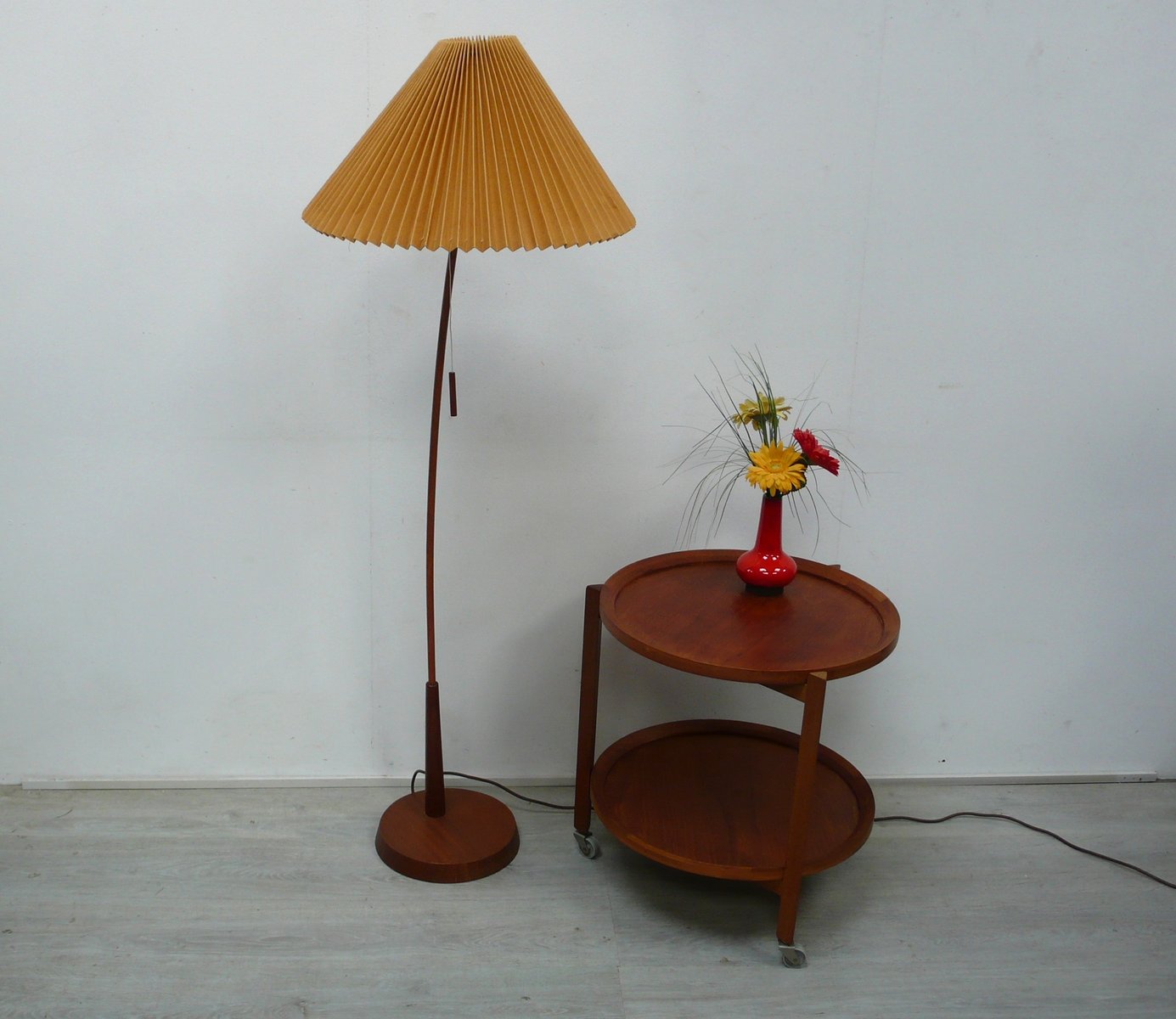 Lámpara de pie alemana Mid-Century moderna de teca curvada y pantalla plisada, años 50