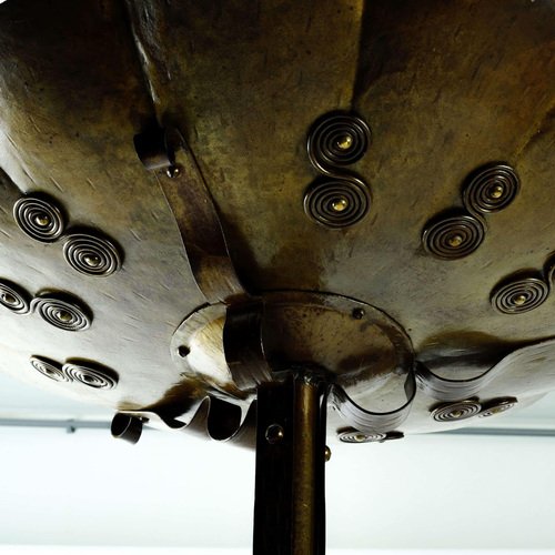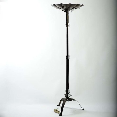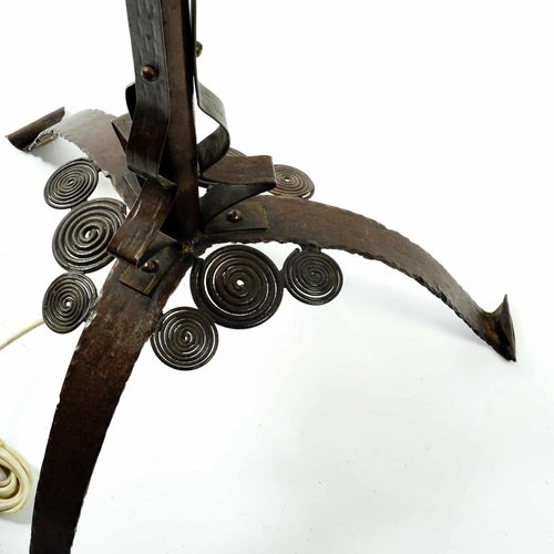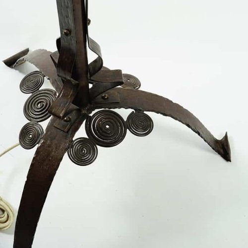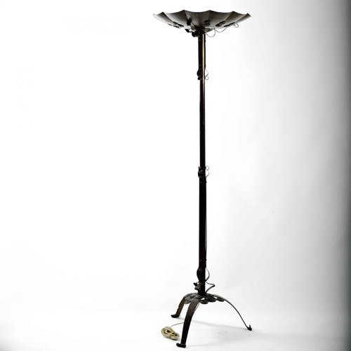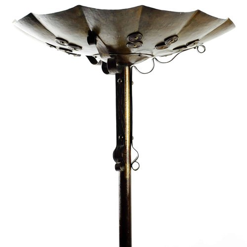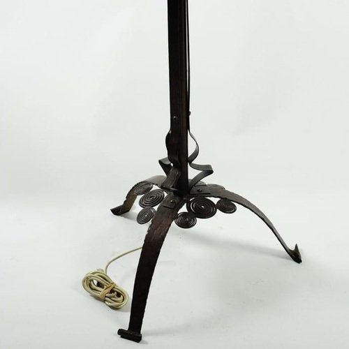 Lámpara de pie Art Déco de hierro forjado y cobre patinado, años 20
