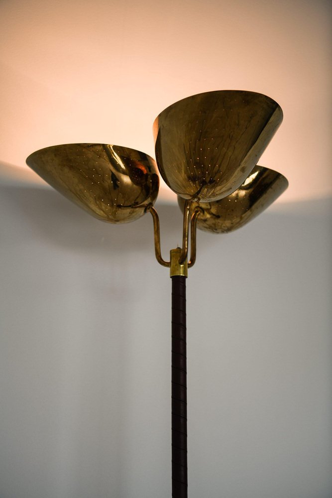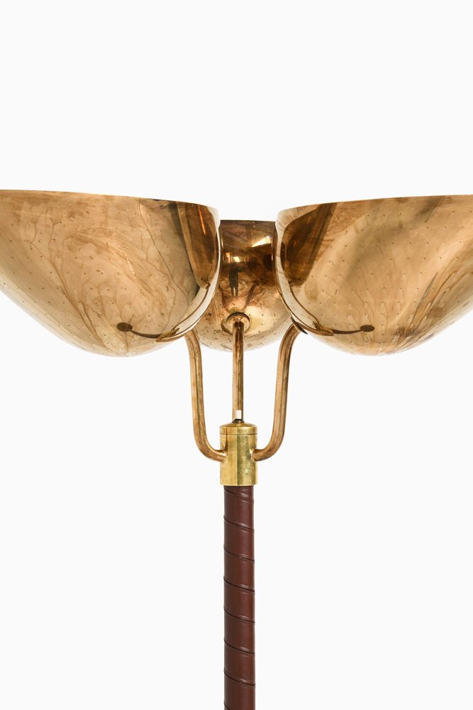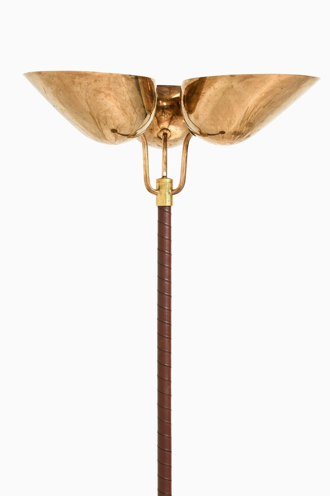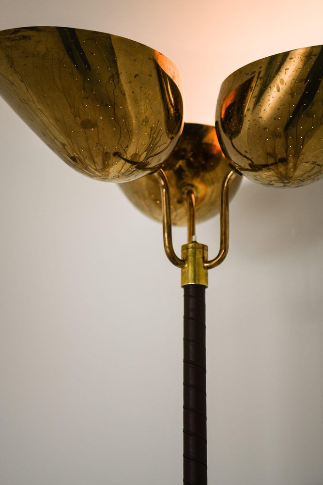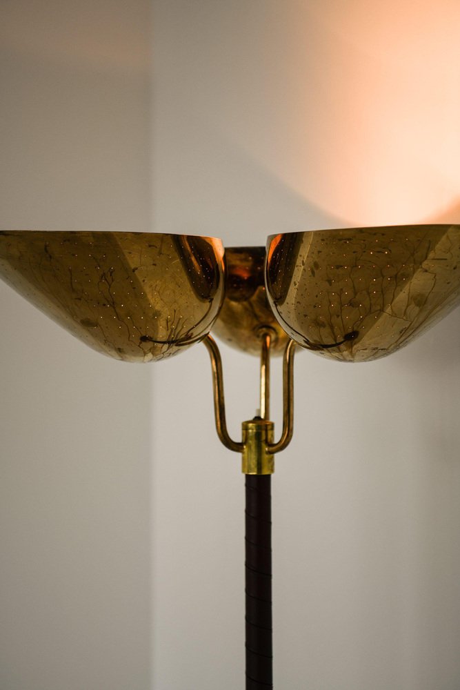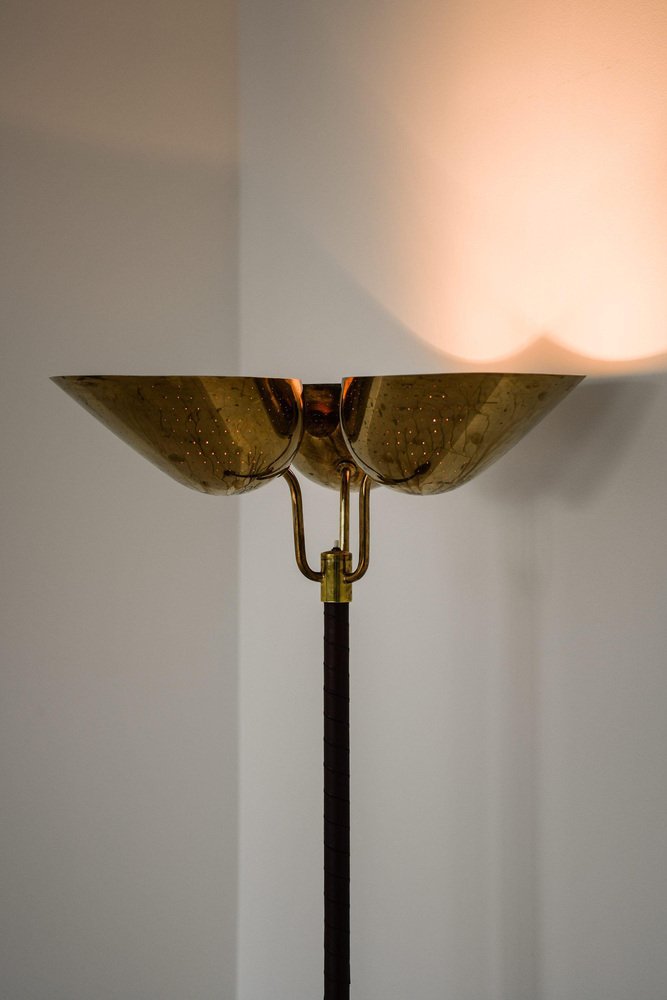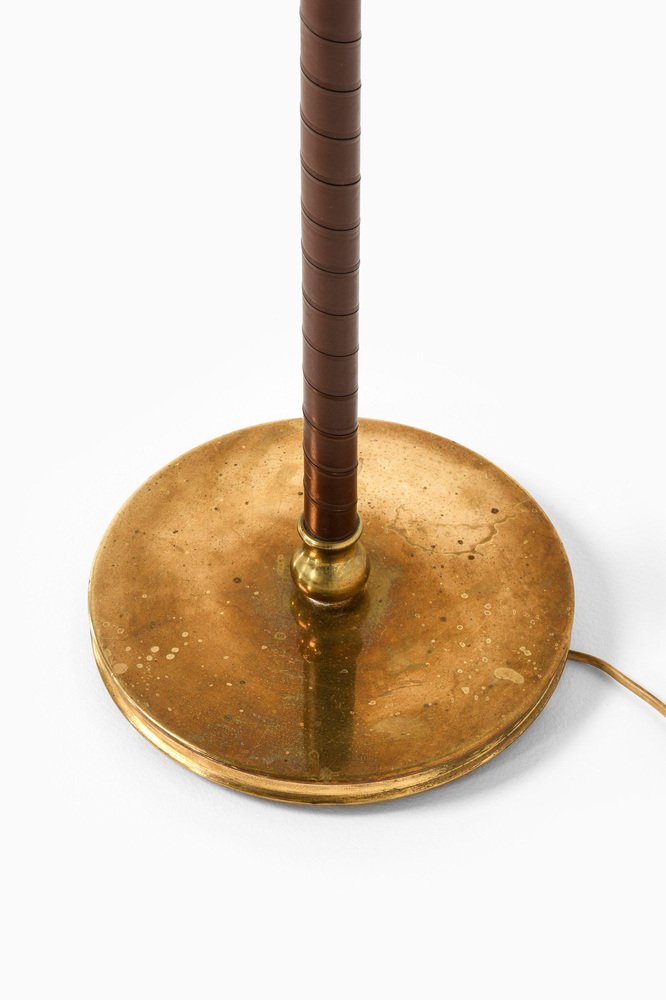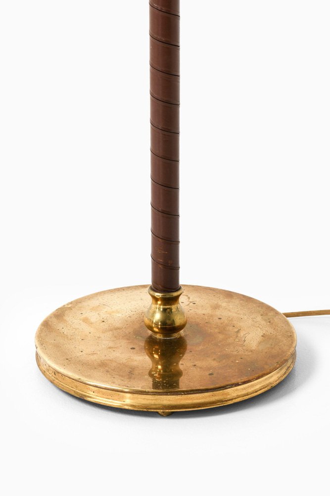 Lámpara de pie de latón y cuero atribuida a Carl-Axel Acking, años 40