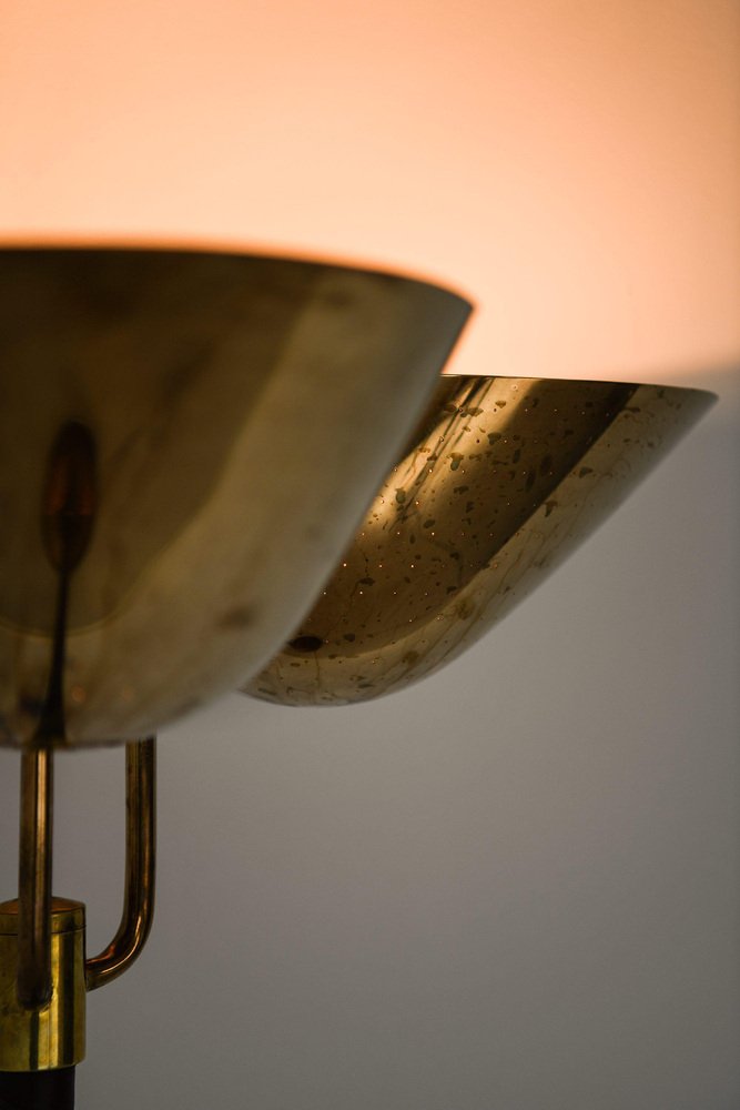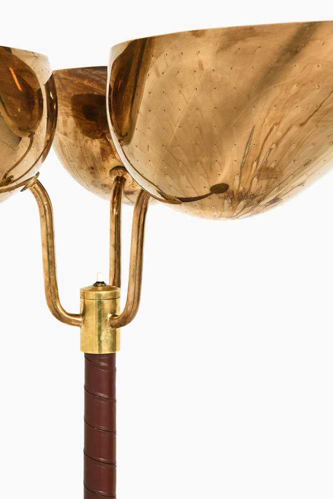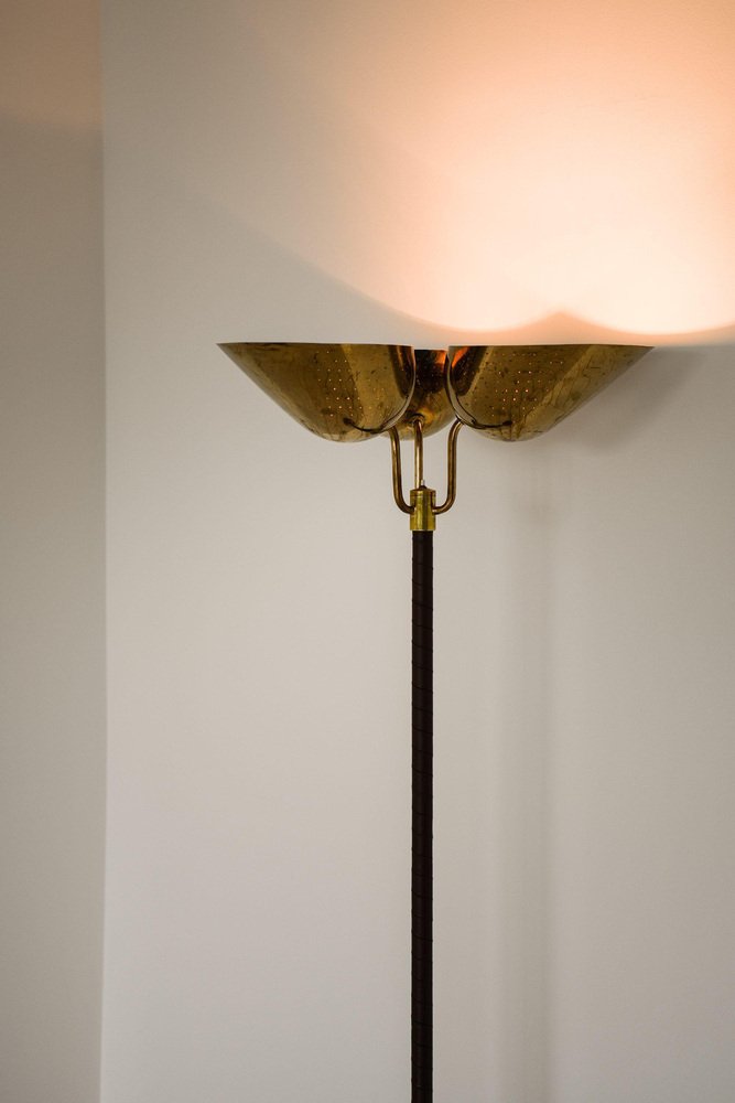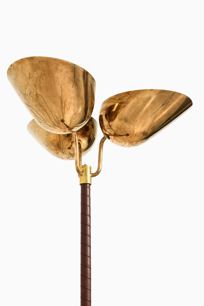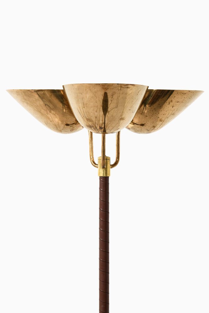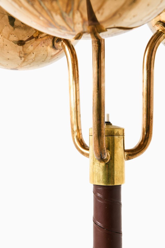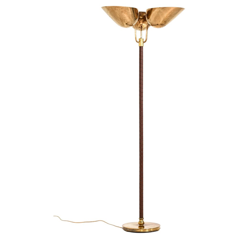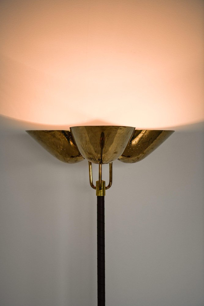 Lámpara de pie de latón y cuero atribuida a Carl-Axel Acking, años 40
