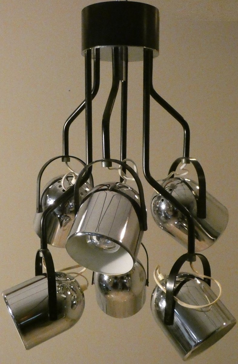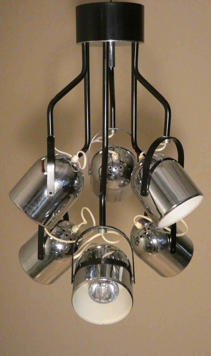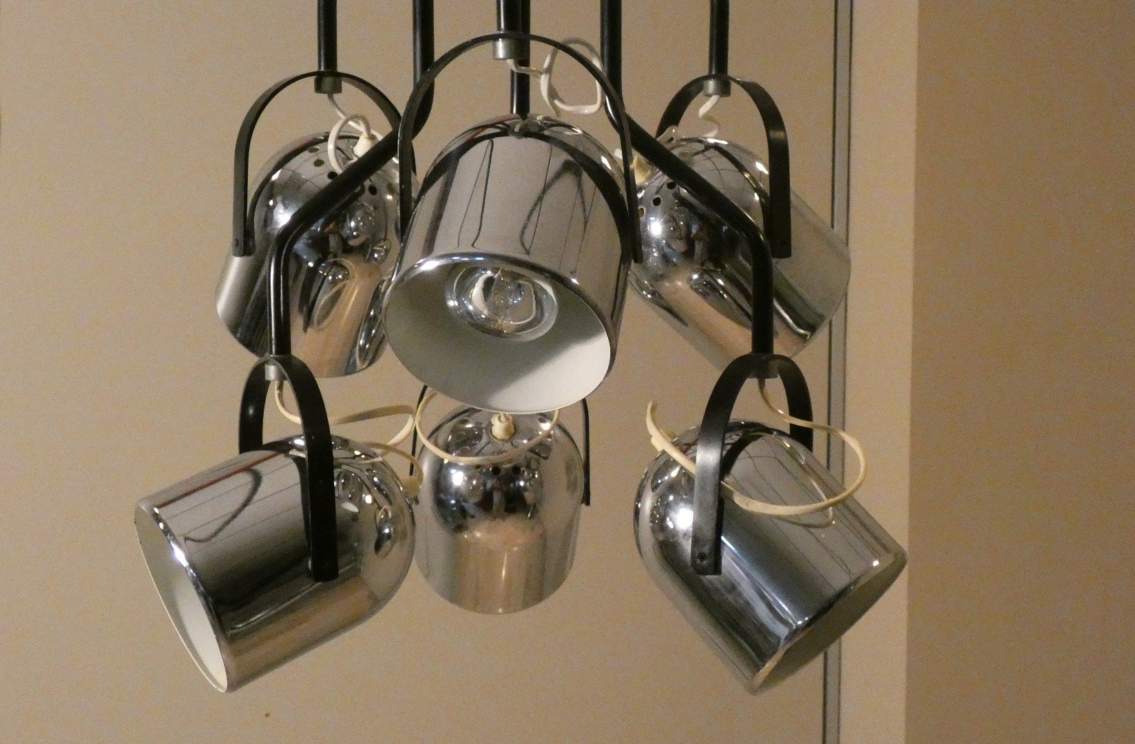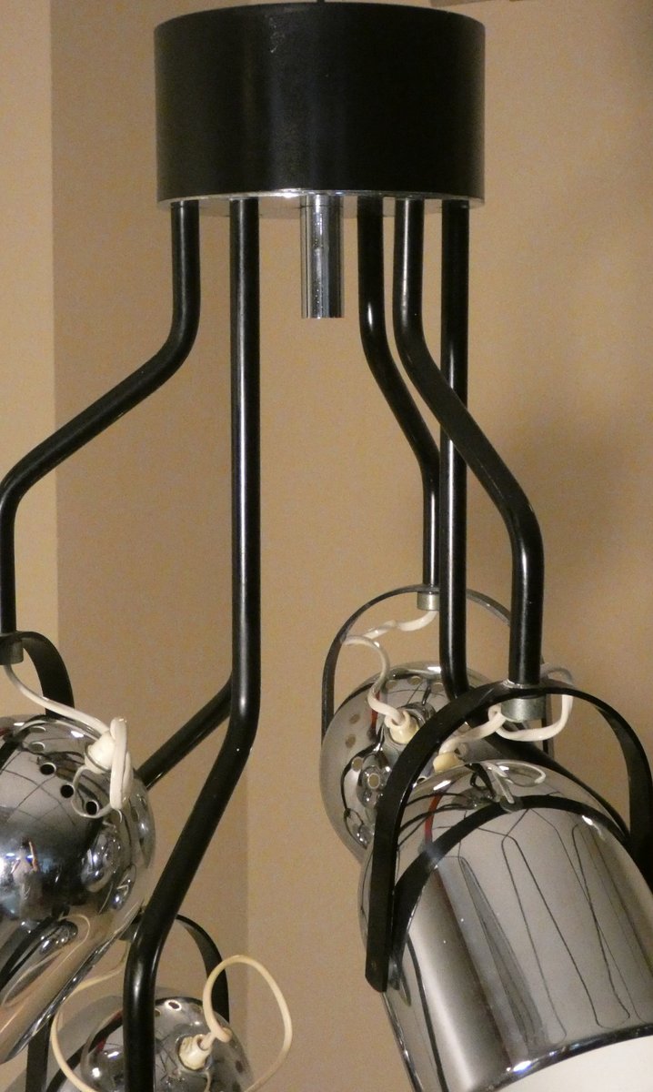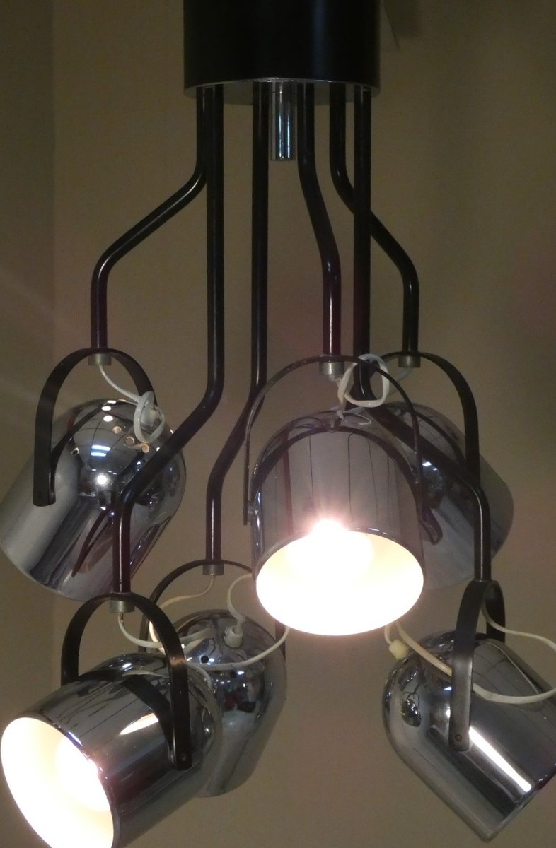 Lámpara de techo 6 Spotlight de acero y esmalte atribuida a Goffredo Reggiani, Italia, años 60