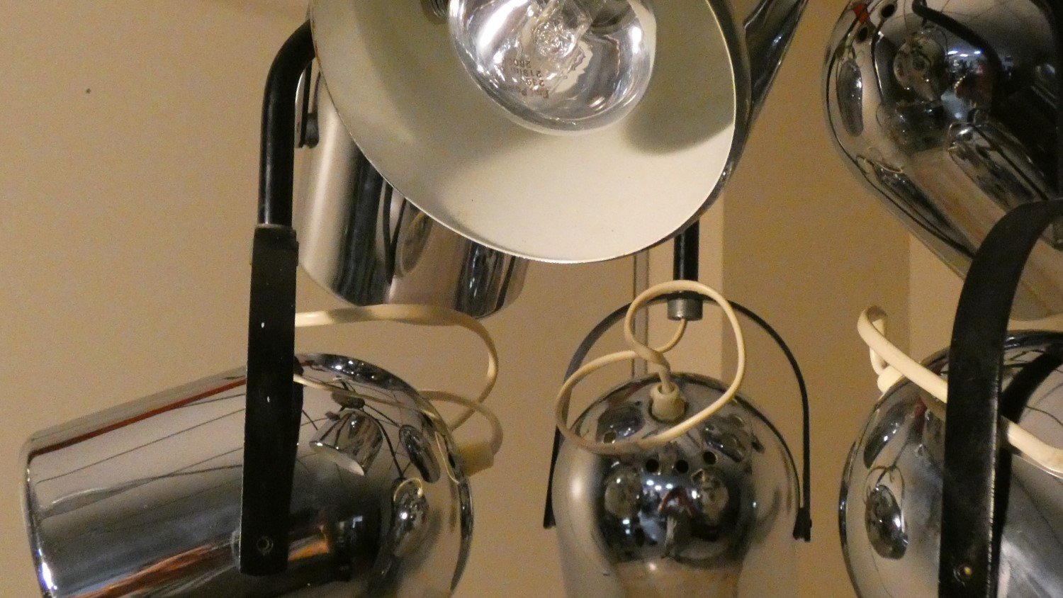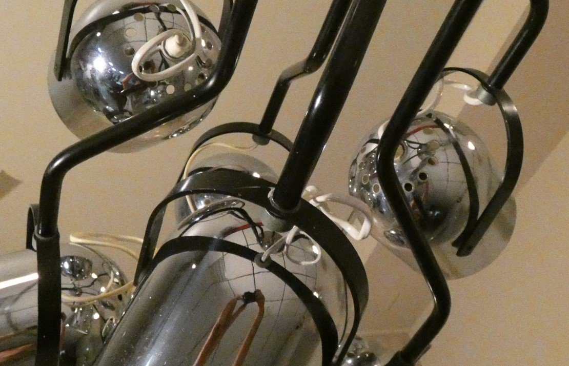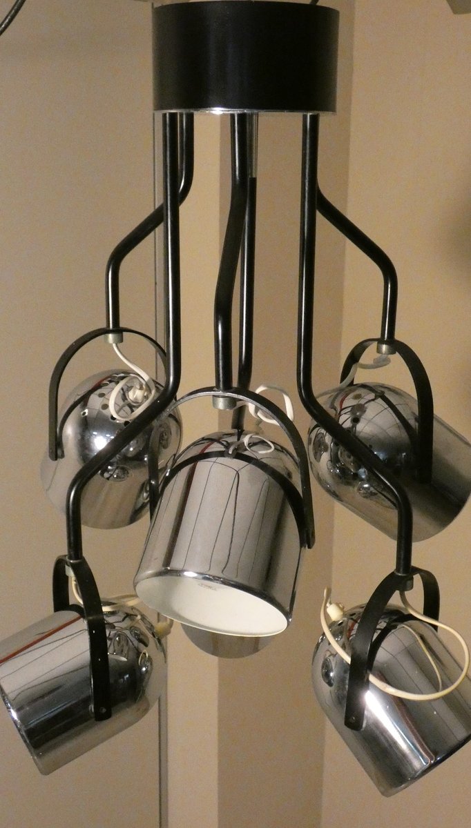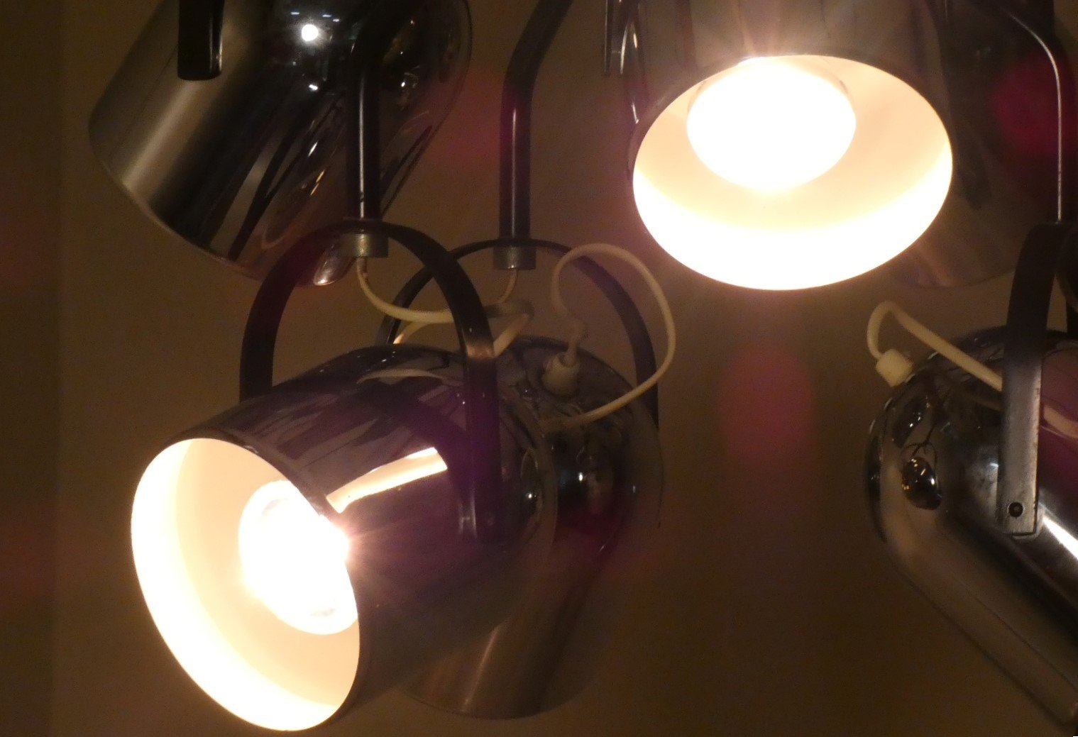 Lámpara de techo 6 Spotlight de acero y esmalte atribuida a Goffredo Reggiani, Italia, años 60