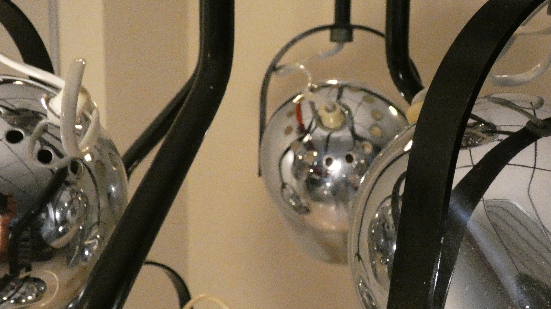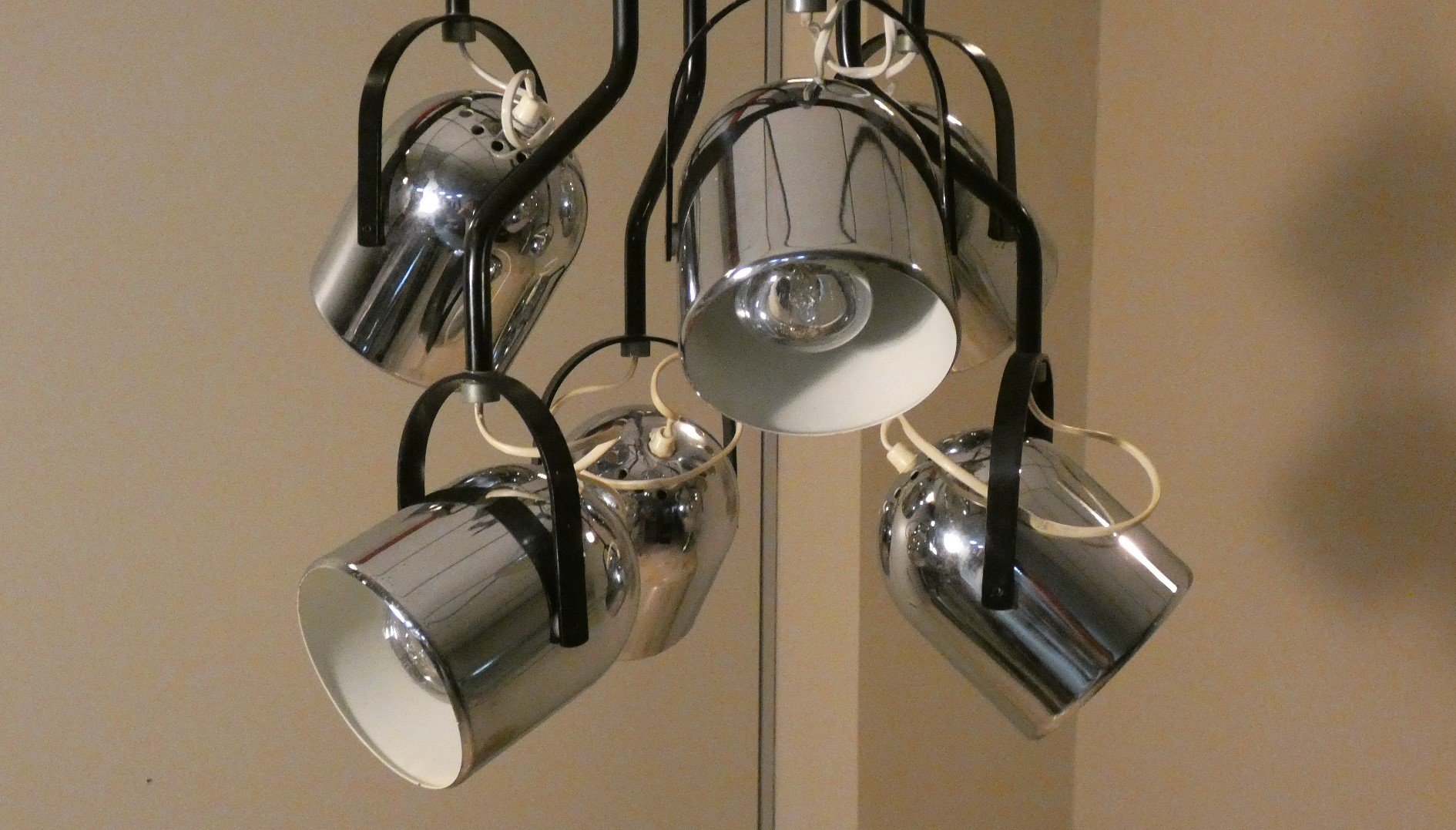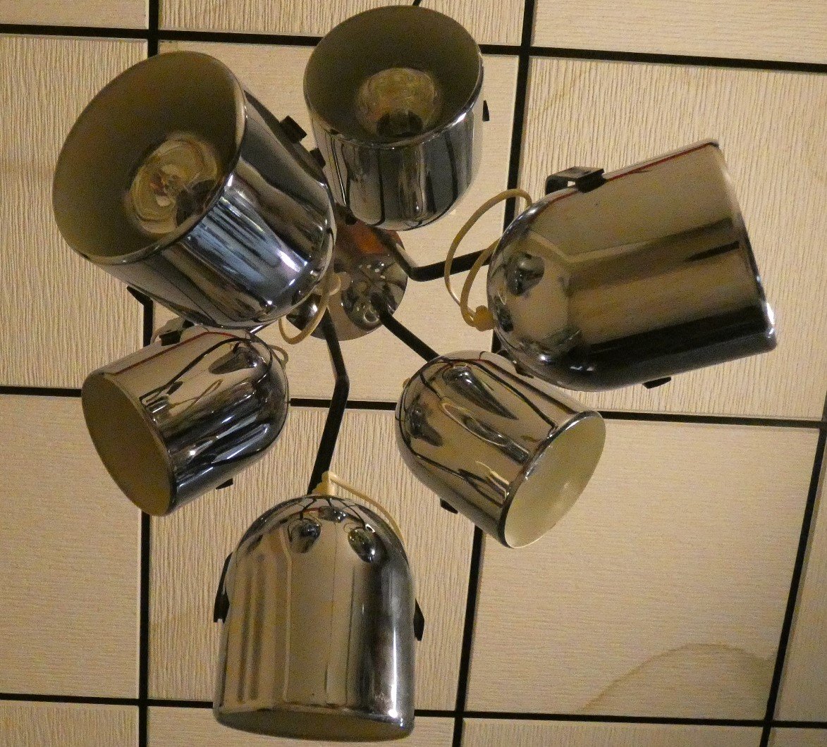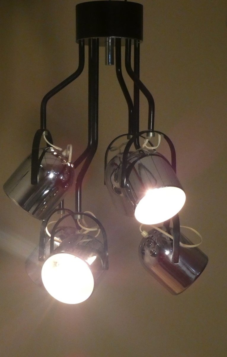 Lámpara de techo 6 Spotlight de acero y esmalte atribuida a Goffredo Reggiani, Italia, años 60