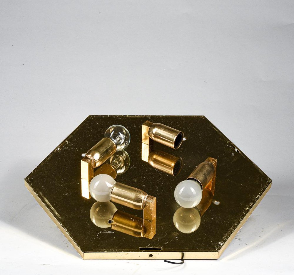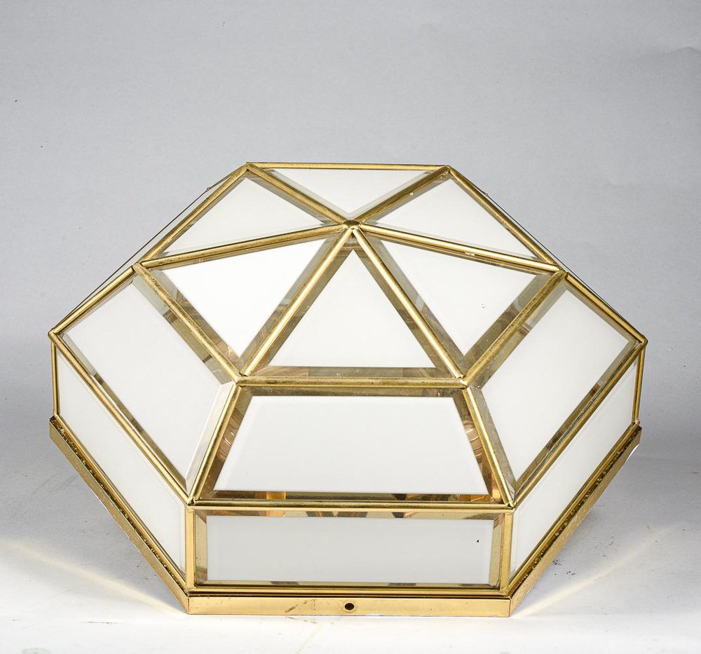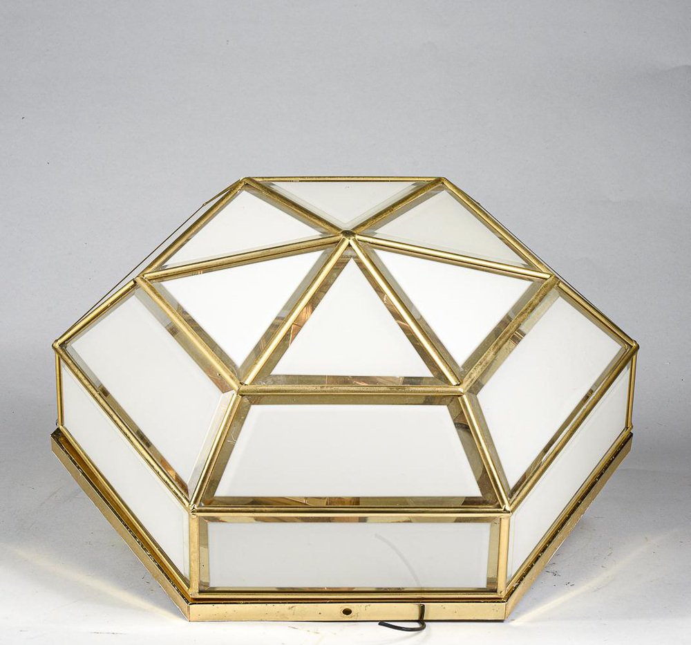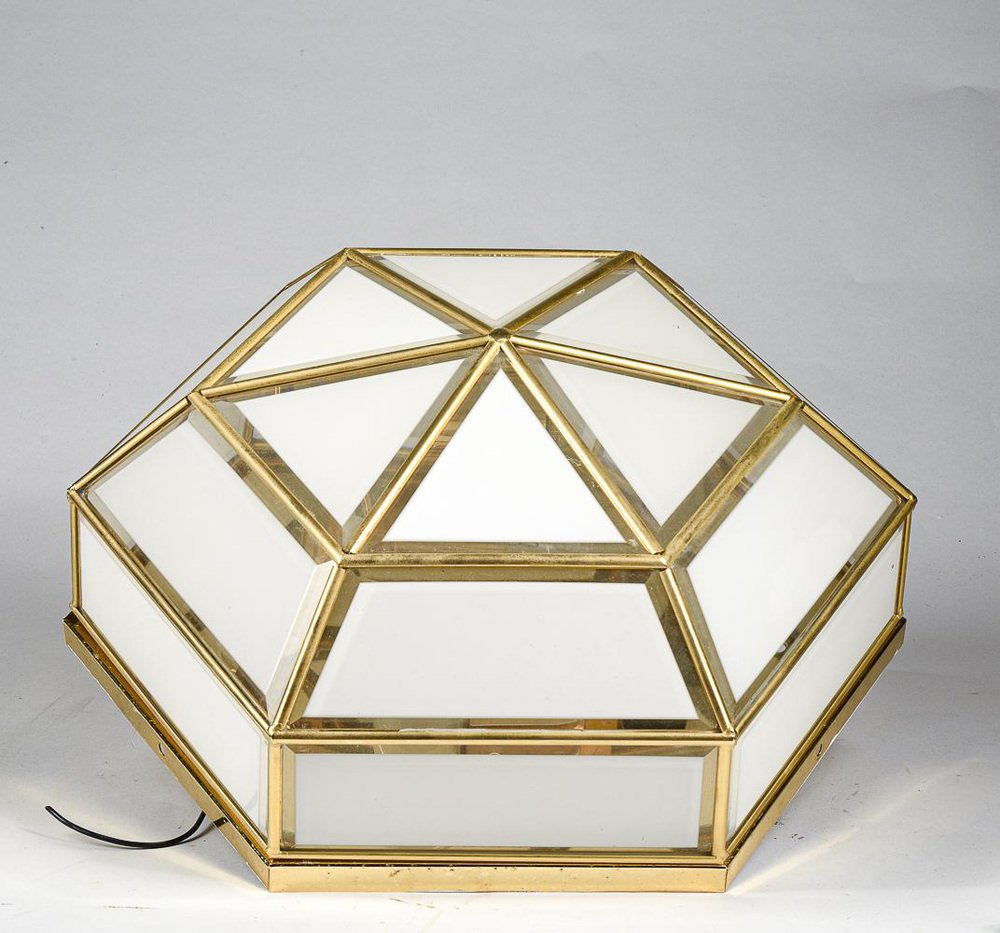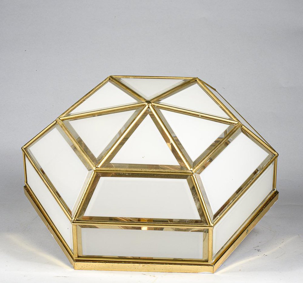 Lámpara de techo de metal y vidrio blanco transparente, Italia, 1970