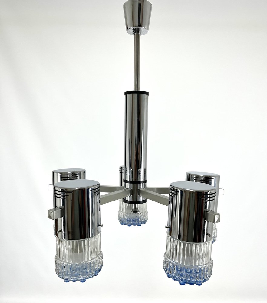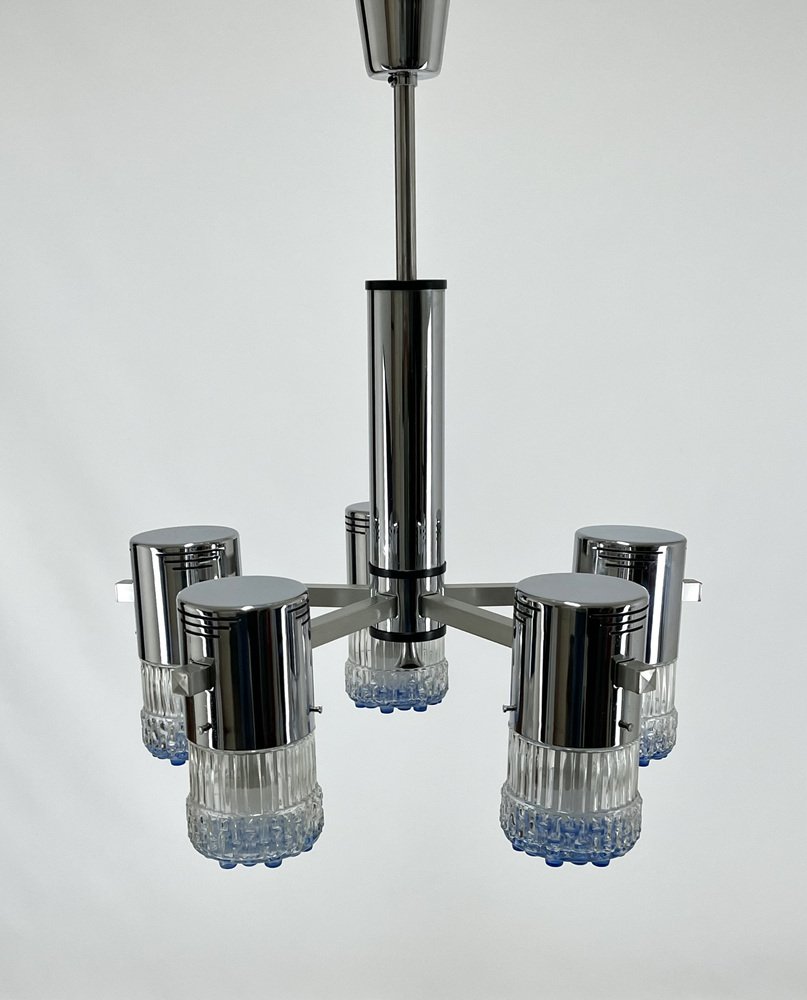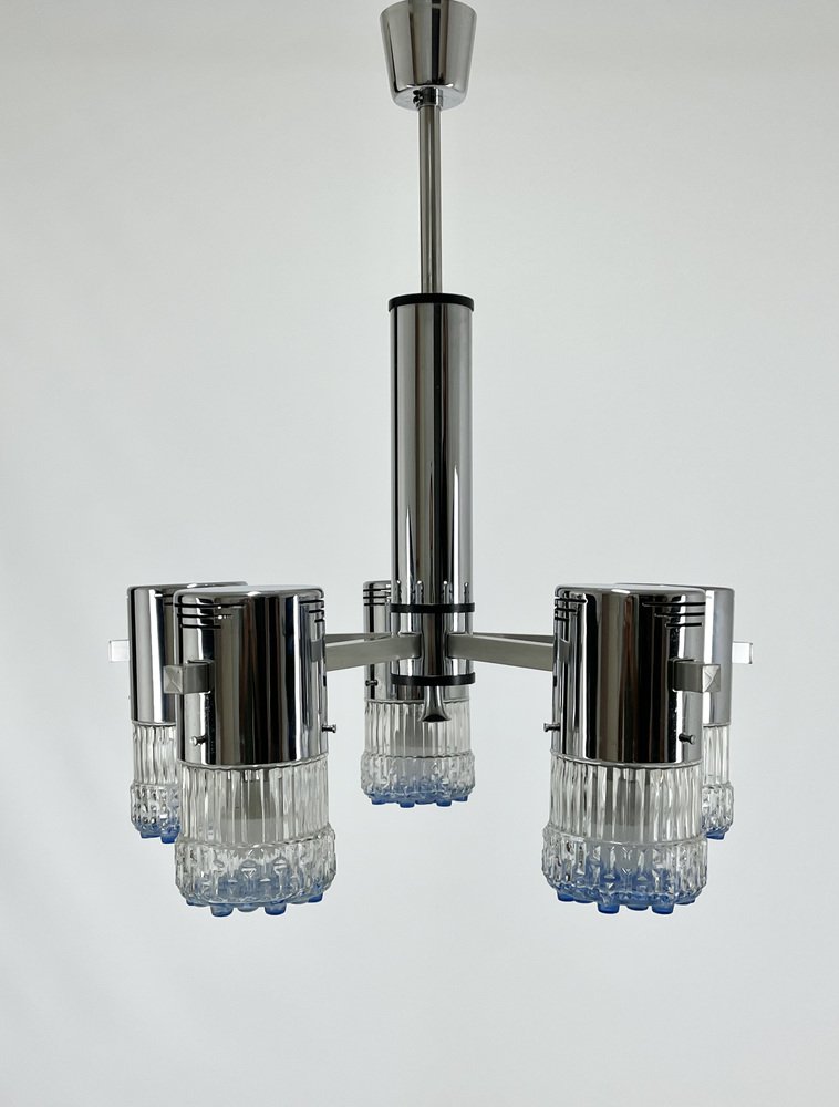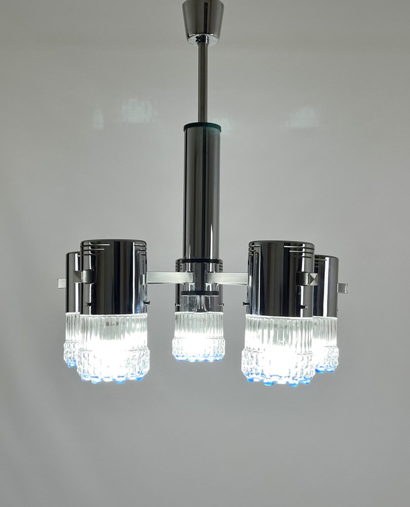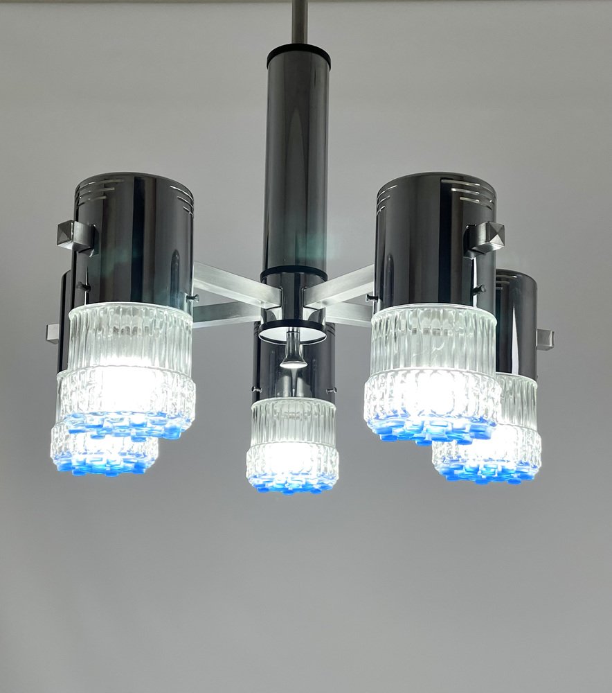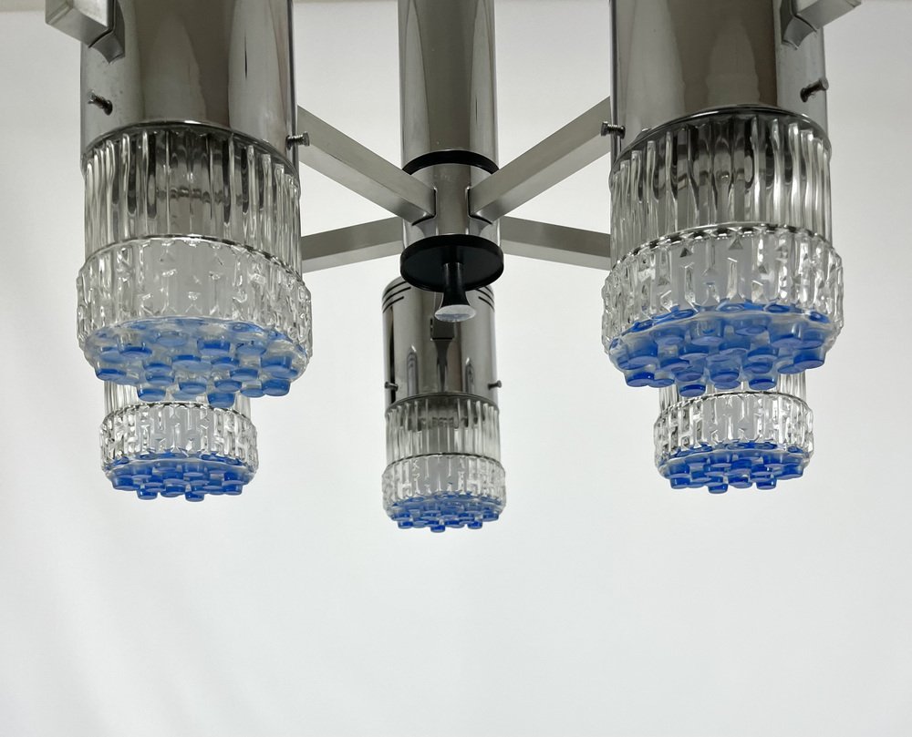 Lámpara de techo italiana de vidrio y aluminio de Gaetano Sciolari para Sciolari, años 70