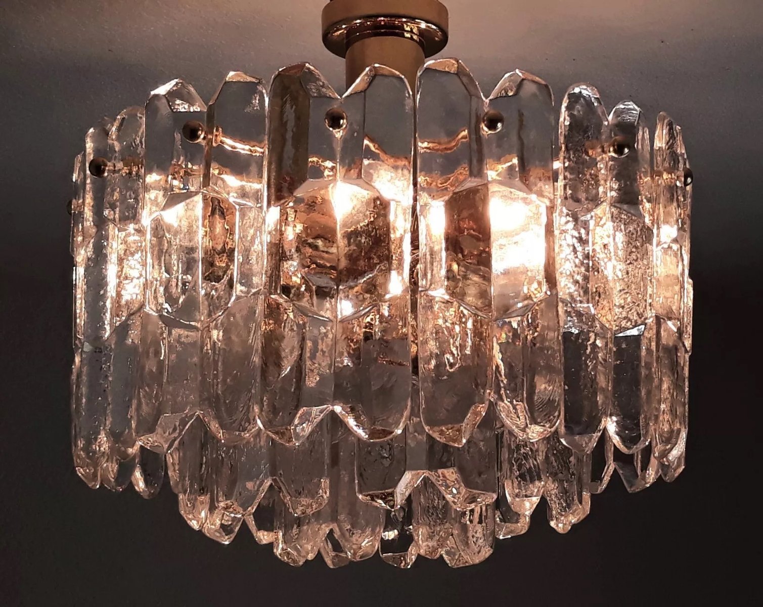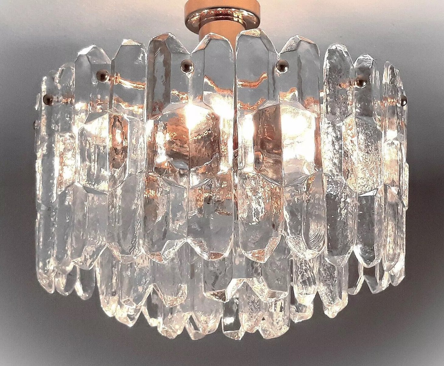 Lámpara de araña modelo 3424 de metal y cristal de Kalmar, años 60