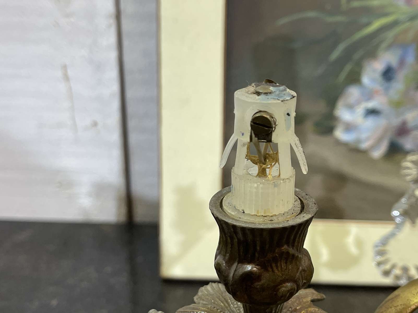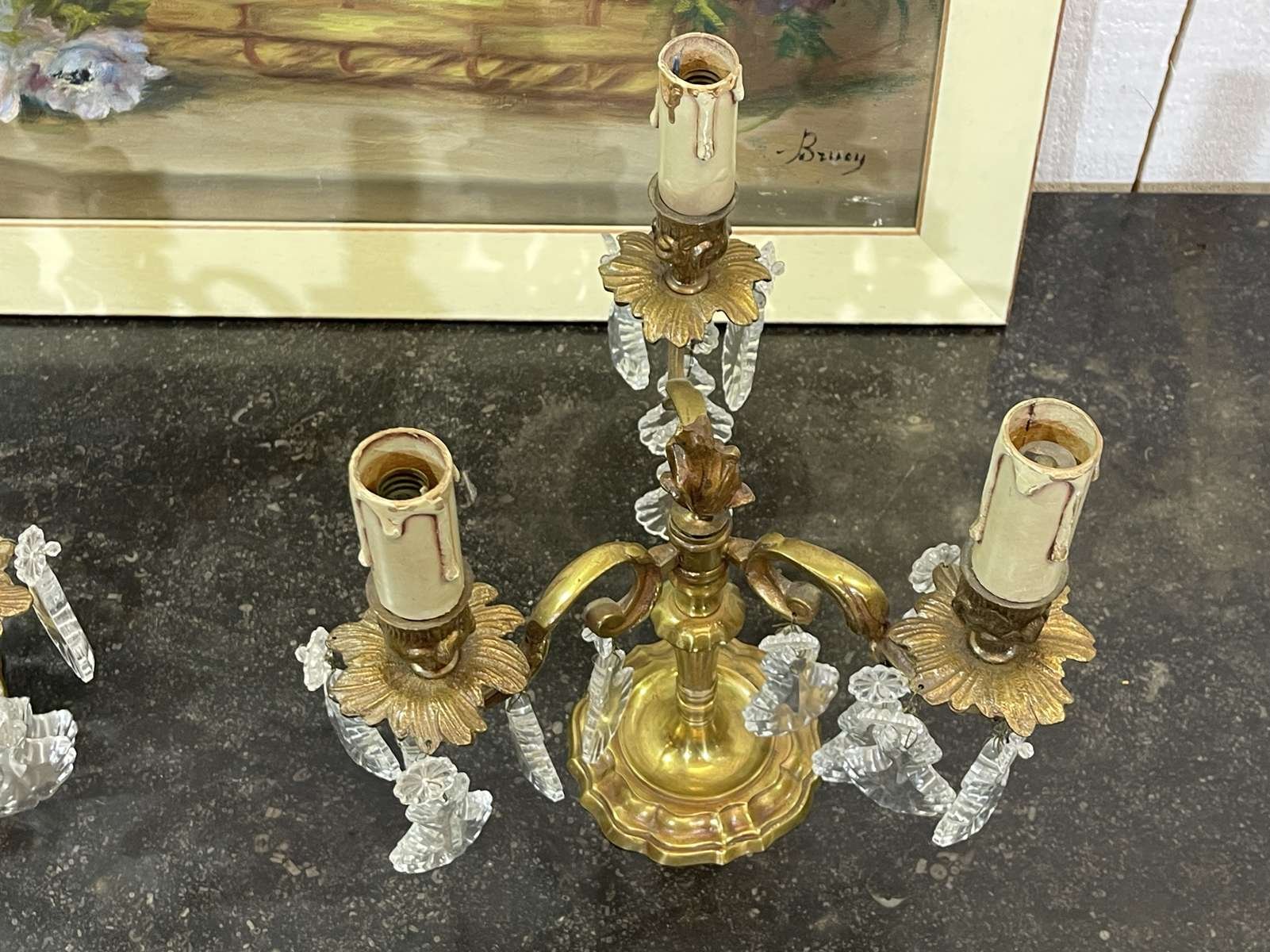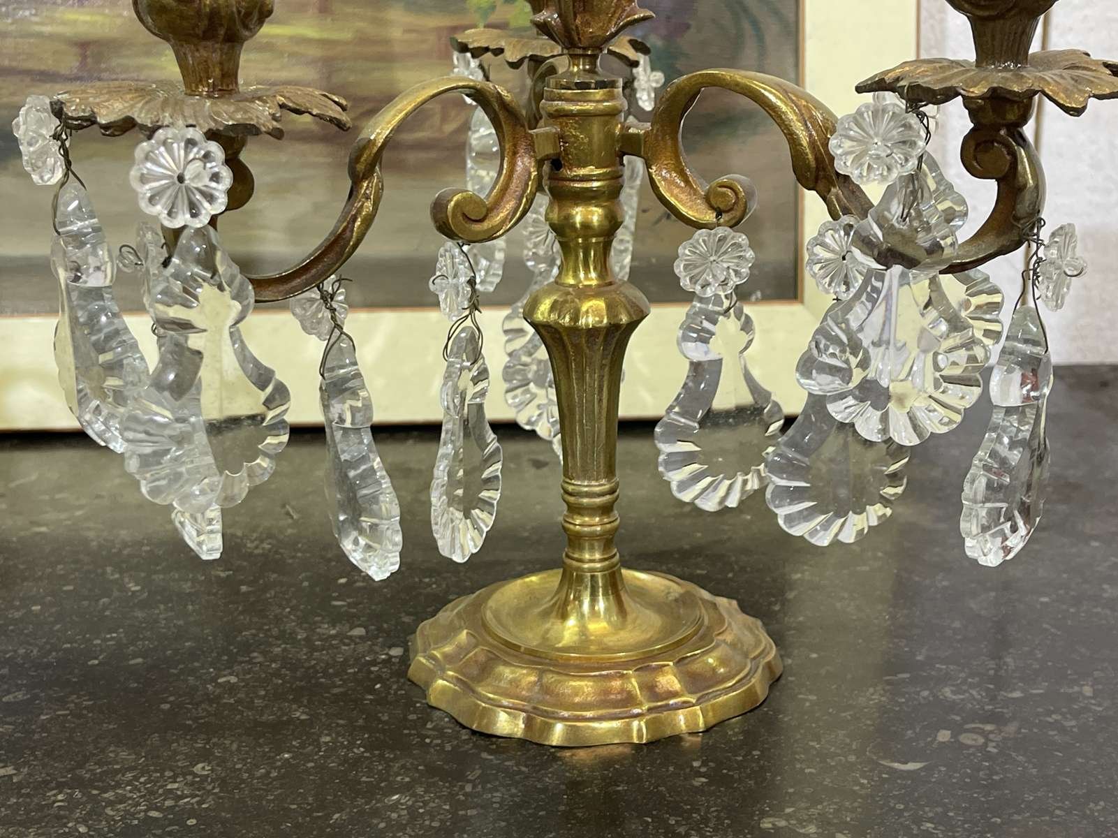 Lámparas de araña de bronce con gotas de cristal, años 60. Juego de 2