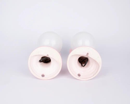Excepcionalmente raras de encontrar en color rosa, estas lámparas de mano de cerámica añaden un toque único y elegante a su decoración. Eleve su interior con la belleza de estas exquisitas piezas y sumérjase en su elegancia atemporal.