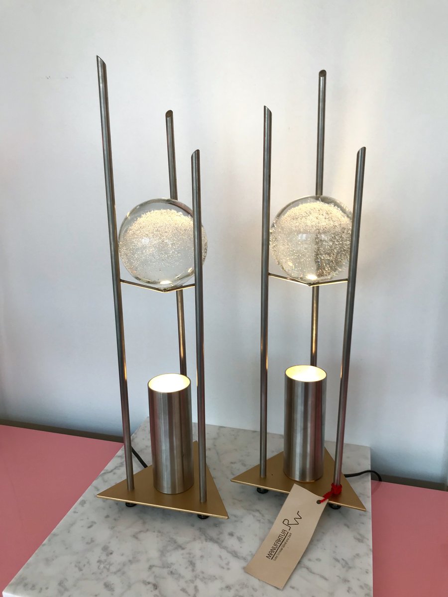 Lámparas de mesa alemanas con globo de vidrio de RW Manufaktur, años 80. Juego de 2