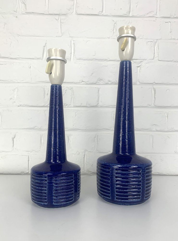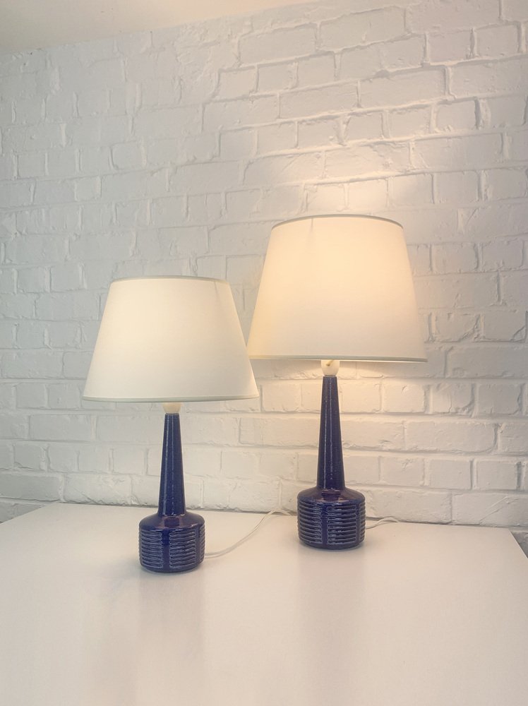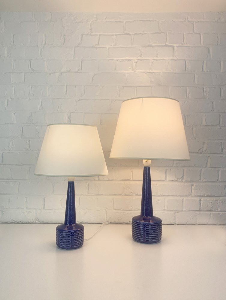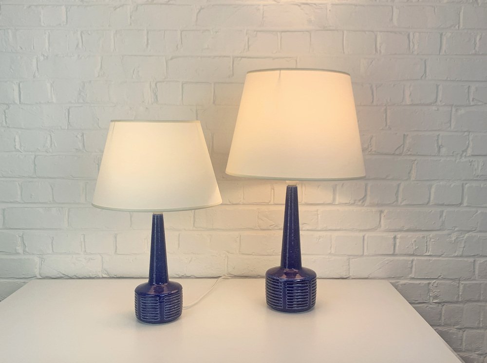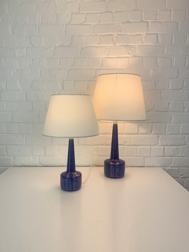 Pair of stoneware table lamps, model DL34 and DL35, produced by Palshus (Denmark).