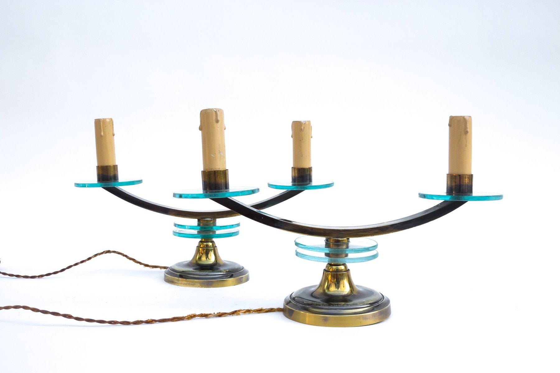 Lámparas de mesa francesas Art Déco de latón y vidrio, años 30. Juego de 2