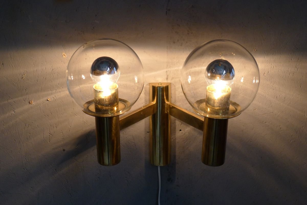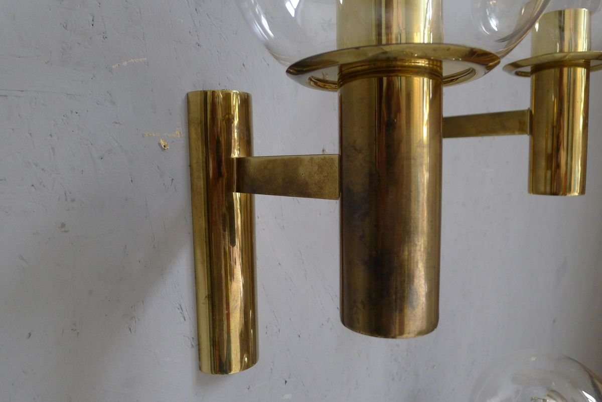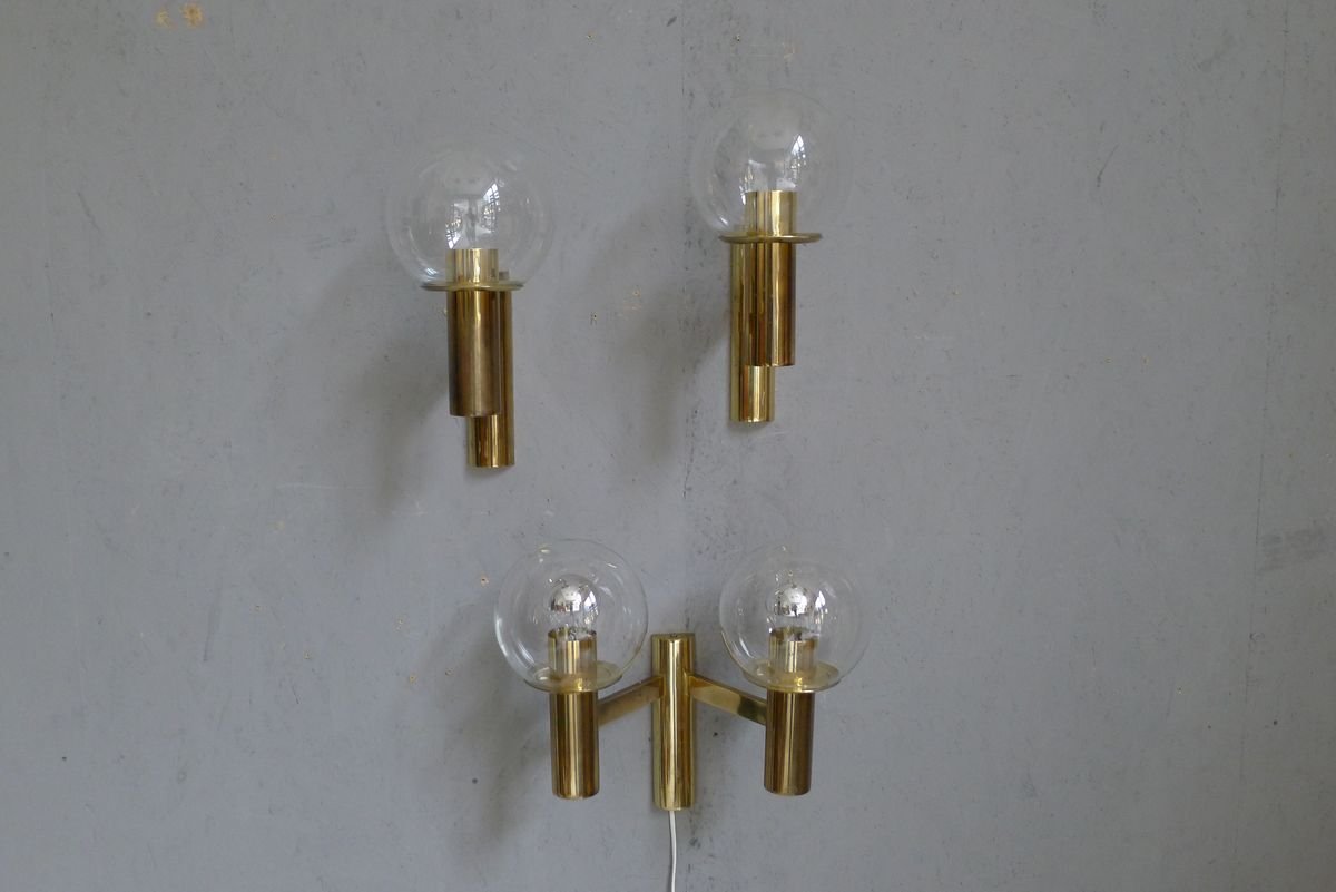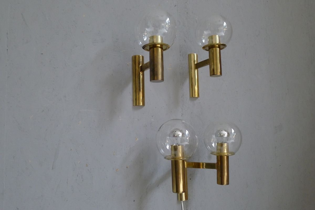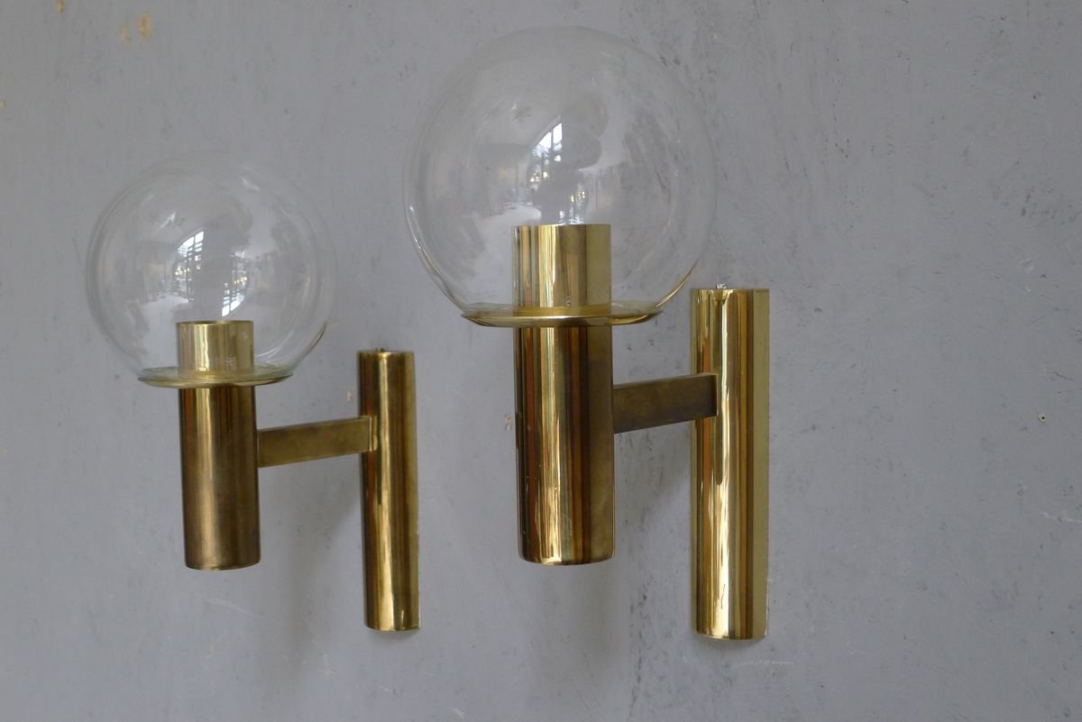 Lámparas de pared minimalistas de latón con esferas de vidrio de OTT International, años 60. Juego de 3