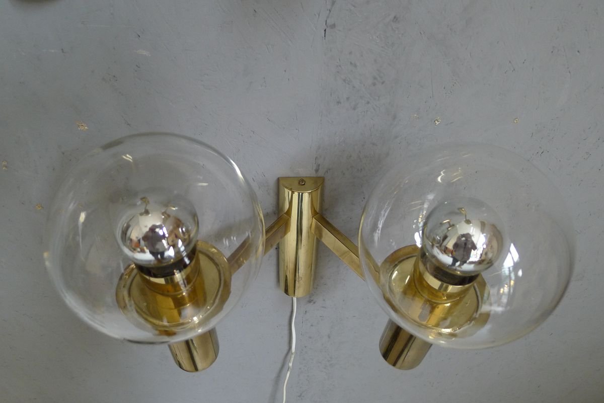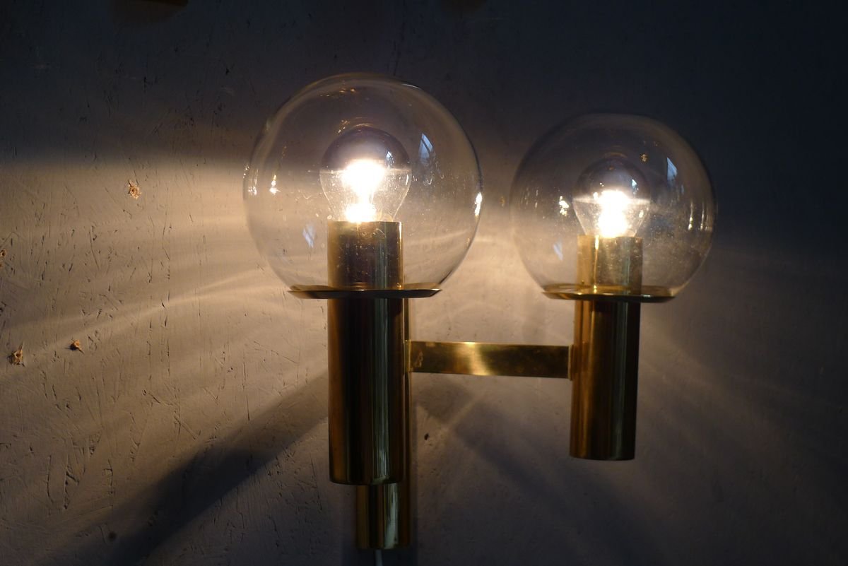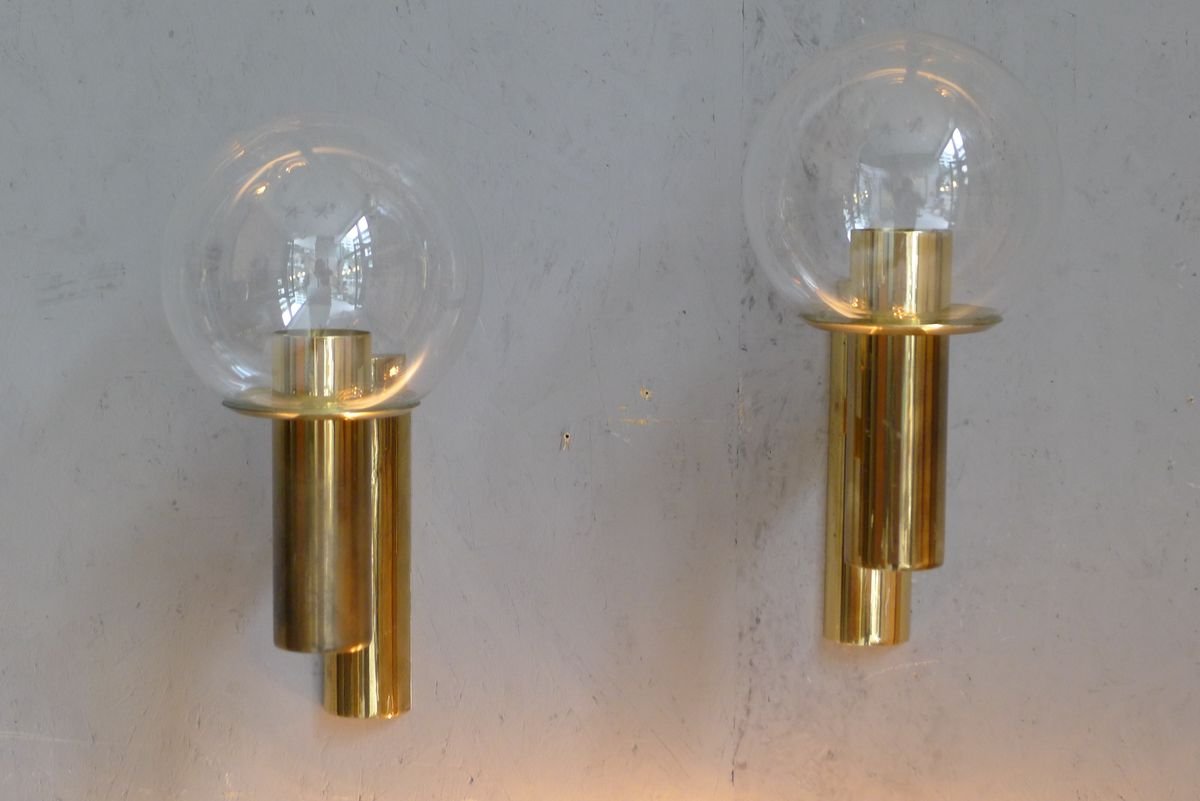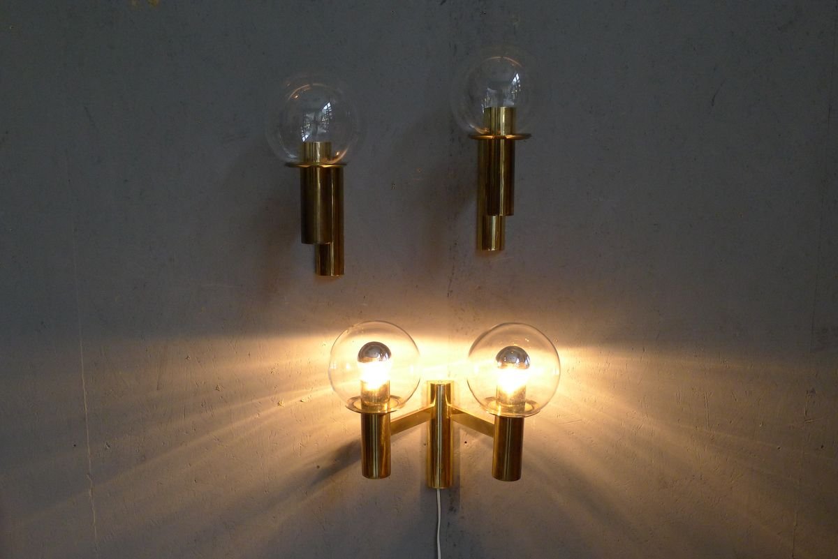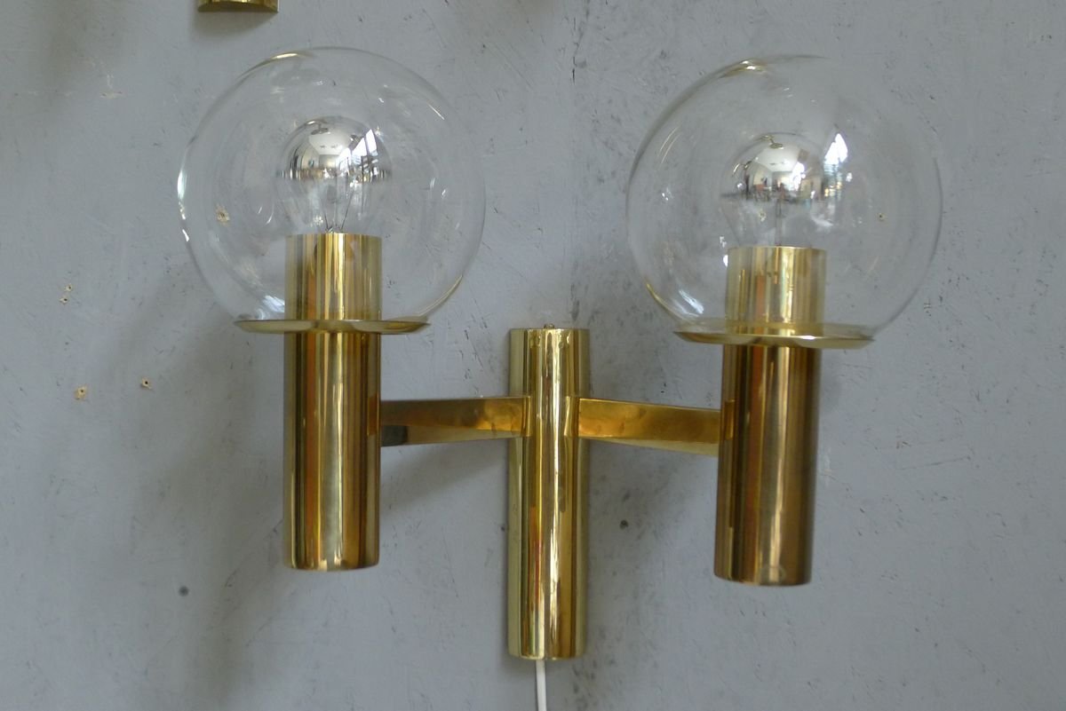 Lámparas de pared minimalistas de latón con esferas de vidrio de OTT International, años 60. Juego de 3