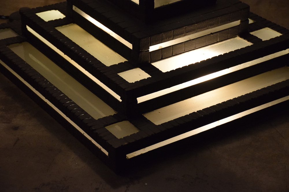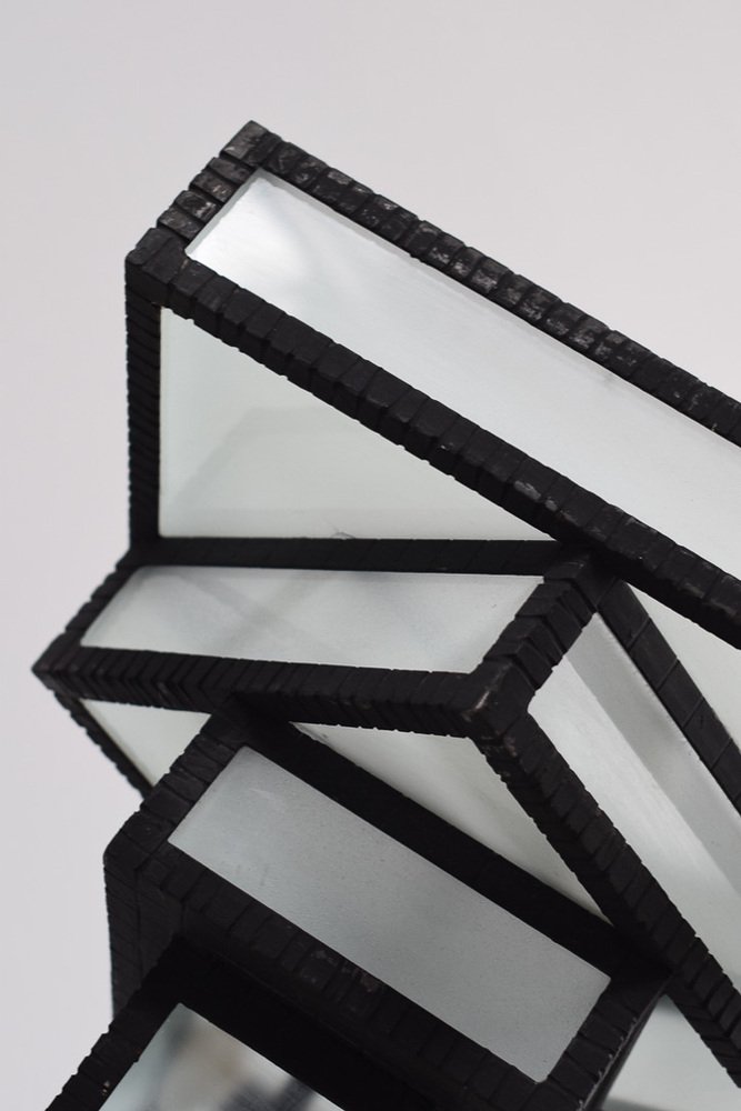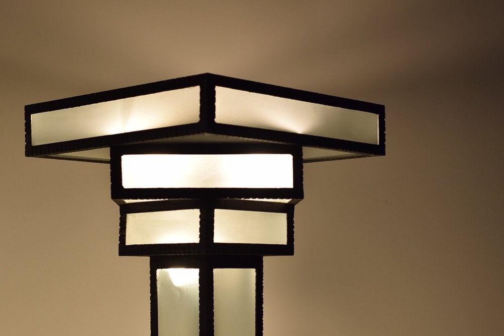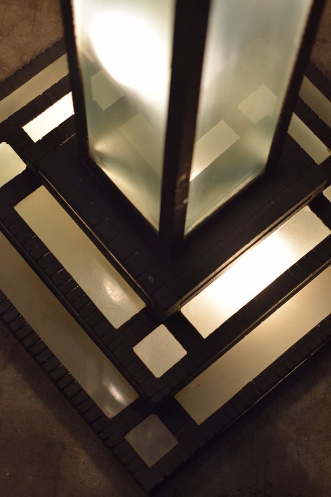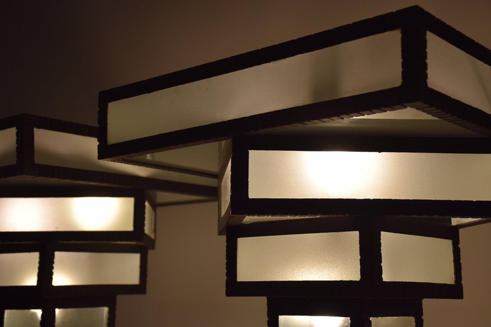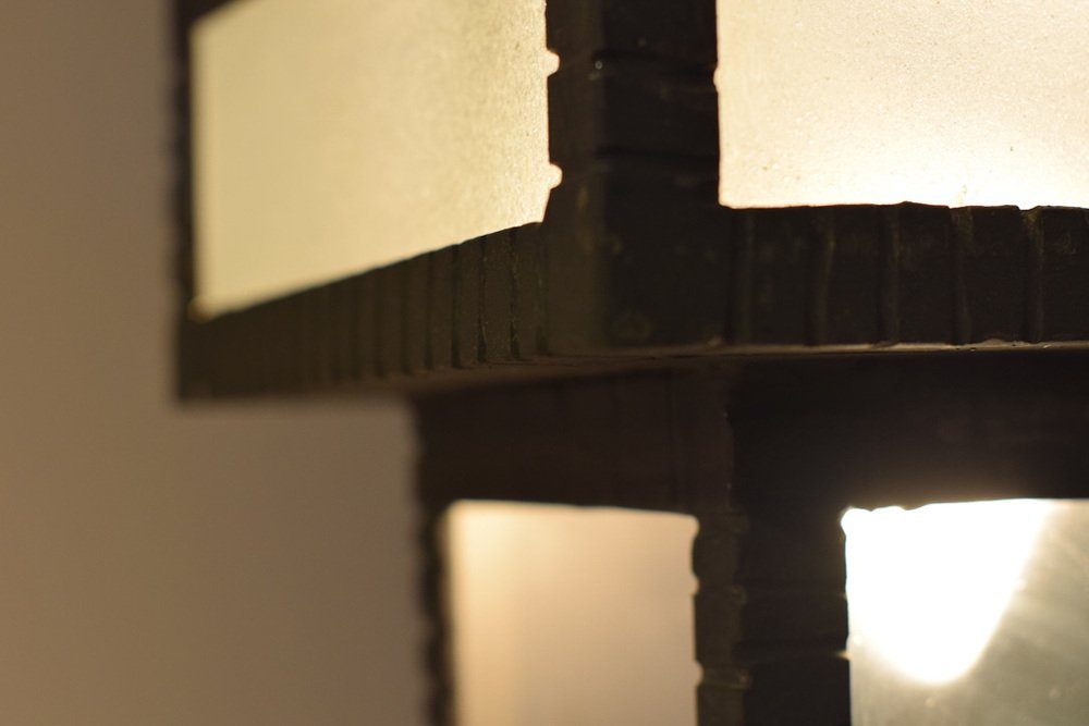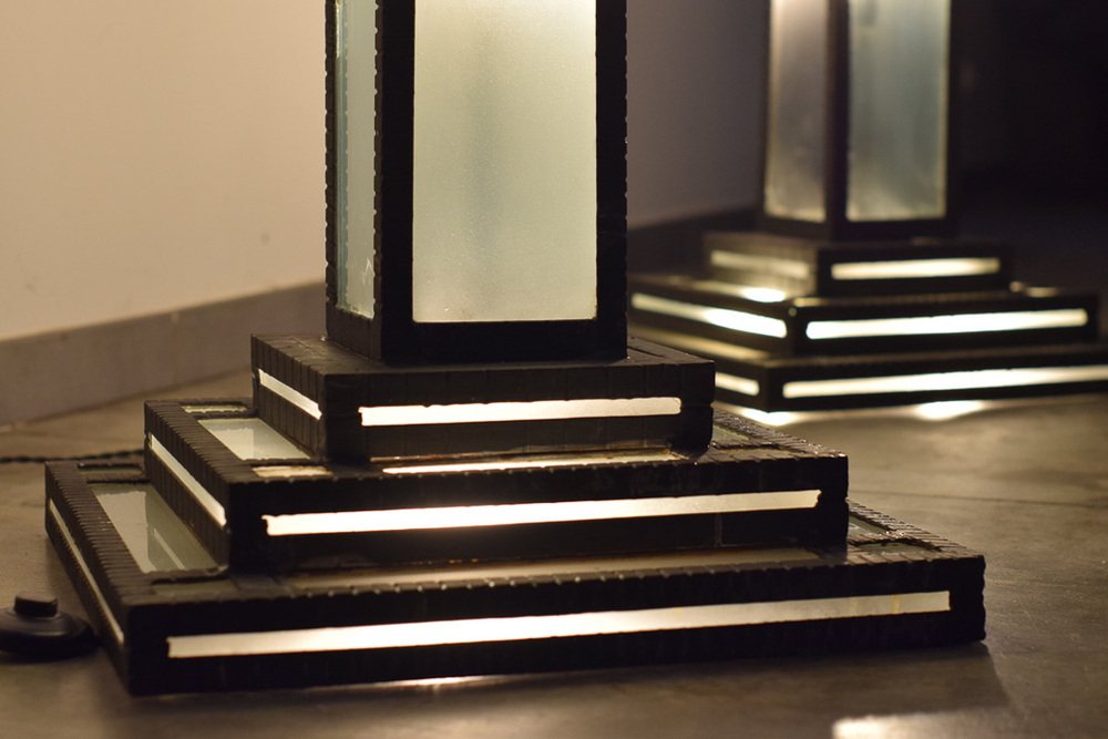 Lámparas de pie Art Déco grandes de hotel de hierro martillado y vidrio, Francia, años 30. Juego de 2