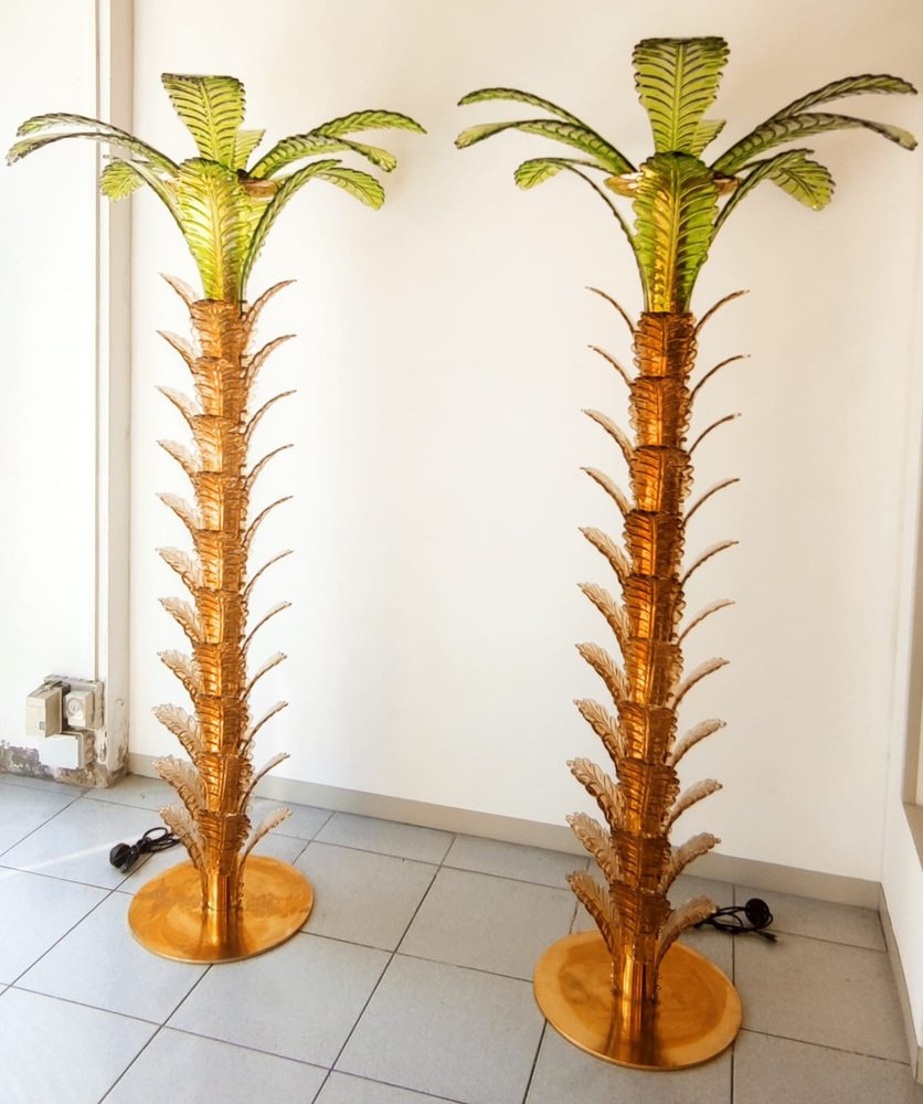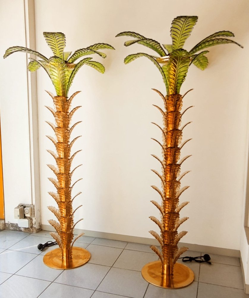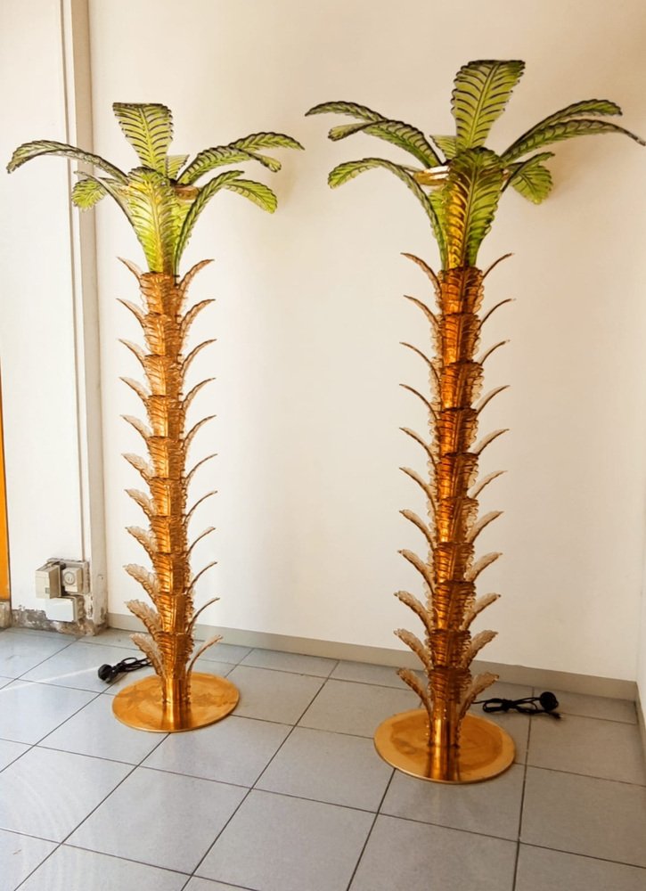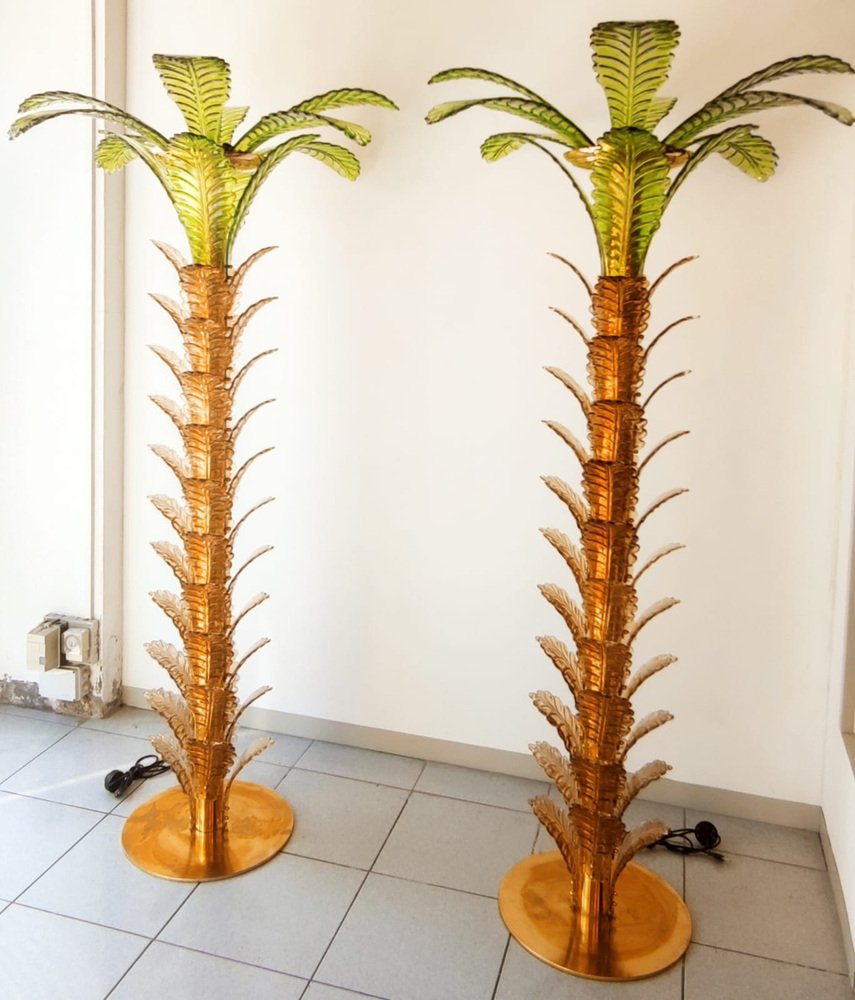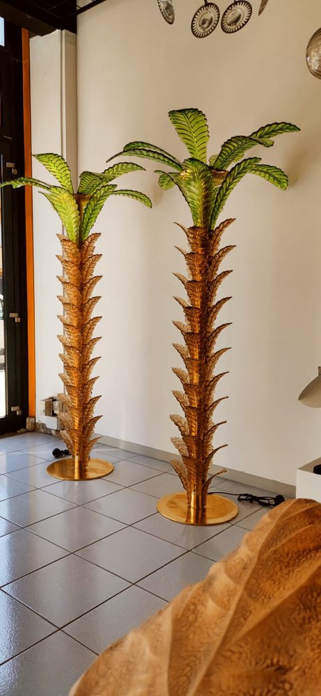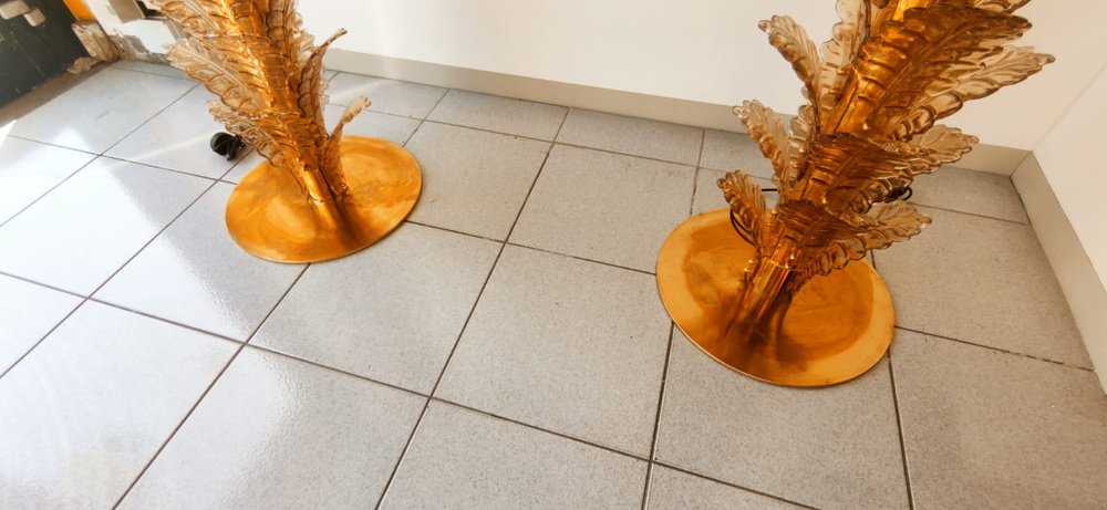 Lámparas de pie en forma de palmera de latón y cristal de Murano. Juego de 2